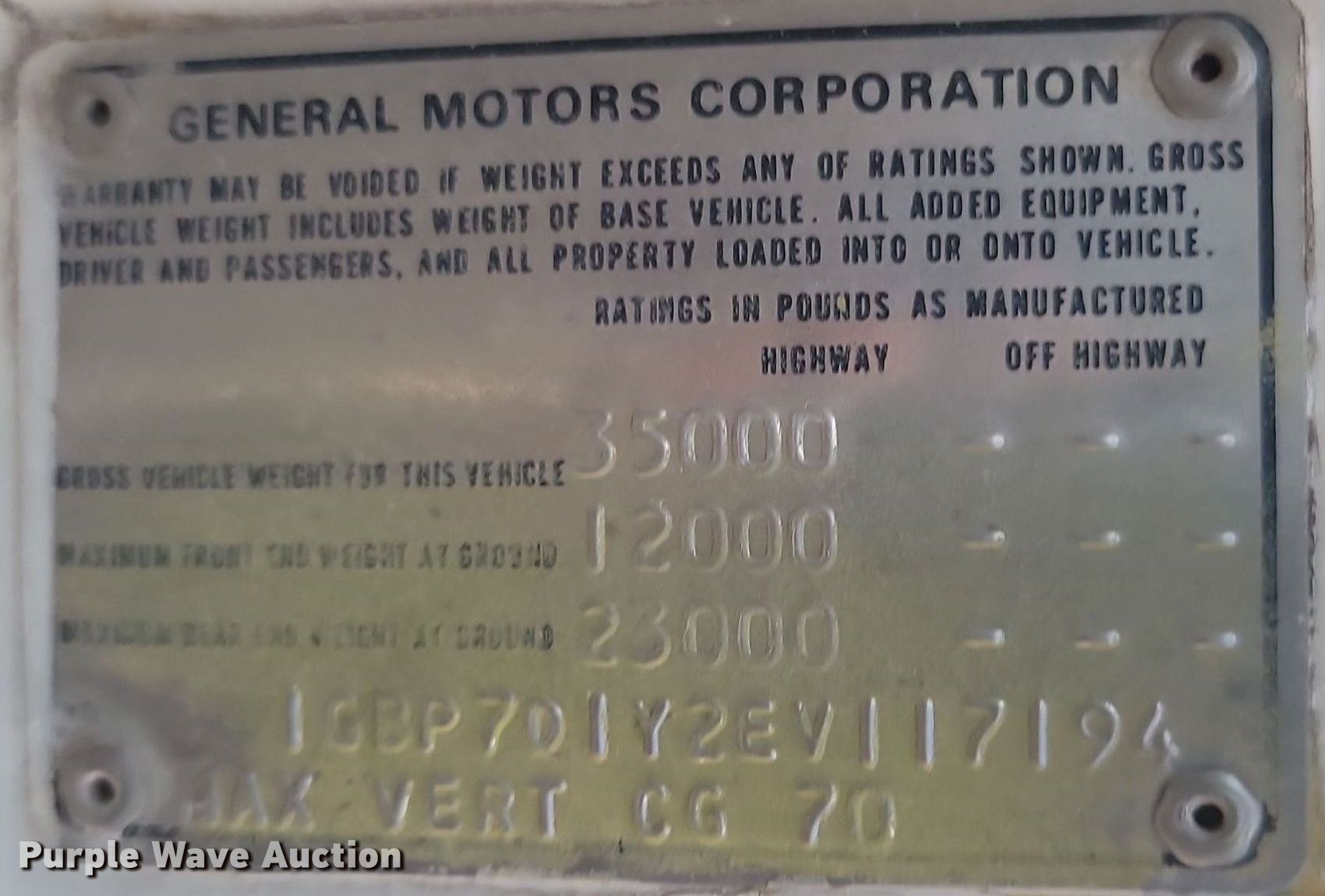- VIN: 1GBP7D1Y2EV117194