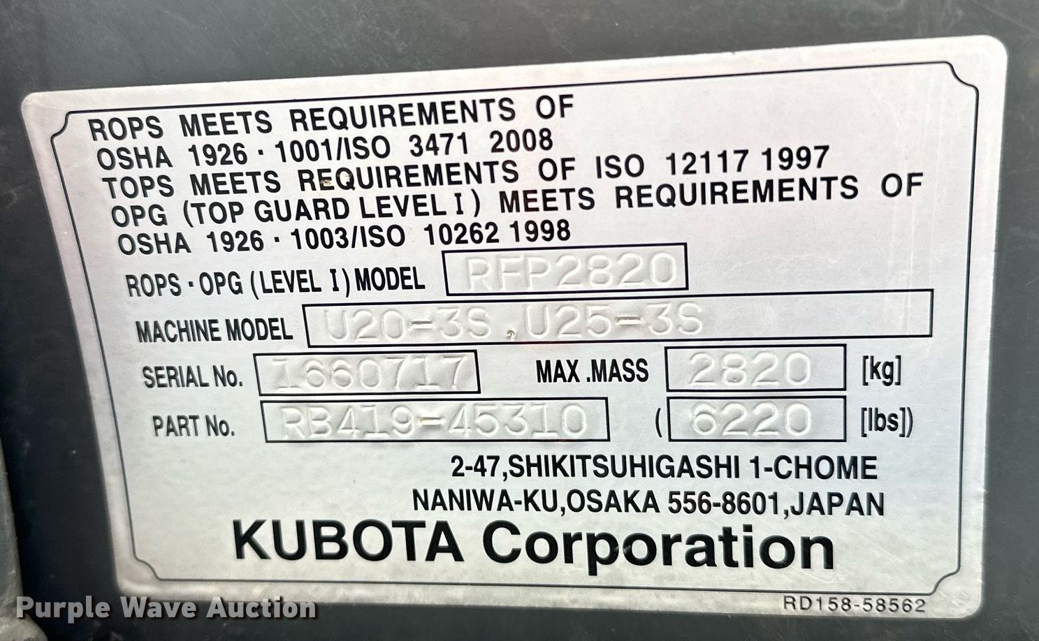 • LK9736 image for item LK9736 2016 Kubota  U25 mini excavator