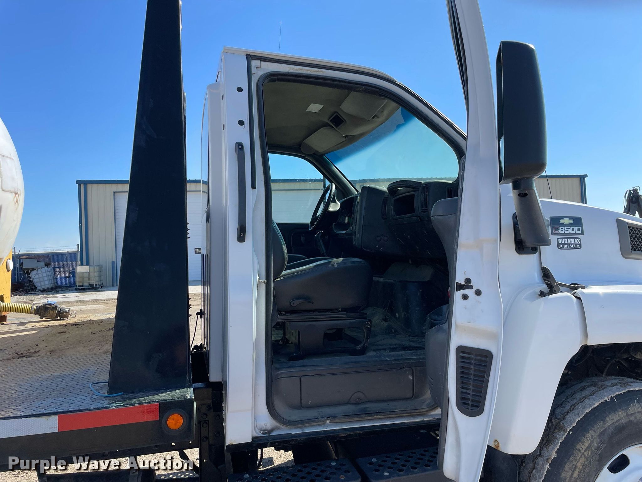2005 Chevrolet C8500 flatbed truck. Miles: 234,581 on odometer, VIN: 1GBT8C4305F533499. Engine Duramax, Displacement: 7.8L, Fuel type: Diesel. Transmission Manual, Speed: 10. Chassis Axles: Tandem, Suspension: Spring over walking beam, Brakes: Air, GVWR: 56,000 lbs. Interior AC, Heat, Heated mirrors, Cruise control. Features Flatbed 18' L x 97" W, (2) Vermeer MX240 water tanks, Vermeer MX125 mud mixer Honda GX160 single cylinder gas engine. Tires Front: 315/80R22.5, Rear: 11R22.5. Notes Pull starter rope broken, Pipe cracked on driver side tank. Illinois title. Title distribution may be delayed up to 14 days from verification of funds. American Fiber Construction. 111 North Commercial Drive. Teutopolis, IL 62467