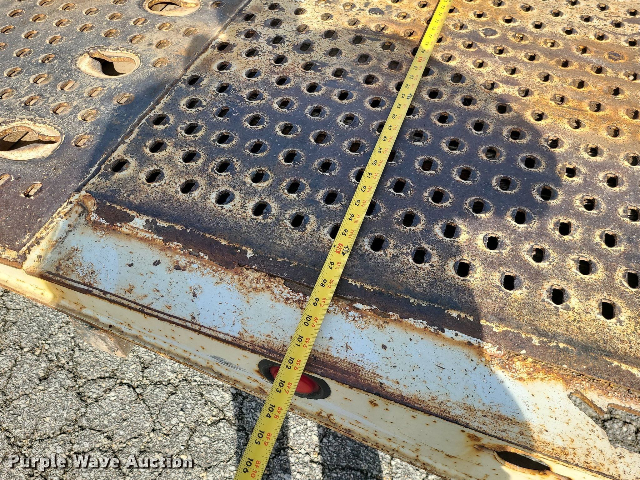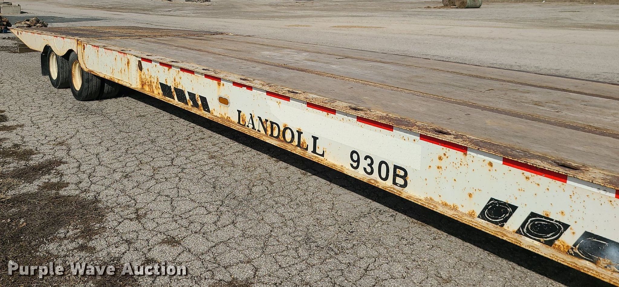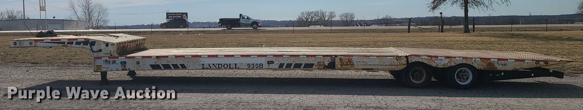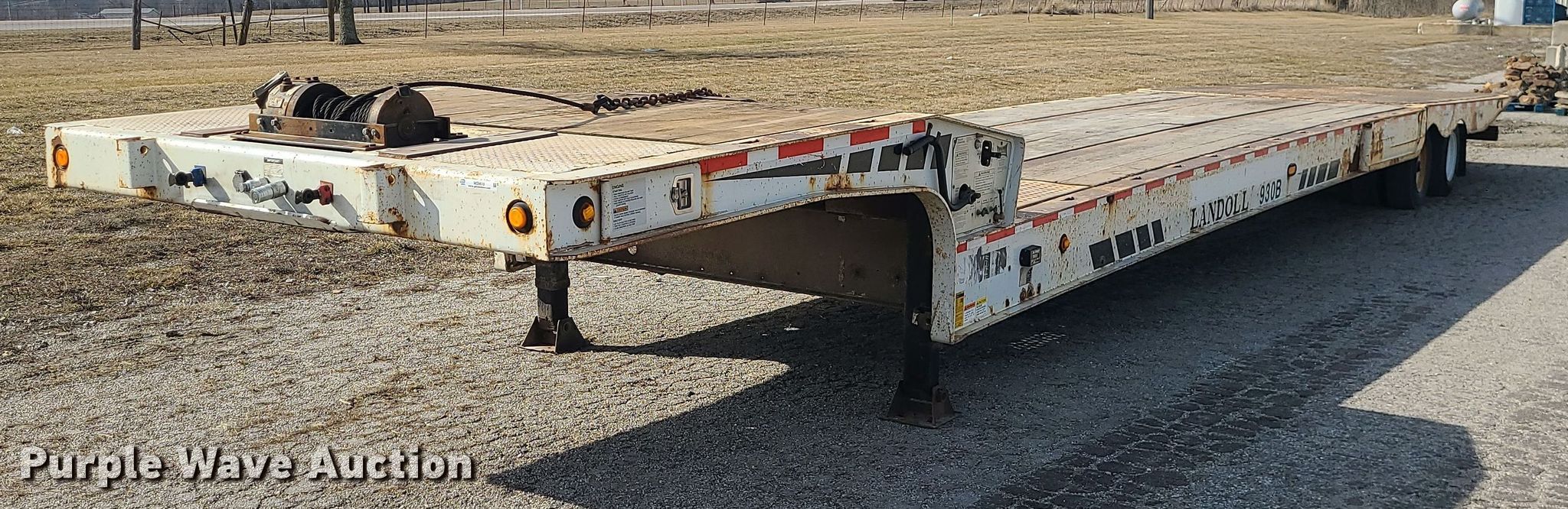 2006 Landoll 930B drop deck equipment trailer. VIN: 1LH930VH561B14836. Dimensions Overall: 53' L x 102" W, Deck: 26', Top deck length: 10', Hydratail length: 15'. Features Deck type: Wood, Winch. Chassis Landing gear: Dual, Suspension: Air, Brakes: Air, Axles: Tandem. Tires Size: 235/75R17.5. Missouri title. Sedalia Rental & Supply. 21474 US-50. Sedalia, MO 65301