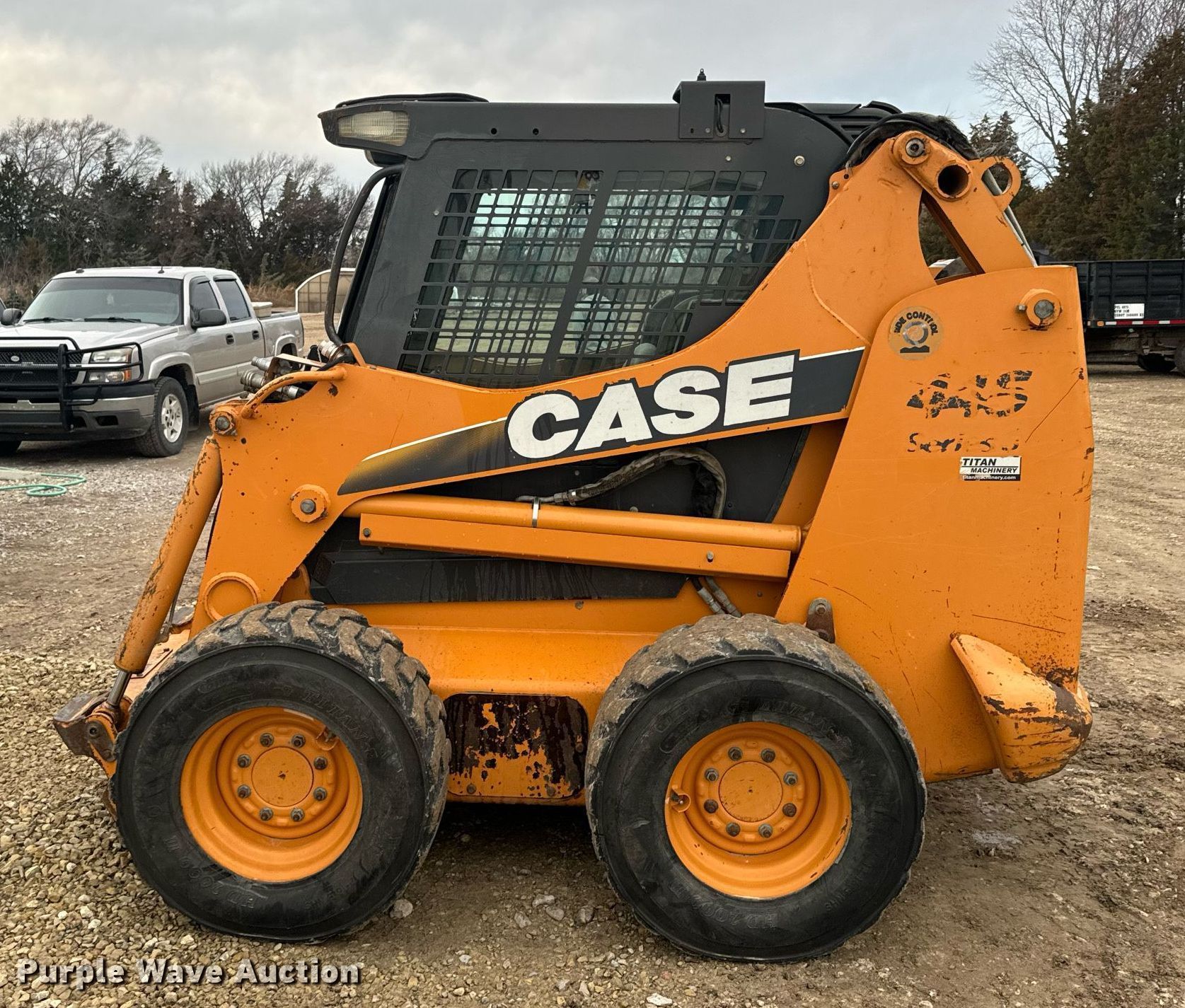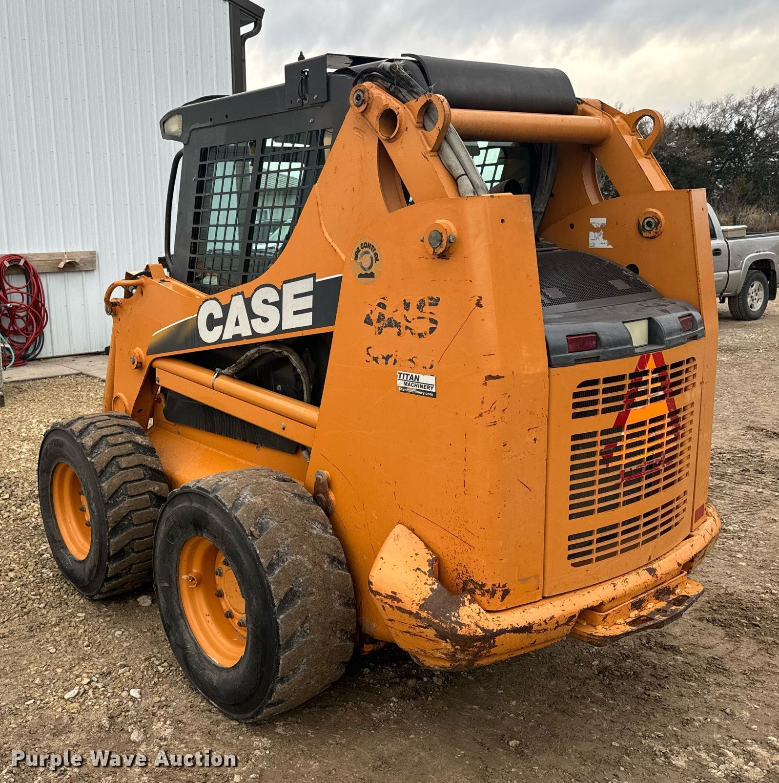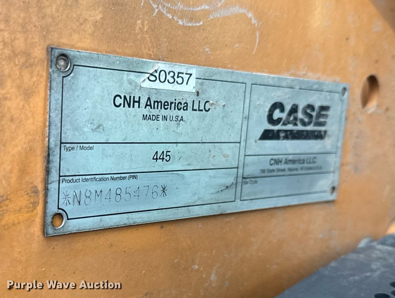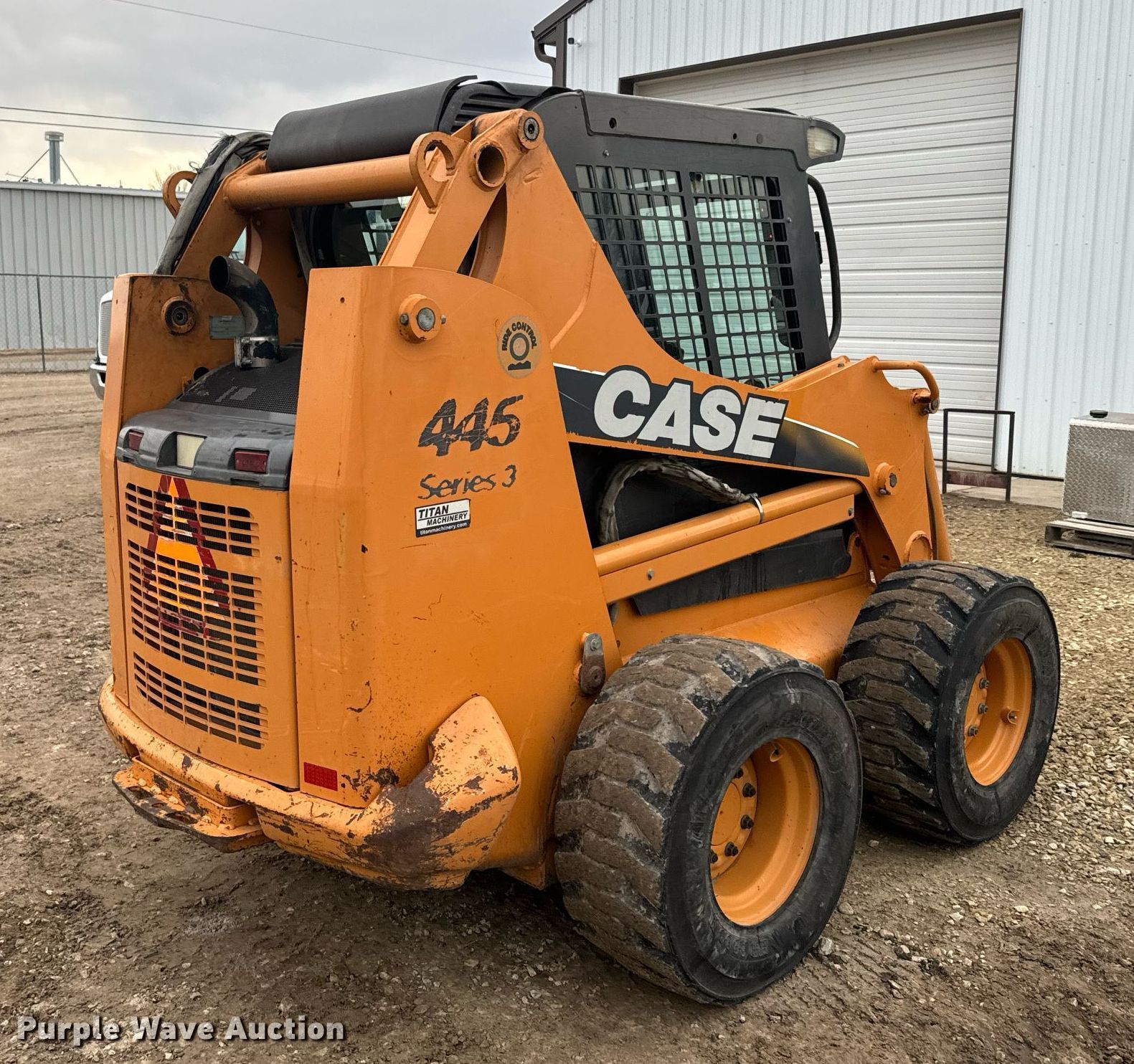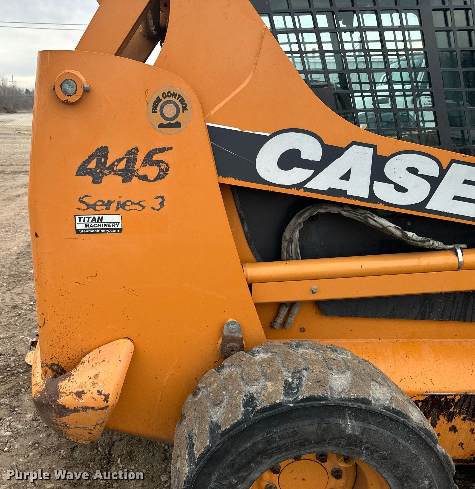 Purple Wave is selling a used Skid Steer Loader in Kansas. This item is a 2008 Case 445 Series 3 skid steer loader with the following: Hours: 1,723 on meter, Serial: N8M485476