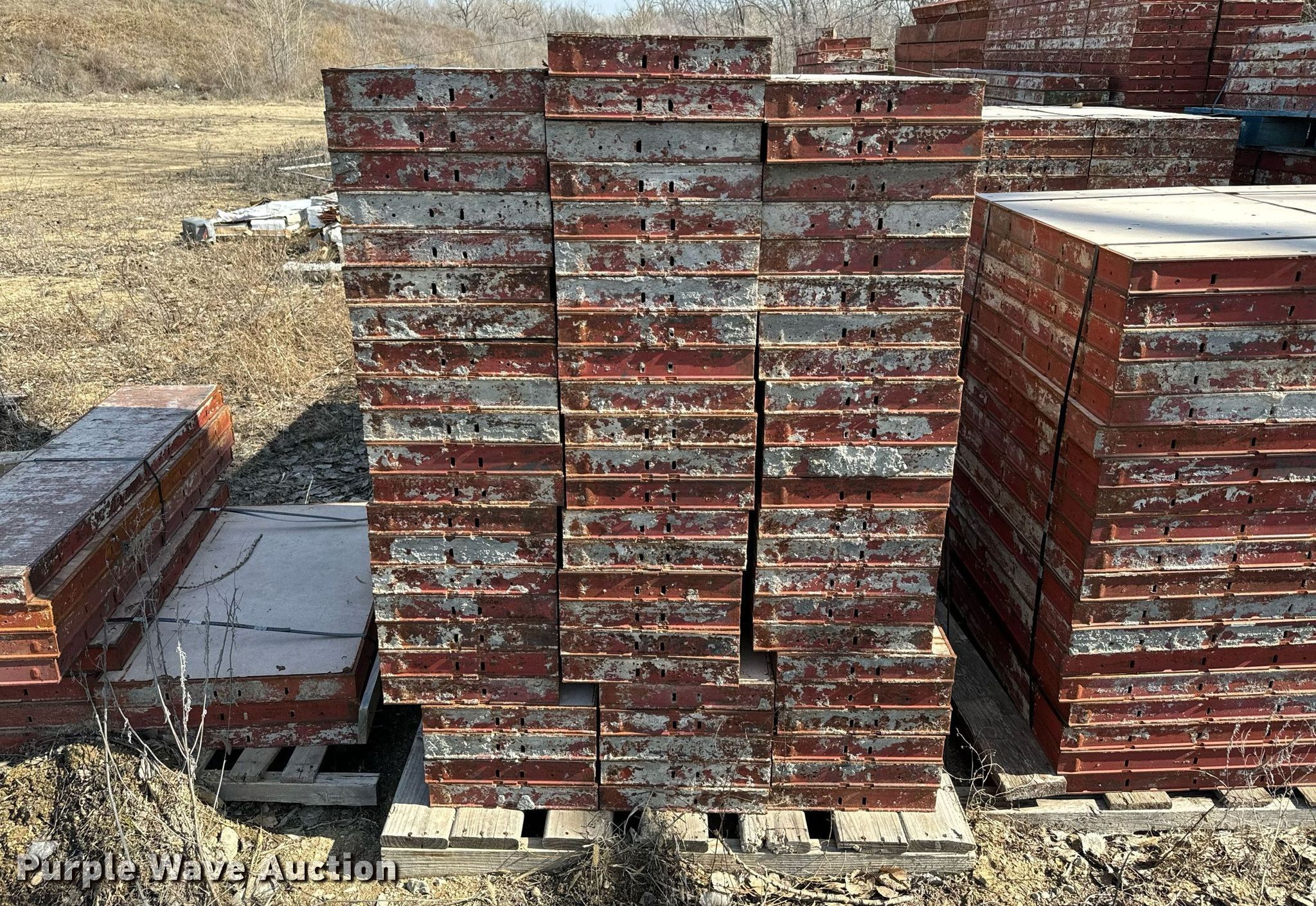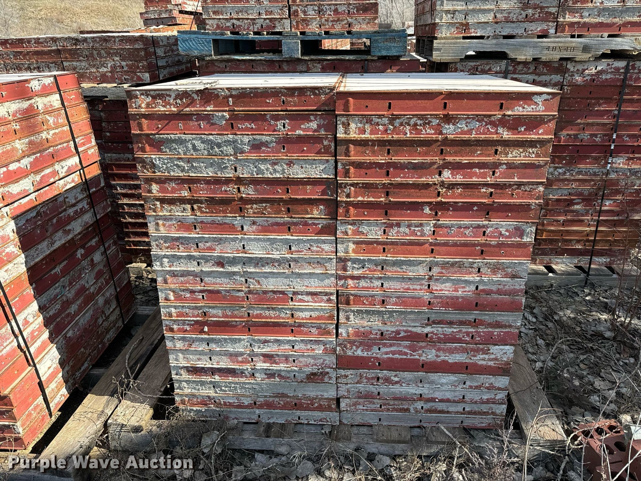 Purple Wave is selling a used Concrete Equip. or Acces. in Kansas. This item is a Symons concrete wall forms with the following: 3' forms, (13) 4" x 3', (9) 6" x 3', (13) 12" x 3', (80) 14" x 3', (5) 16" x 3', (11) 18" x 3', (8) 20" x 3', (2) 22" x 3', (350) 24" x 3', (4) 4" x 3' corner, (72) 6" x 3' corner, 4' forms, 12" x 4', (5) 14" x 4', (3) 6"× 4', 8' forms, (18) 6" × 8', (6)12" x 8', (33) 14" x 8', 18" x 8', (51) 24" x 8', (4) 4" x 8' corner, (19) 6" x 8' corner, (13) brackets