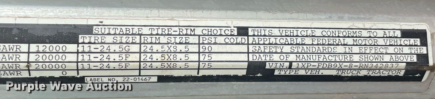 - VIN: 1XPFDB9X8RN342837