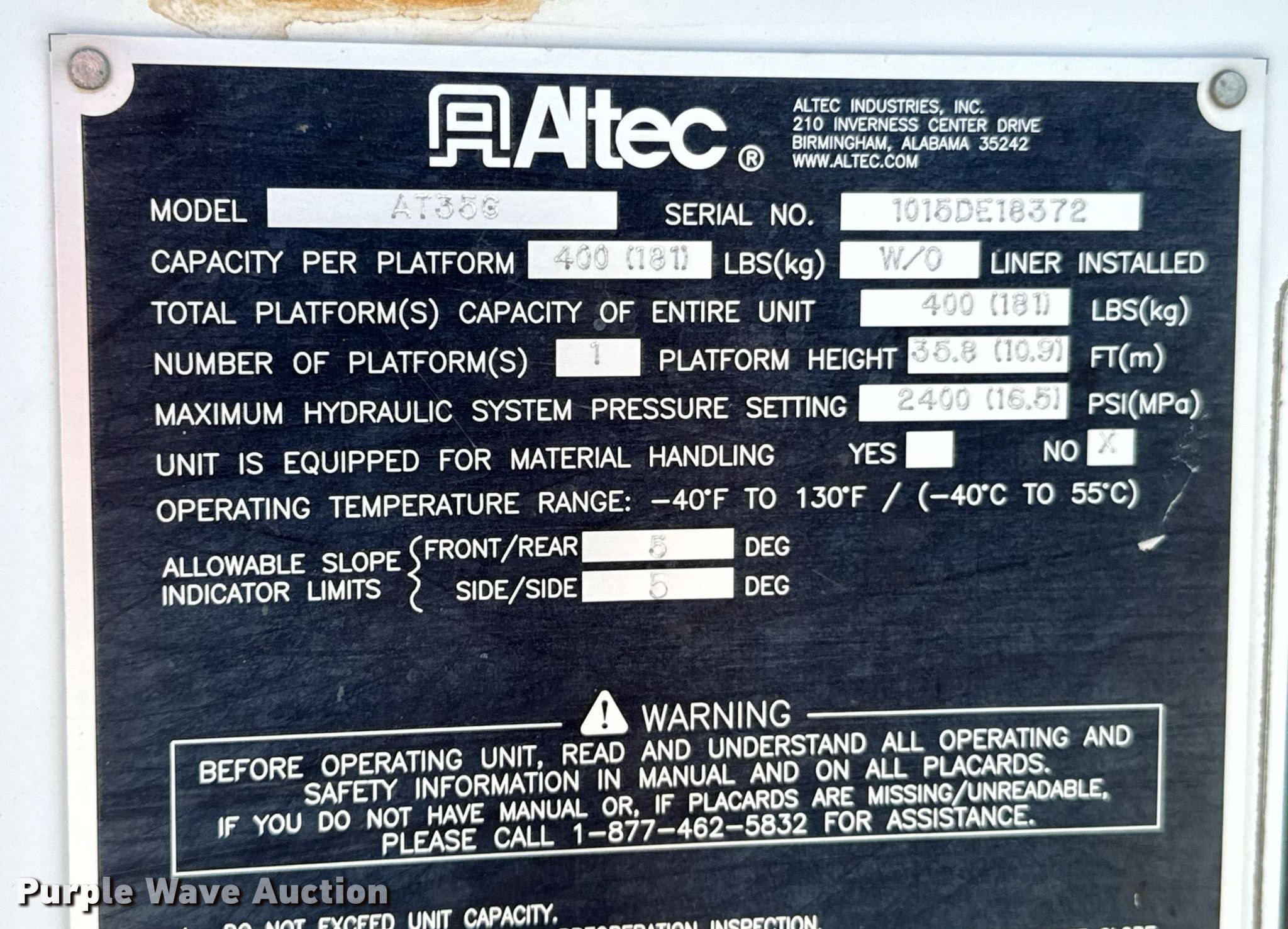 - Maximum lift height: 35'