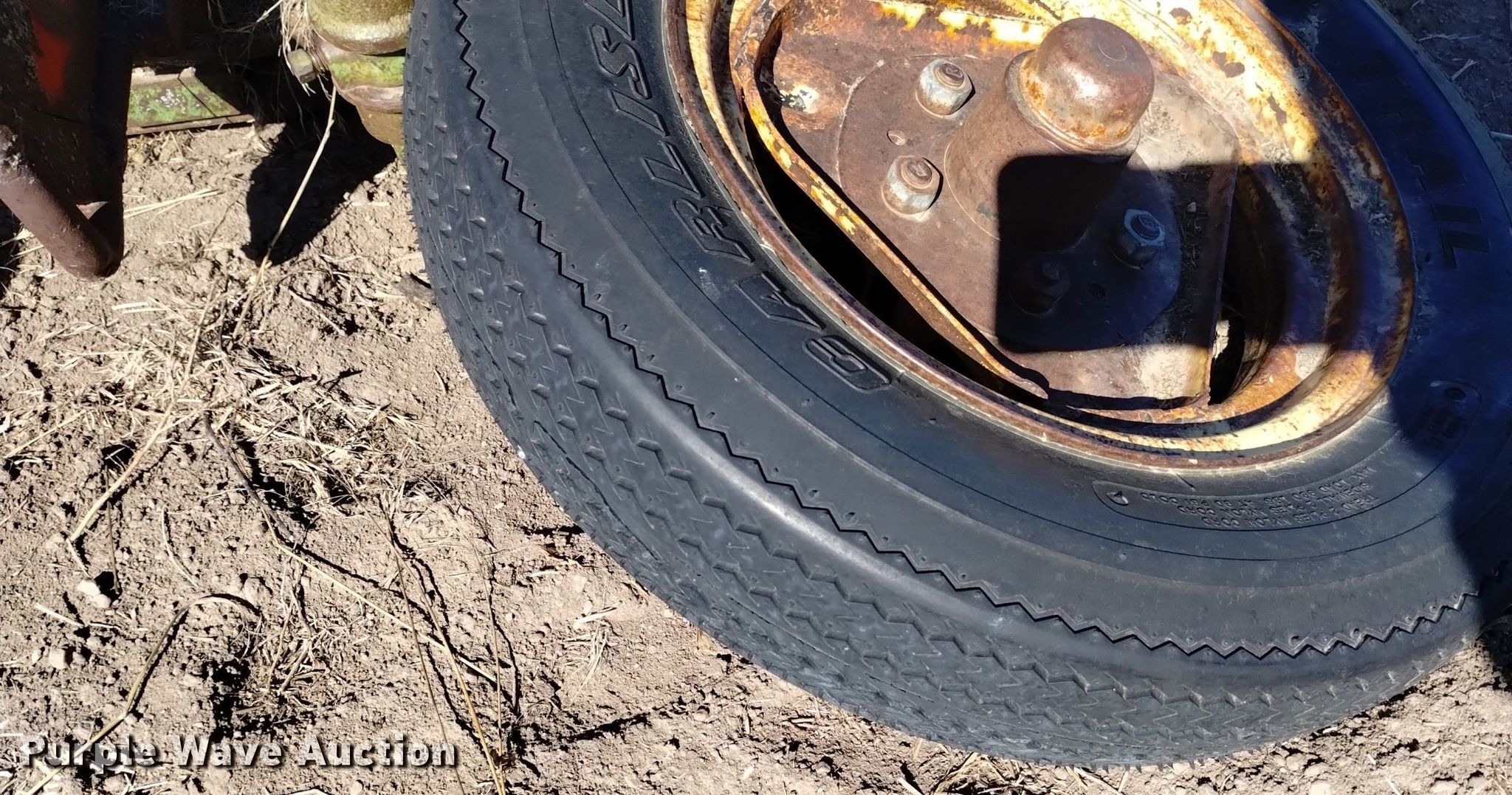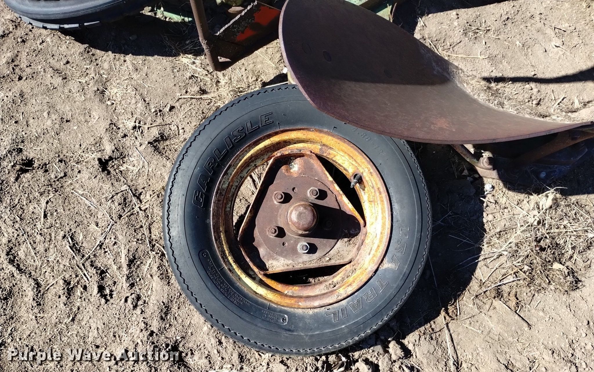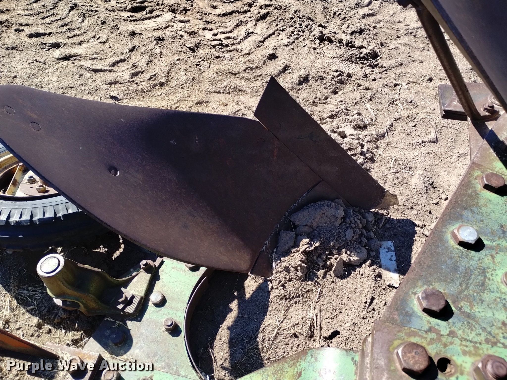 John Deere rollover plow. Overall width: 5'. Features Hitch: Three point. Tires Tire size: 4.80-12. Notes Tires flat. Diaz Farms Retirement. Big Springs, NE 69122