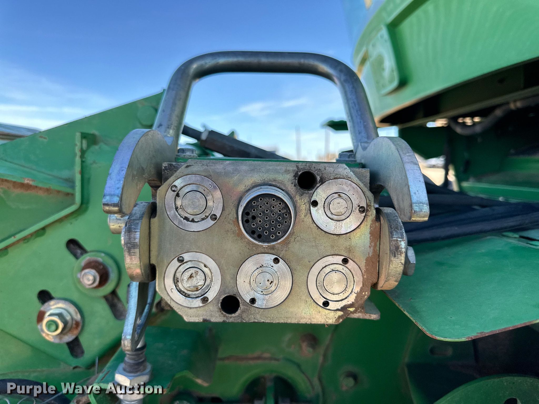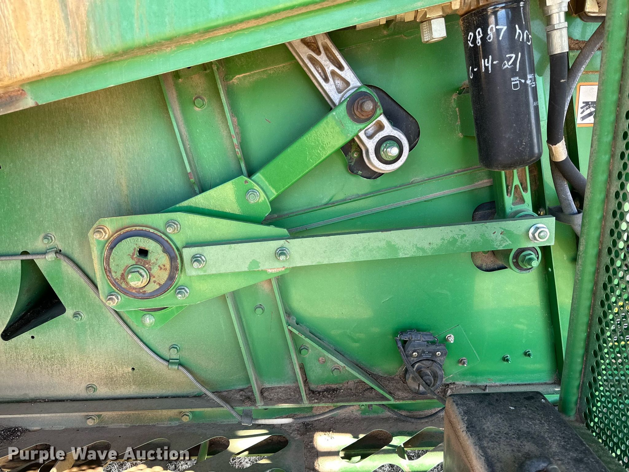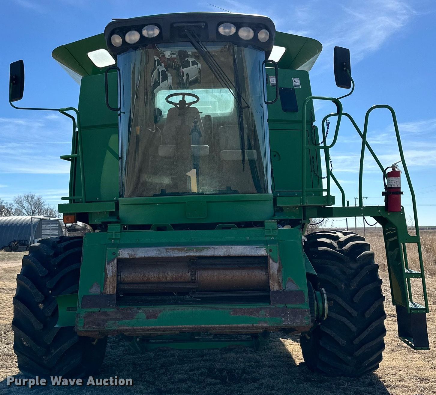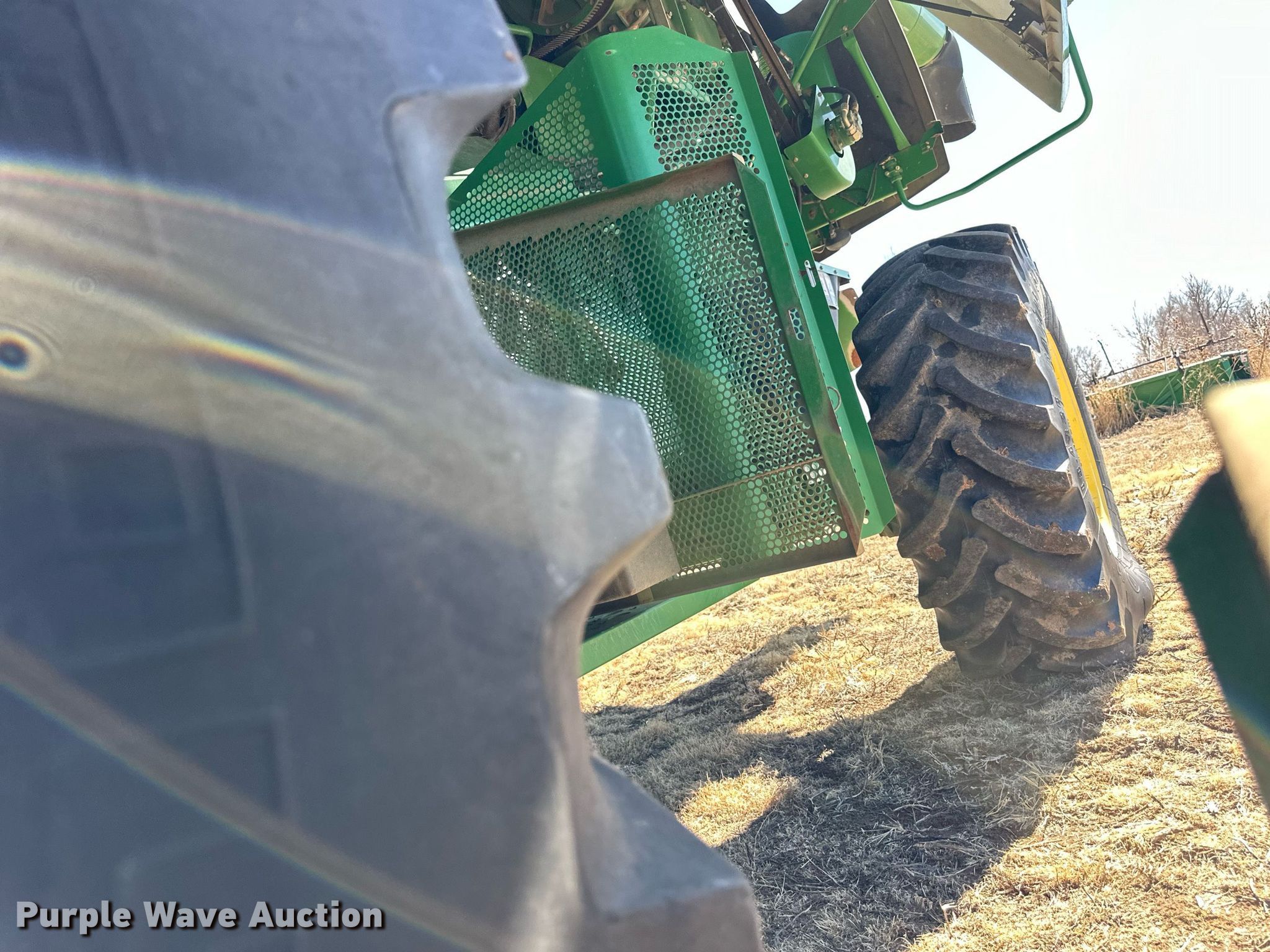 2006 John Deere 9660 STS combine. Engine hours: 3,023 on meter, Separator hours: 2,093 on meter, Serial: H09660S715741. Engine John Deere, Cylinders: 6, Fuel type: Diesel. Transmission Hydrostatic, 3F - 3R. Interior AC, Heat. Features Single point header coupler, Feederhouse: Variable speed, Reverser, Concaves: Round, Chaff spreader, Bin: Extensions, Unloading auger length: 24'. Tires Front: 800/65R32, Rear: 18.4R26. 600 Texas 15. Gruver, TX 79040