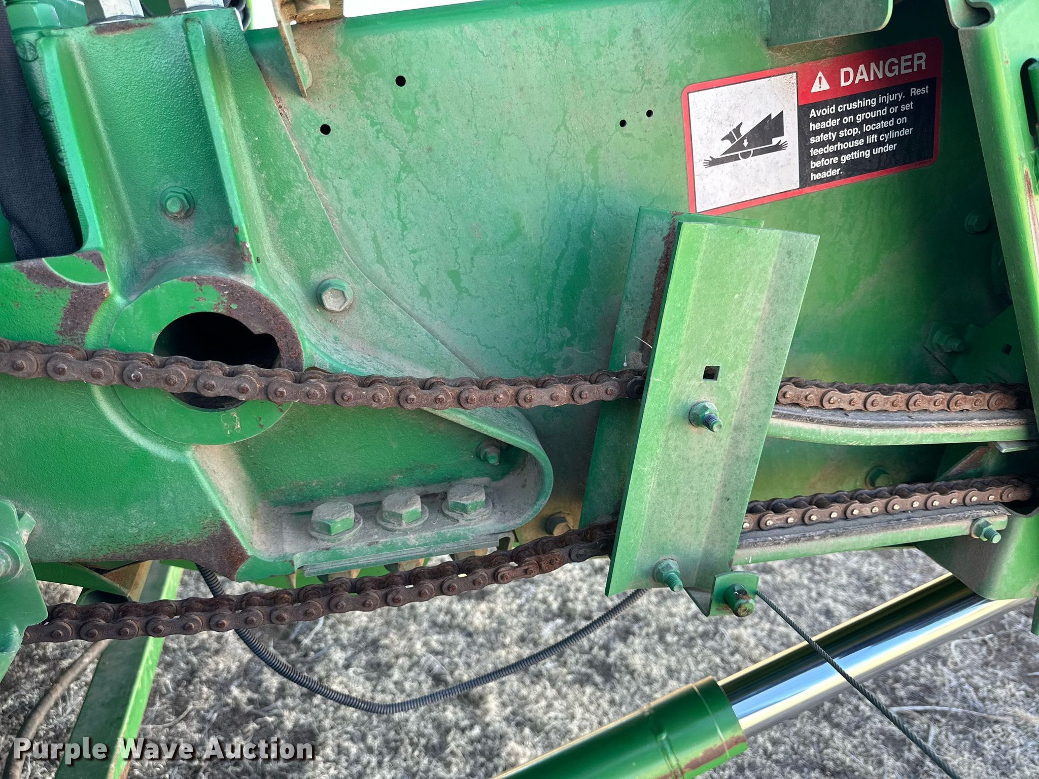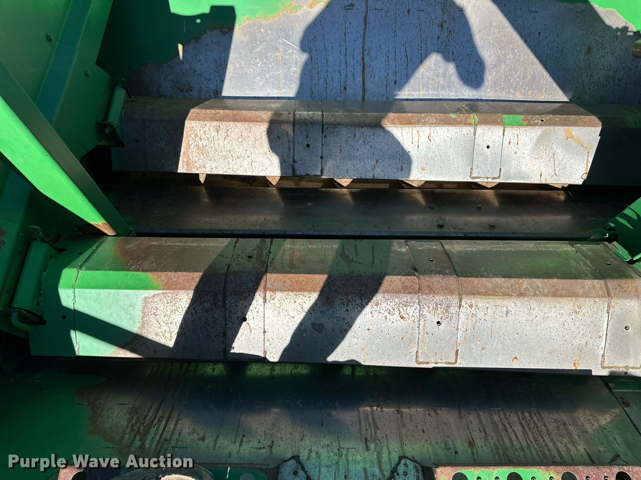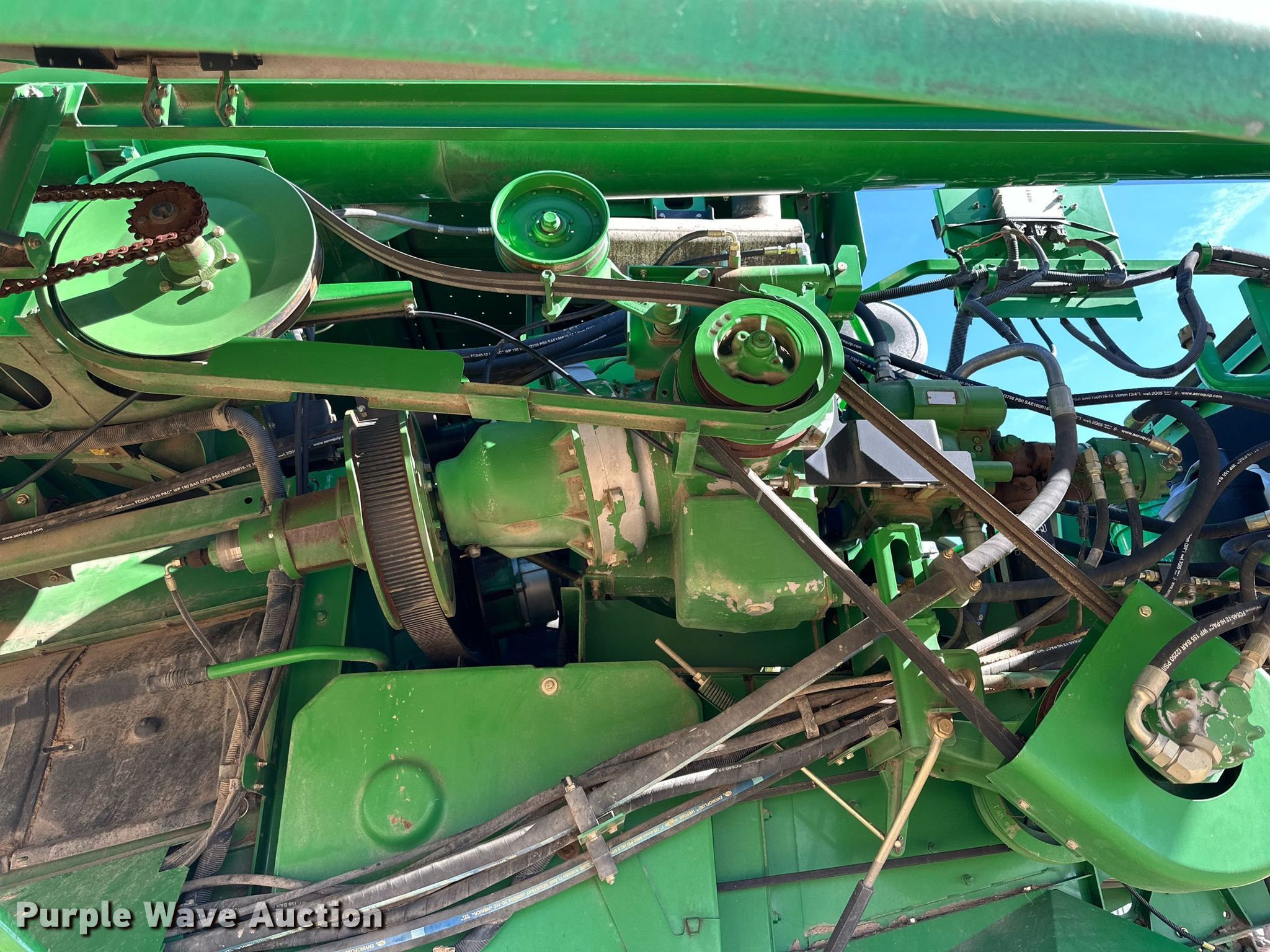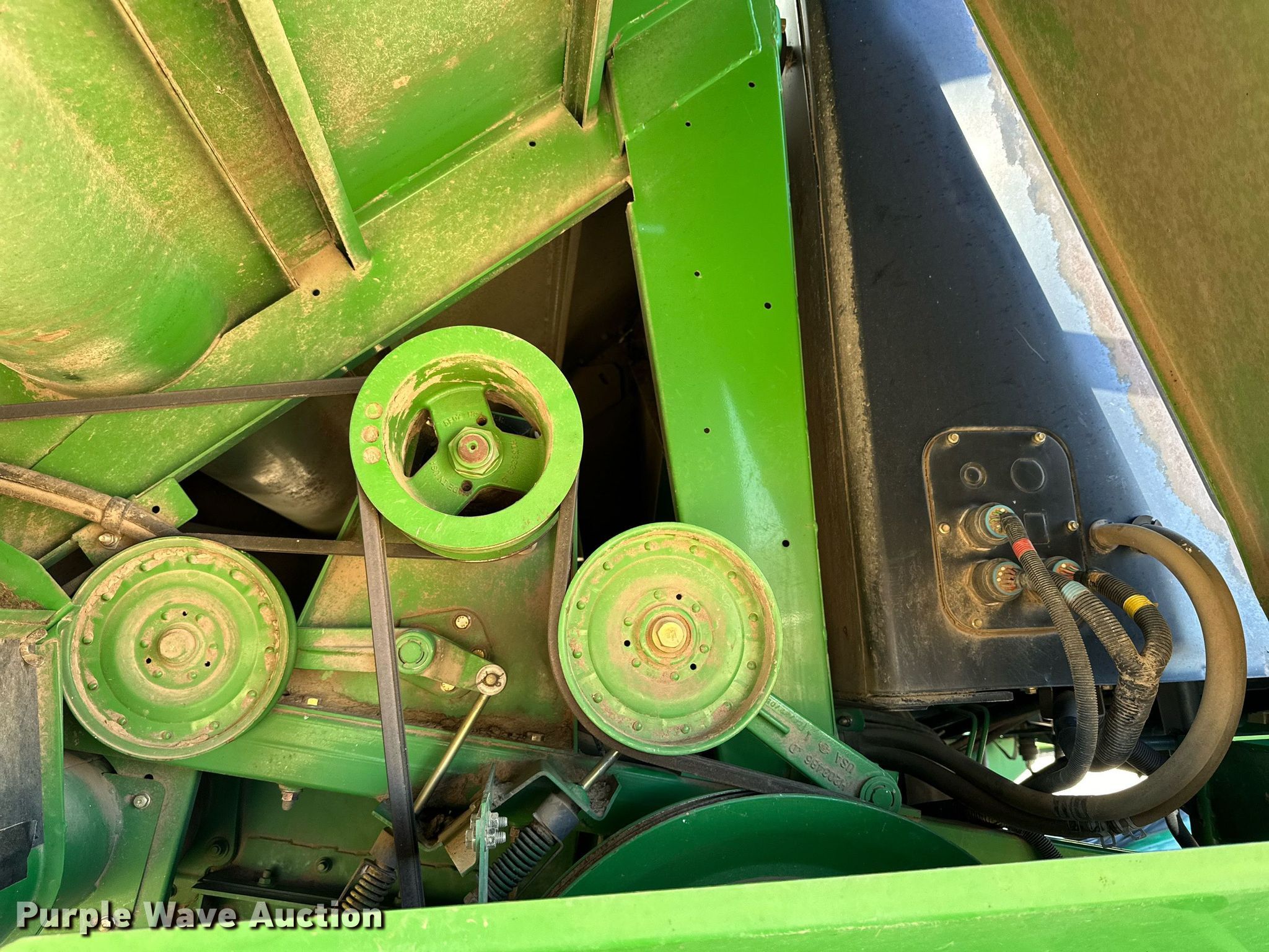 2006 John Deere 9660 STS combine. Engine hours: 3,023 on meter, Separator hours: 2,093 on meter, Serial: H09660S715741. Engine John Deere, Cylinders: 6, Fuel type: Diesel. Transmission Hydrostatic, 3F - 3R. Interior AC, Heat. Features Single point header coupler, Feederhouse: Variable speed, Reverser, Concaves: Round, Chaff spreader, Bin: Extensions, Unloading auger length: 24'. Tires Front: 800/65R32, Rear: 18.4R26. 600 Texas 15. Gruver, TX 79040