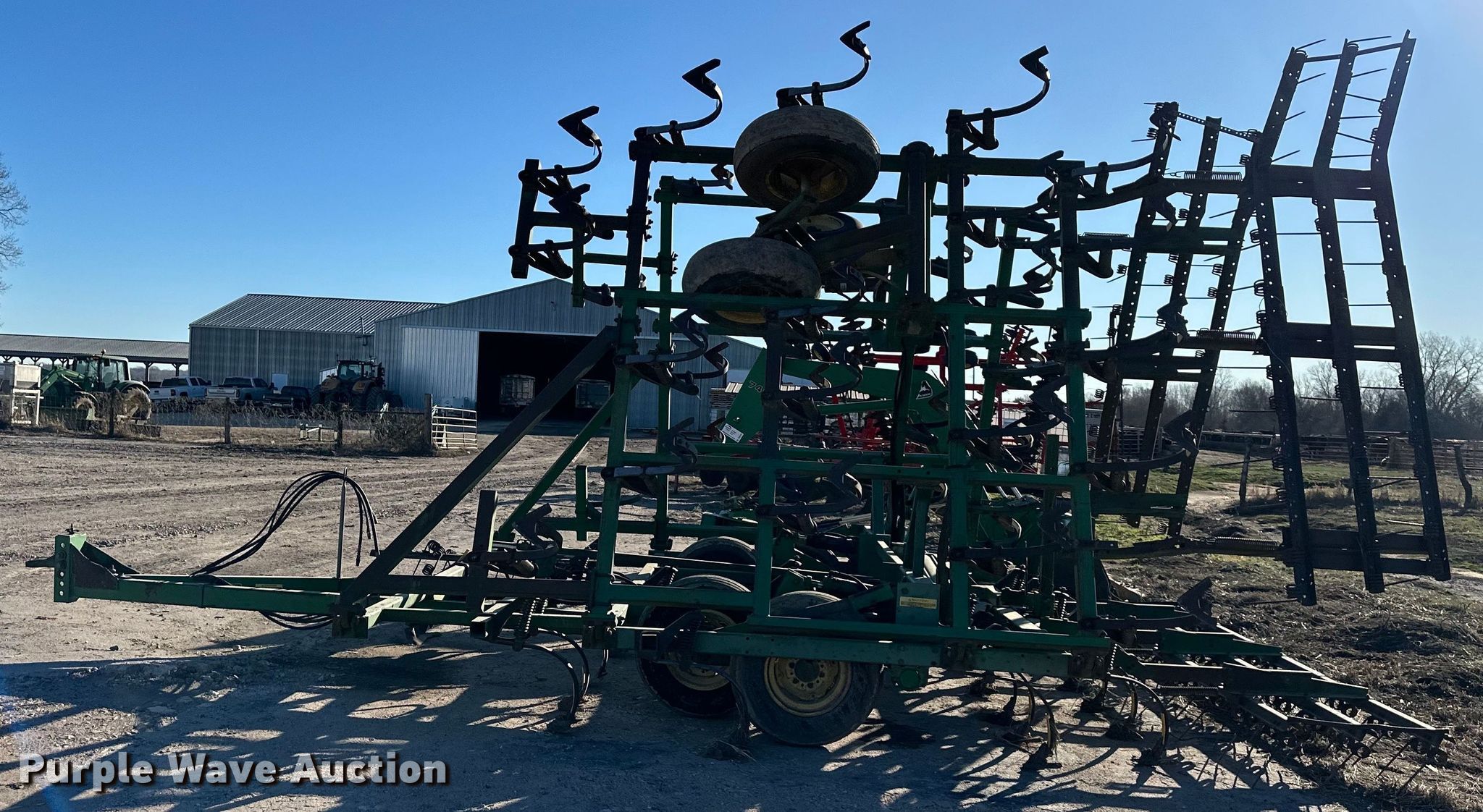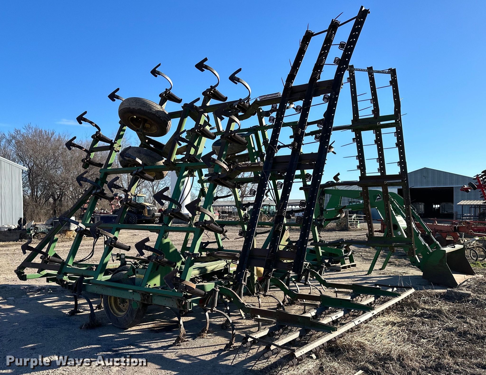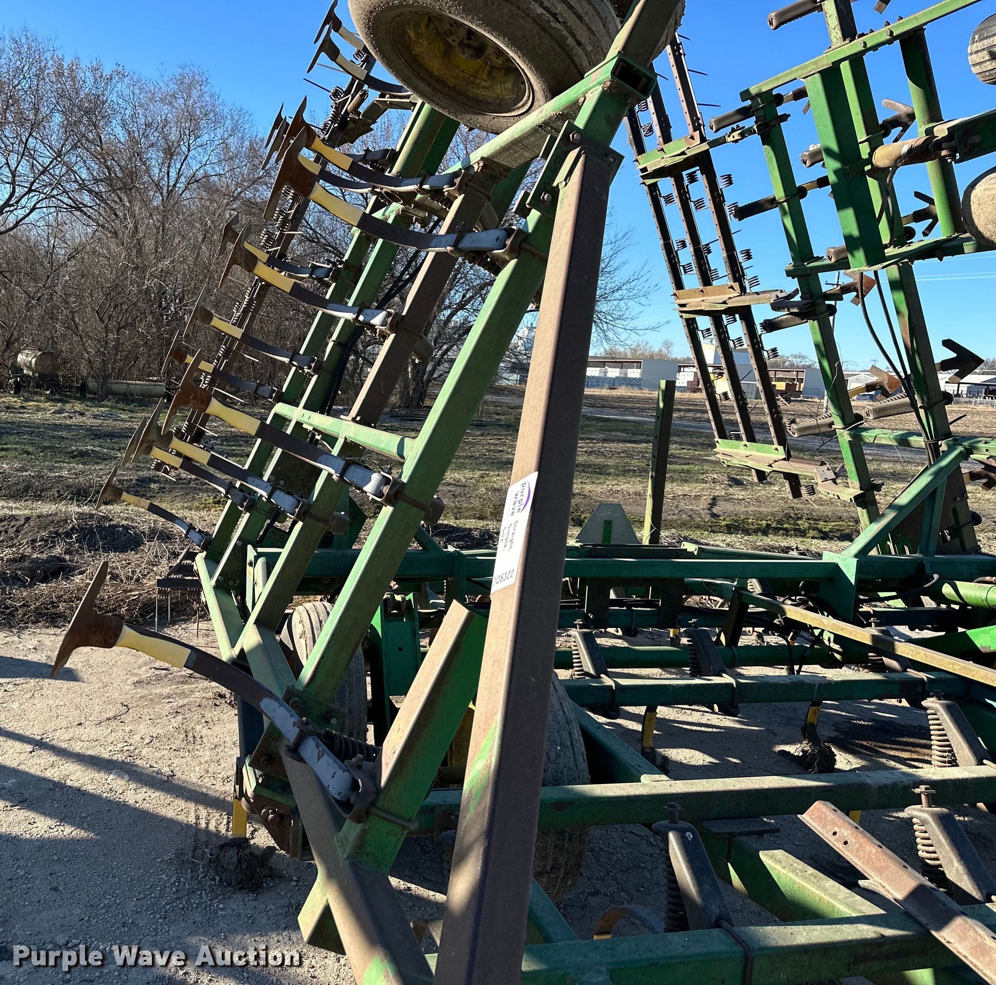 Purple Wave is selling a used Field Cultivator or Sweep Plow in Kansas. This item is a John Deere field cultivator with the following: Overall width: 34', Serial: N00960X009288