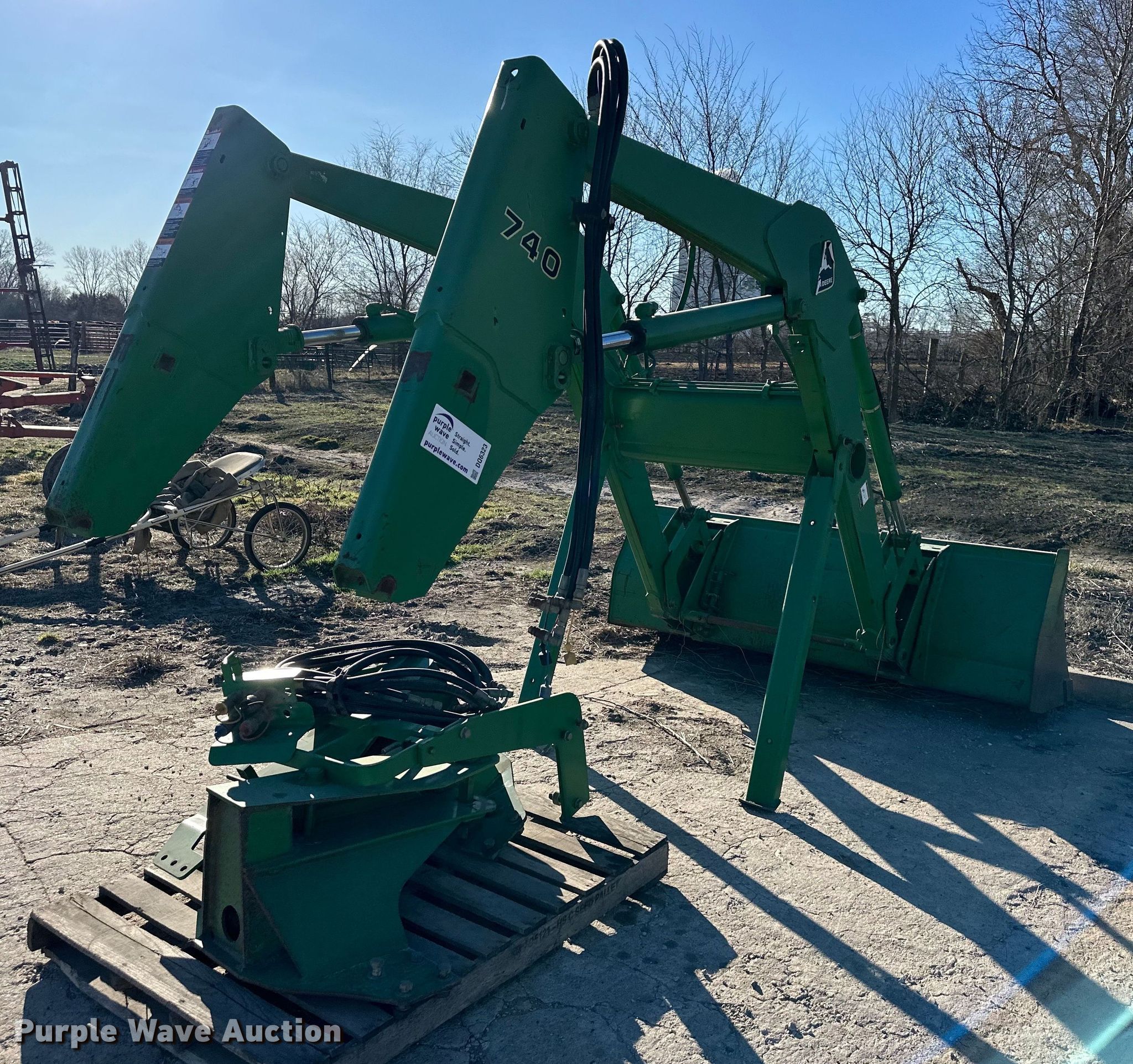 John Deere 740 loader attachment. Features. Quick attach, Bucket Width: 85". Notes Removed from John Deere 7410. Bismarck Farms, Inc.. 1687 East 1600 Road. Lawrence, KS 66044