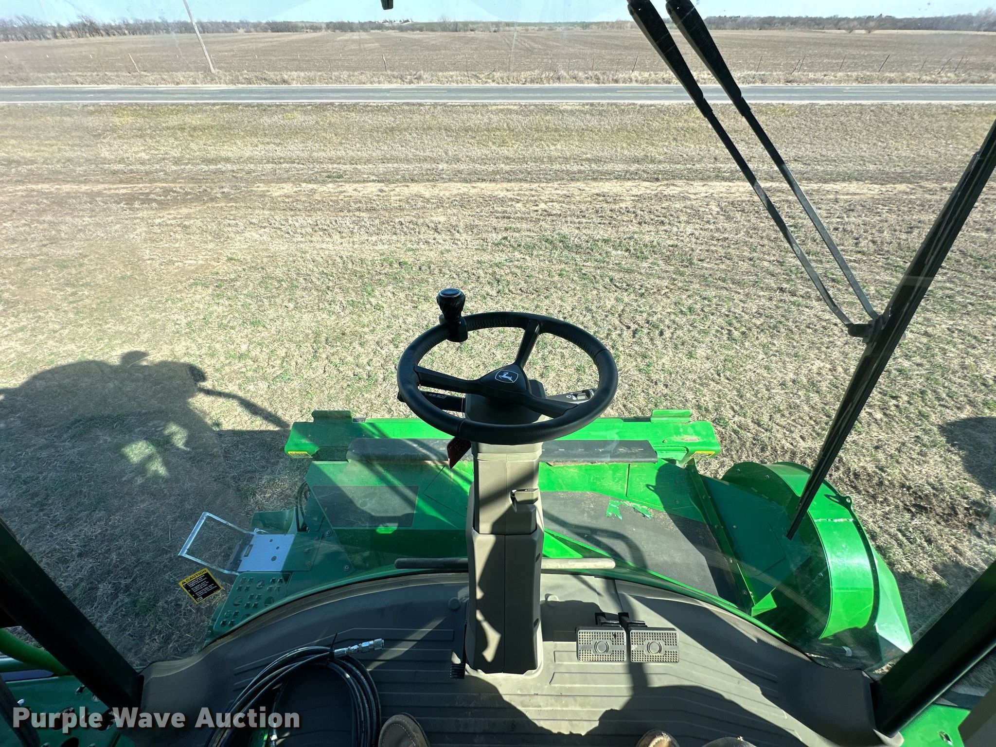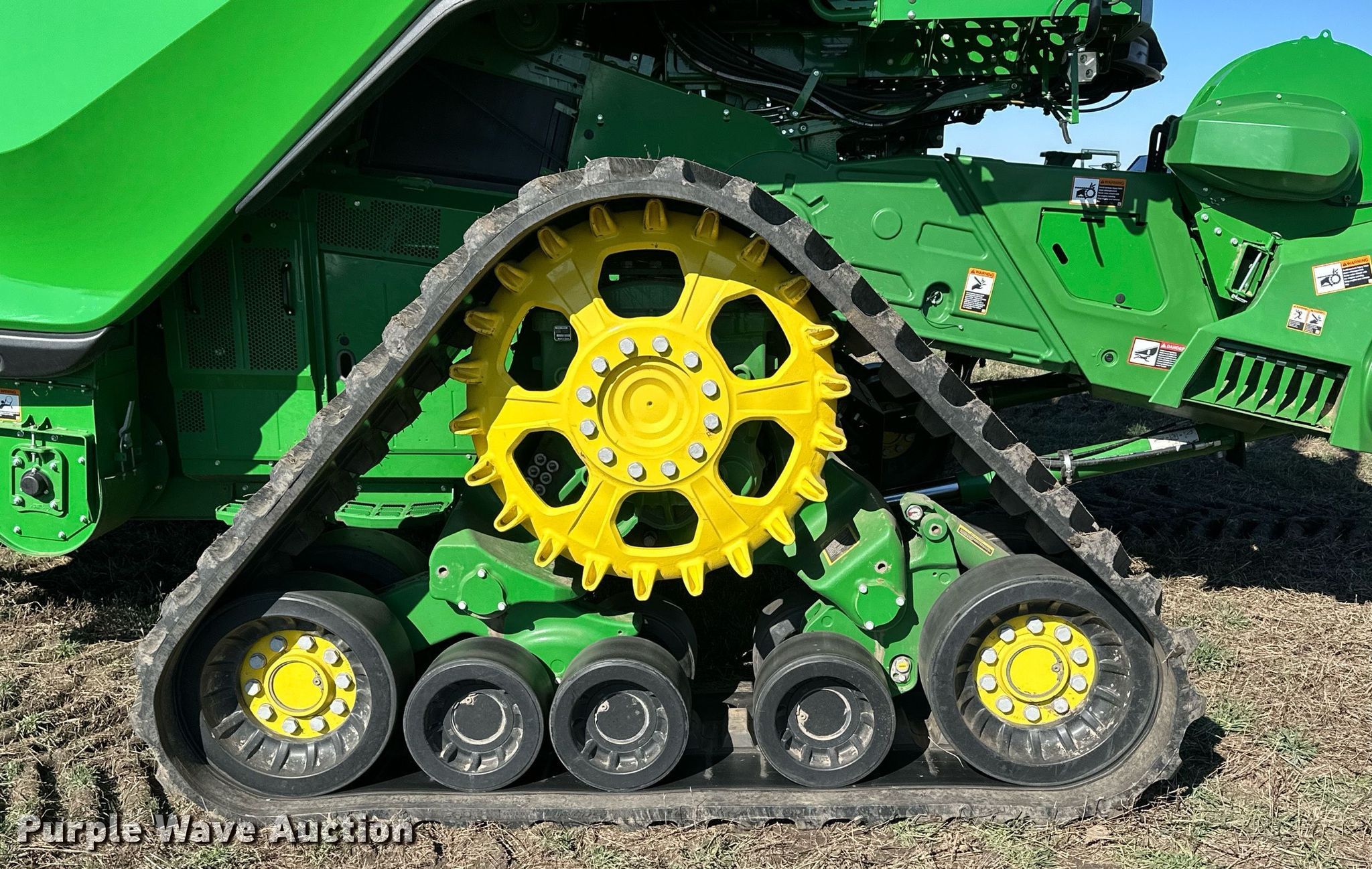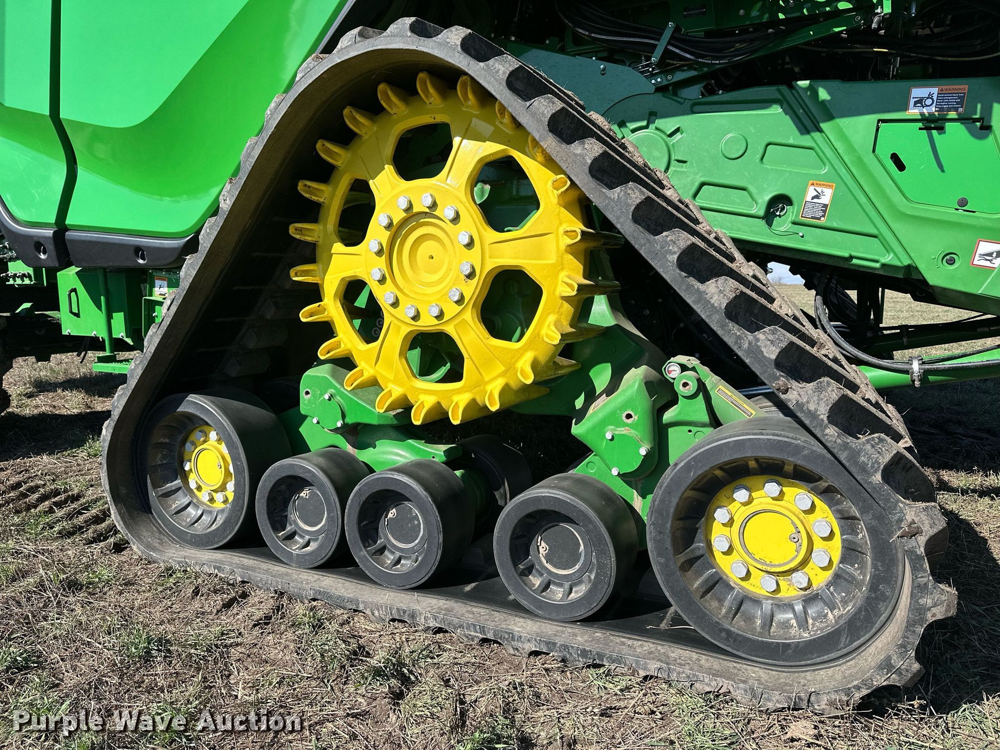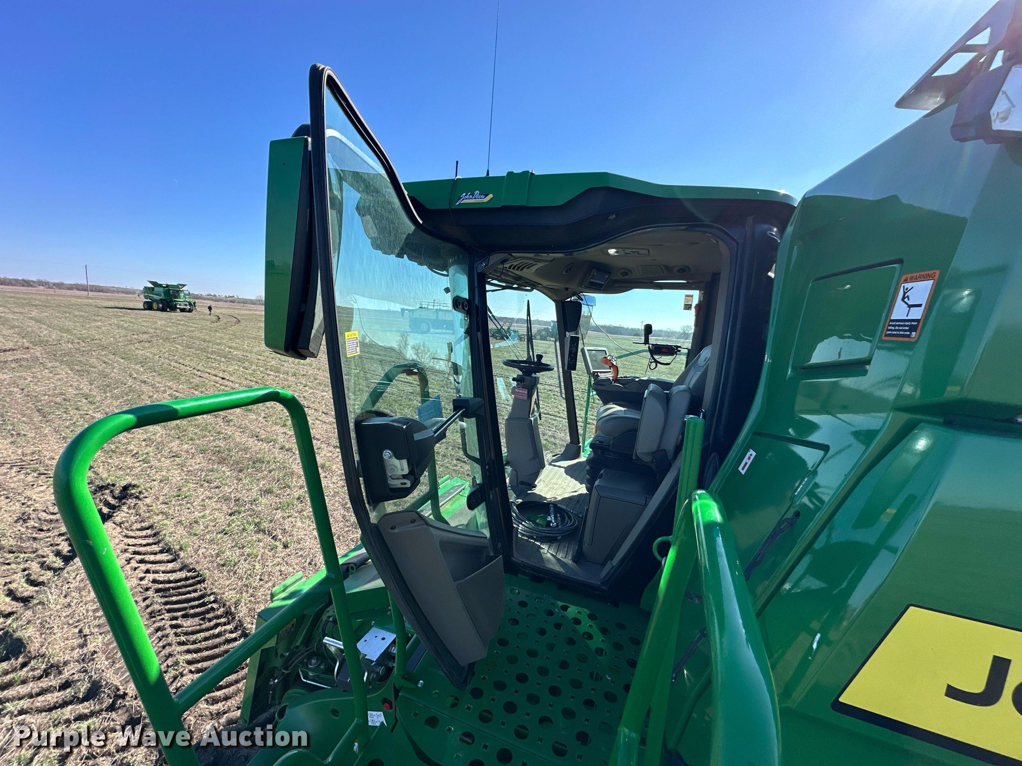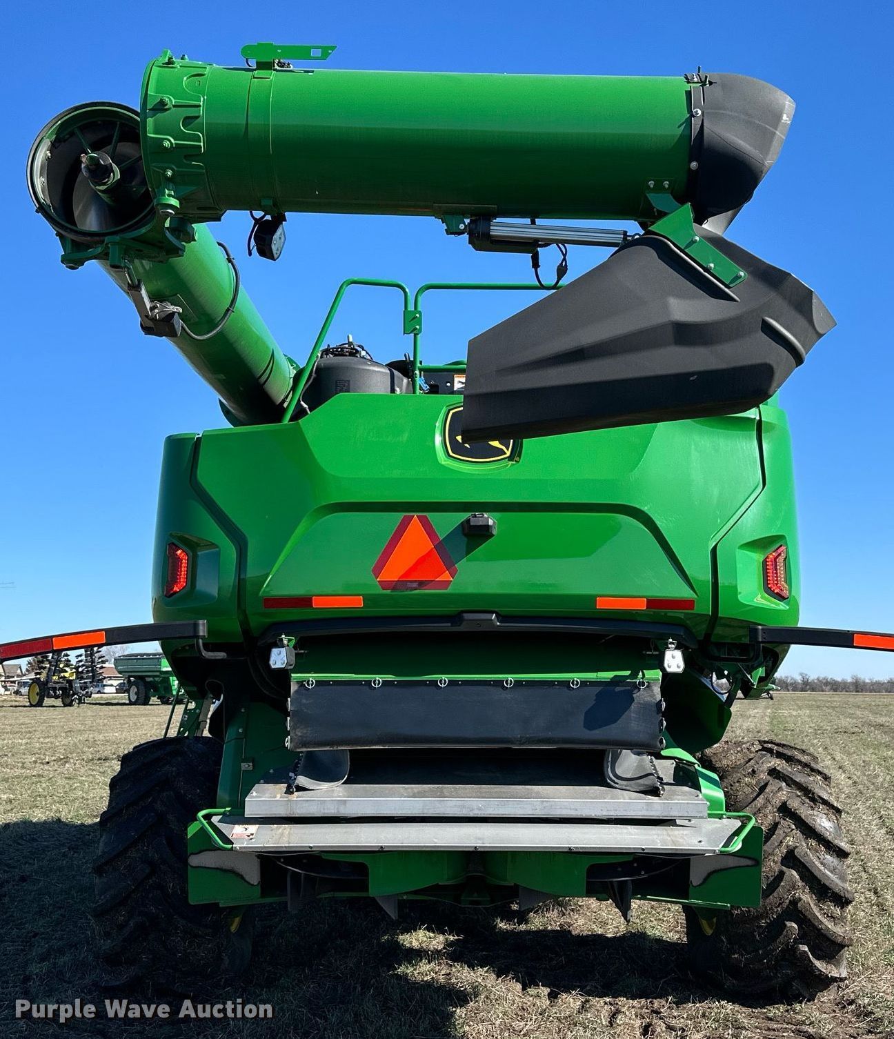 2022 John Deere X9 1100 Signature Edition RWA combine. Engine hours: 202 on meter, Separator hours: 107 on meter, Serial: 1H0X911XPNB820060. Engine John Deere PowerTech, Displacement: 13.6L, Cylinders: 6, Fuel type: Diesel. Transmission ProDrive XL, Hydrostatic. Chassis RWA, Differential lock. Interior AC, Heat, Seat: Heated, Cooled, Massage, GPS receiver John Deere Starfire 6000. Features Combine advisor ActiveVision, Auto maintain, Machine sync, Operator manual, Single point header coupler, Feederhouse: Lateral tilt, Variable speed, Reverser, Concaves: Extended wear round, Chaff spreader, Straw chopper, Power tailboard, Bin: Power folding bin, Extended wear grain handling system, Unloading auger length: 31'. Tires Size 750/65R26. Tracks Width: 36", Rubber. Notes CB radio not included, Engine warranty valid until September 22, 2024 or 2,000 hours, Emissions warranty valid until September 23, 2027 or 3,000 hours, Extended Powertrain warranty valid until September 20, 2028 or 2,500 hours. Pursuant to Kansas law, Purple Wave will not be collecting sales taxes on any of the purchases made in this business liquidation auction.. Ingermanson Farms - Open inspection March 15. 6529 North Solomon Road. Solomon, KS 67480