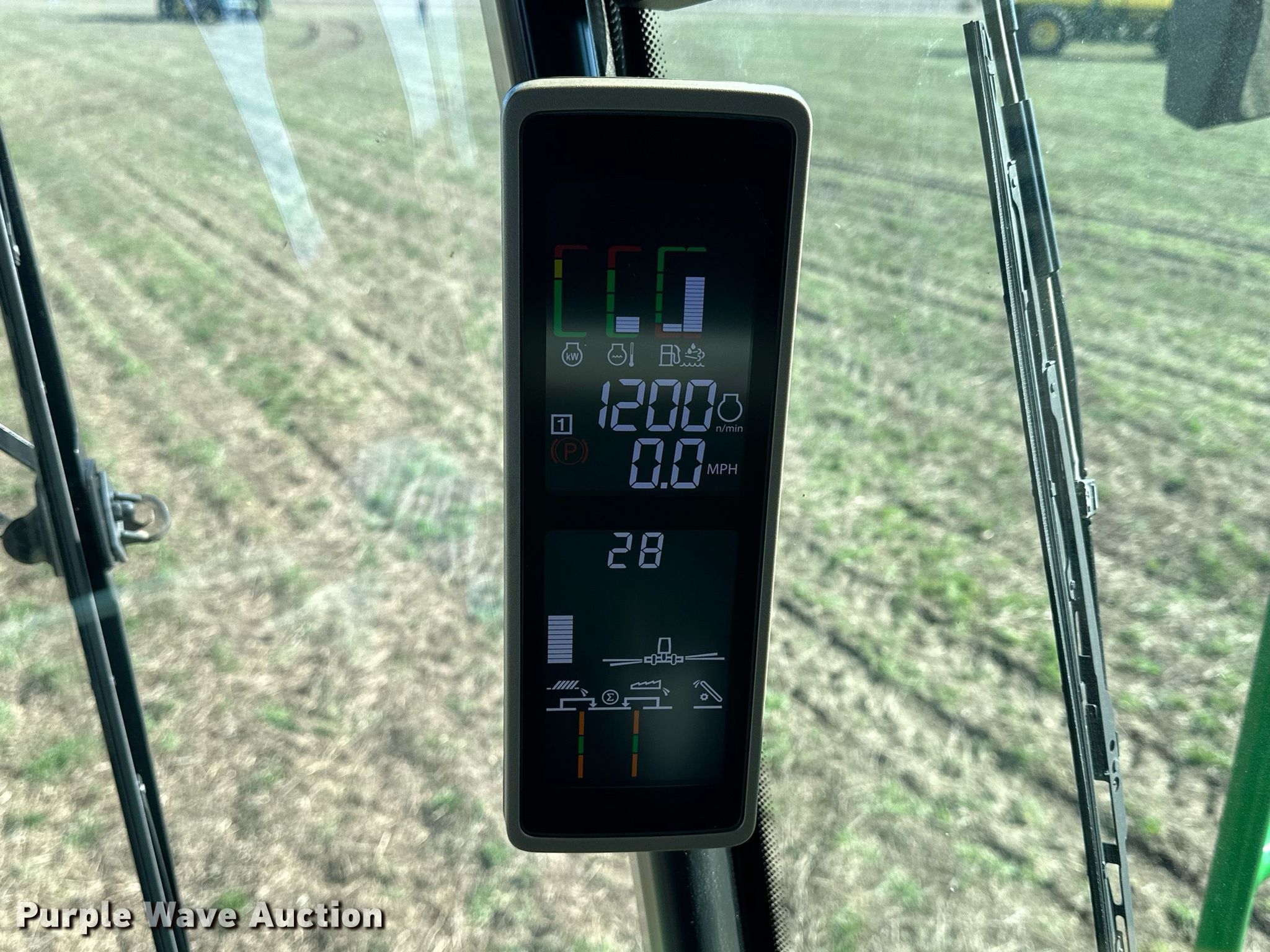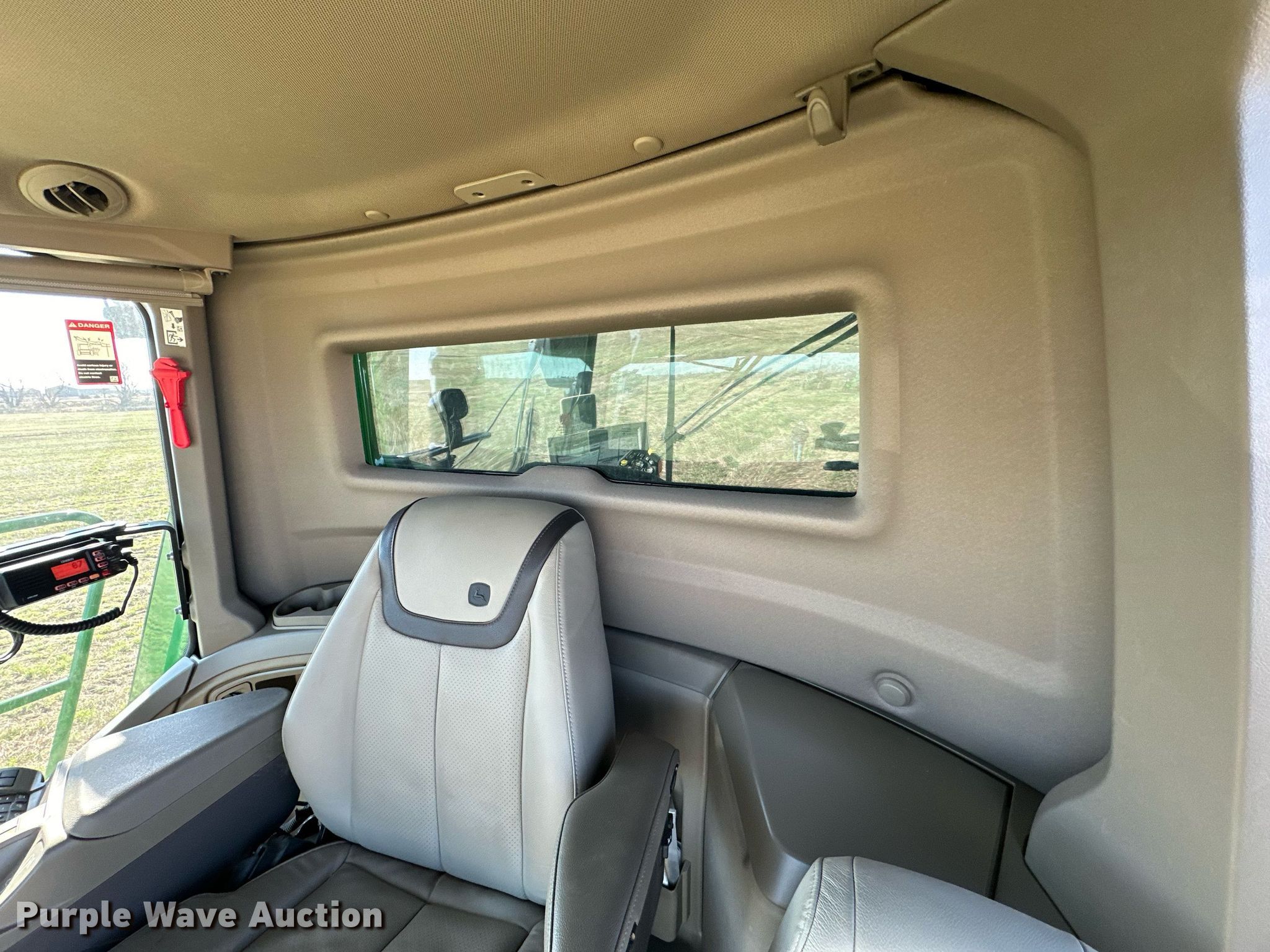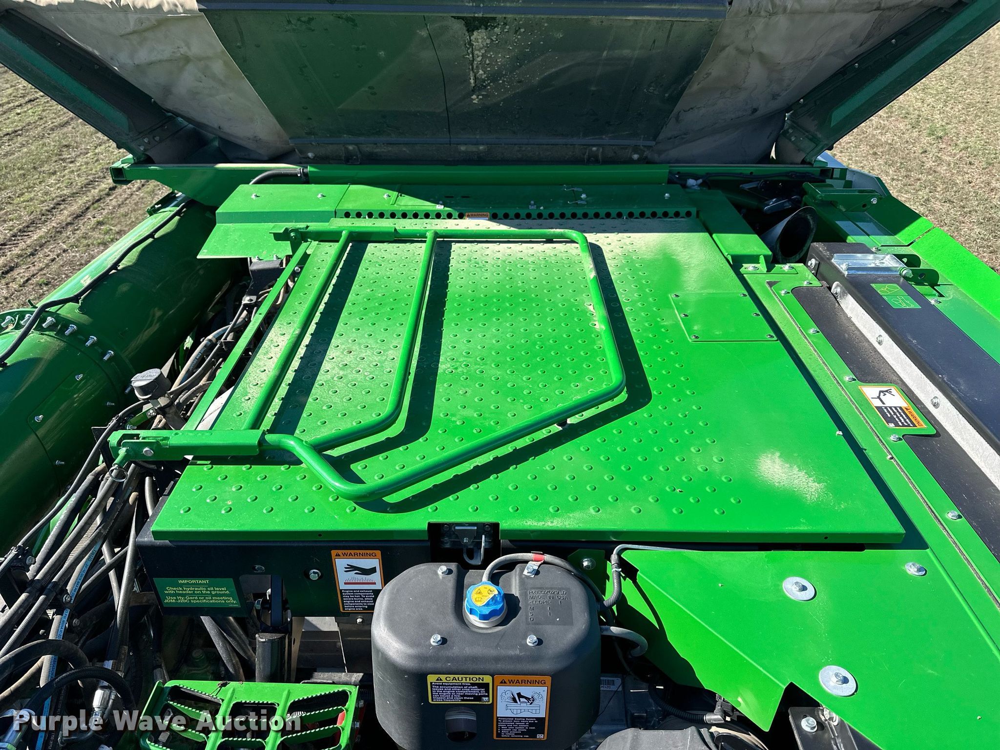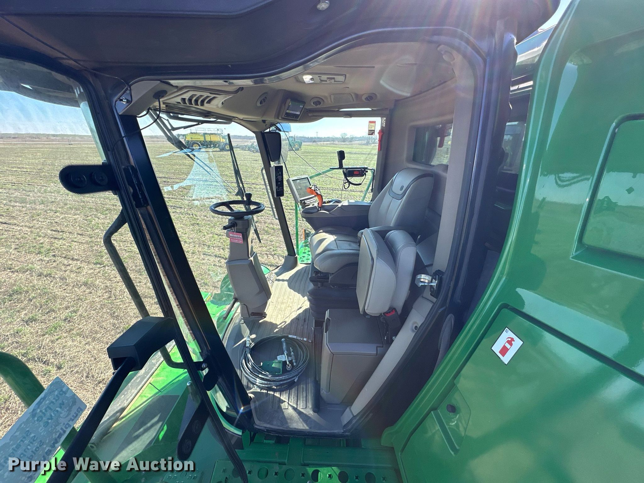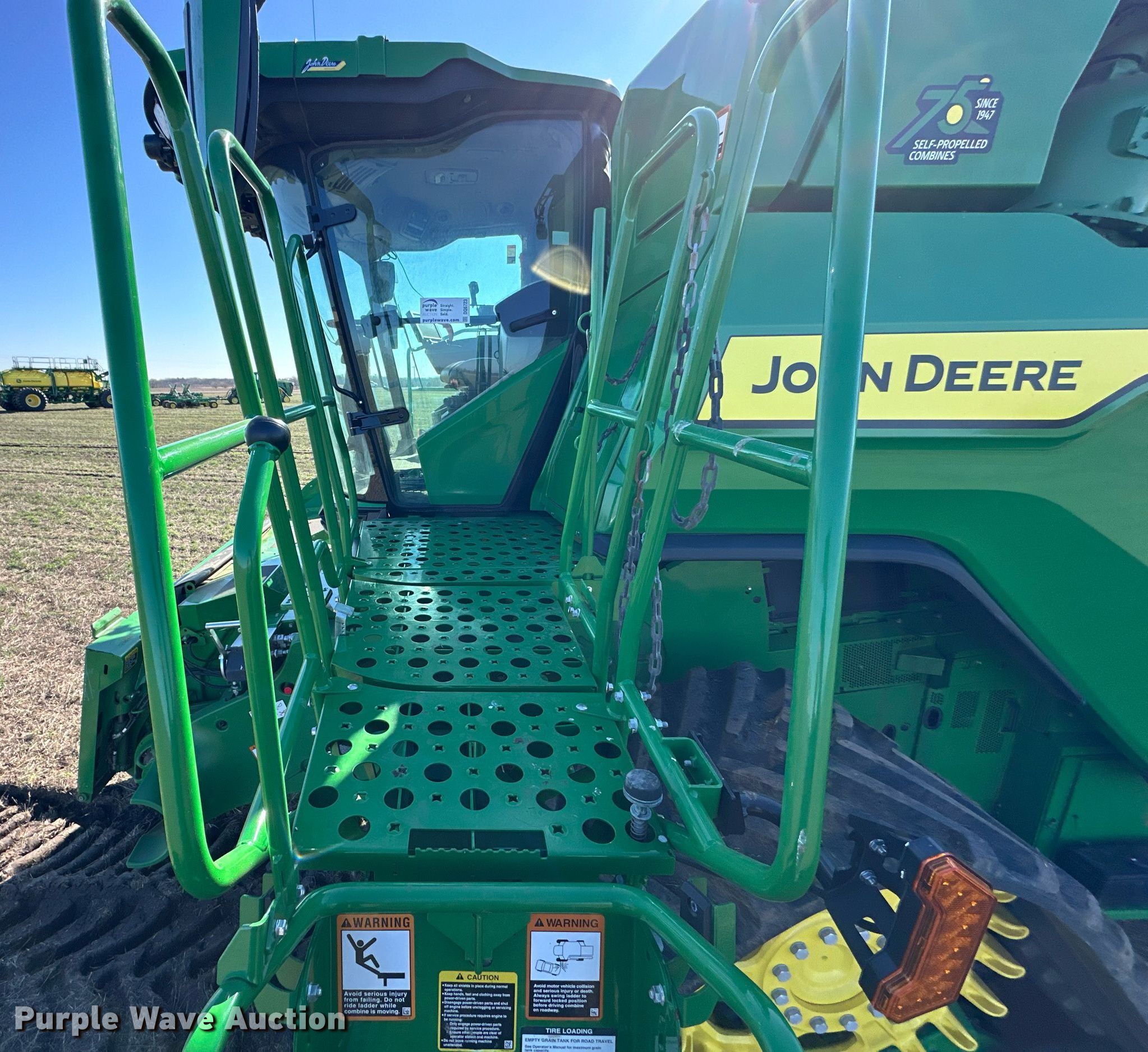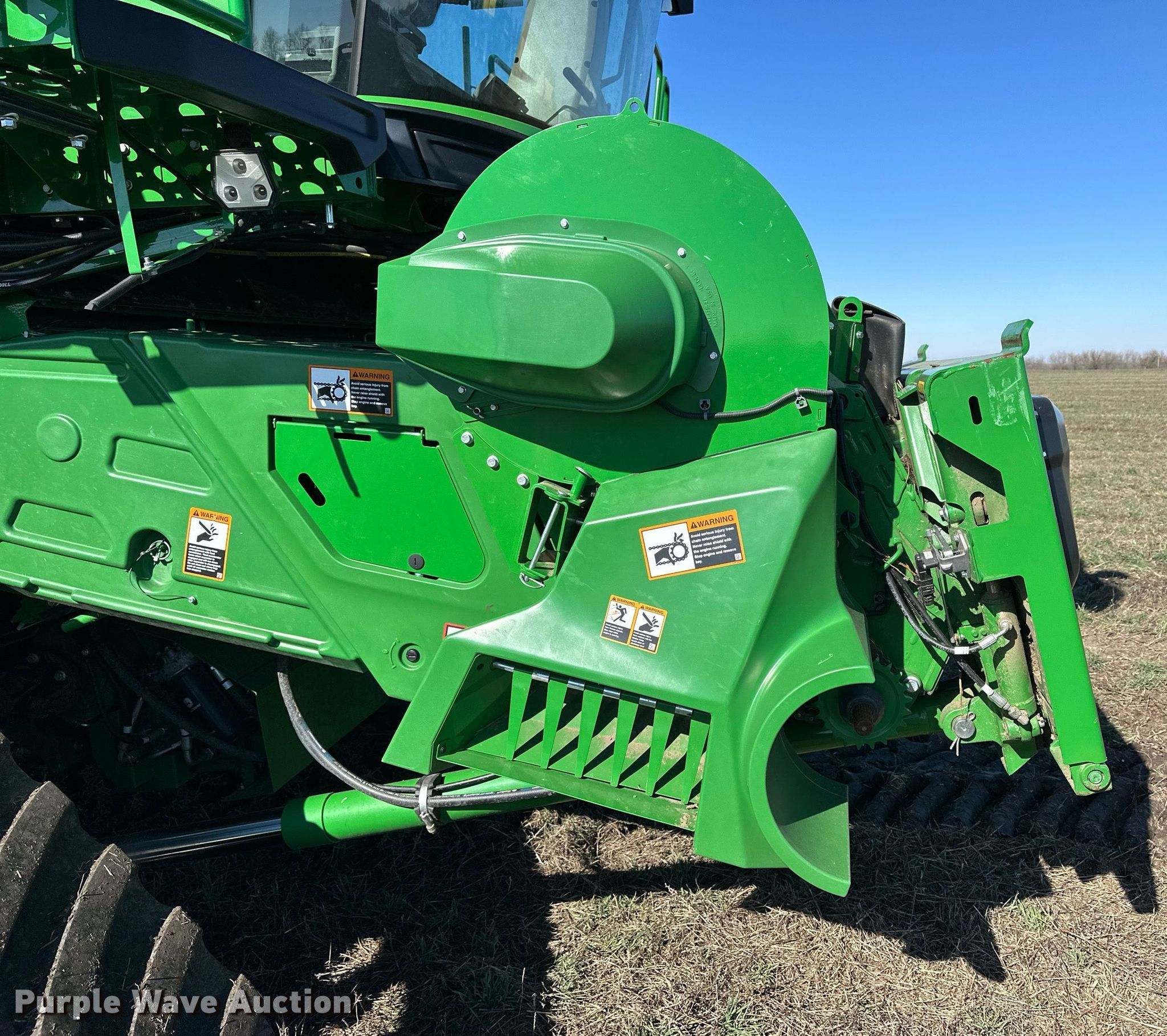 2022 John Deere X9 1100 Signature Edition RWA combine. Engine hours: 202 on meter, Separator hours: 107 on meter, Serial: 1H0X911XPNB820060. Engine John Deere PowerTech, Displacement: 13.6L, Cylinders: 6, Fuel type: Diesel. Transmission ProDrive XL, Hydrostatic. Chassis RWA, Differential lock. Interior AC, Heat, Seat: Heated, Cooled, Massage, GPS receiver John Deere Starfire 6000. Features Combine advisor ActiveVision, Auto maintain, Machine sync, Operator manual, Single point header coupler, Feederhouse: Lateral tilt, Variable speed, Reverser, Concaves: Extended wear round, Chaff spreader, Straw chopper, Power tailboard, Bin: Power folding bin, Extended wear grain handling system, Unloading auger length: 31'. Tires Size 750/65R26. Tracks Width: 36", Rubber. Notes CB radio not included, Engine warranty valid until September 22, 2024 or 2,000 hours, Emissions warranty valid until September 23, 2027 or 3,000 hours, Extended Powertrain warranty valid until September 20, 2028 or 2,500 hours. Pursuant to Kansas law, Purple Wave will not be collecting sales taxes on any of the purchases made in this business liquidation auction.. Ingermanson Farms - Open inspection March 15. 6529 North Solomon Road. Solomon, KS 67480