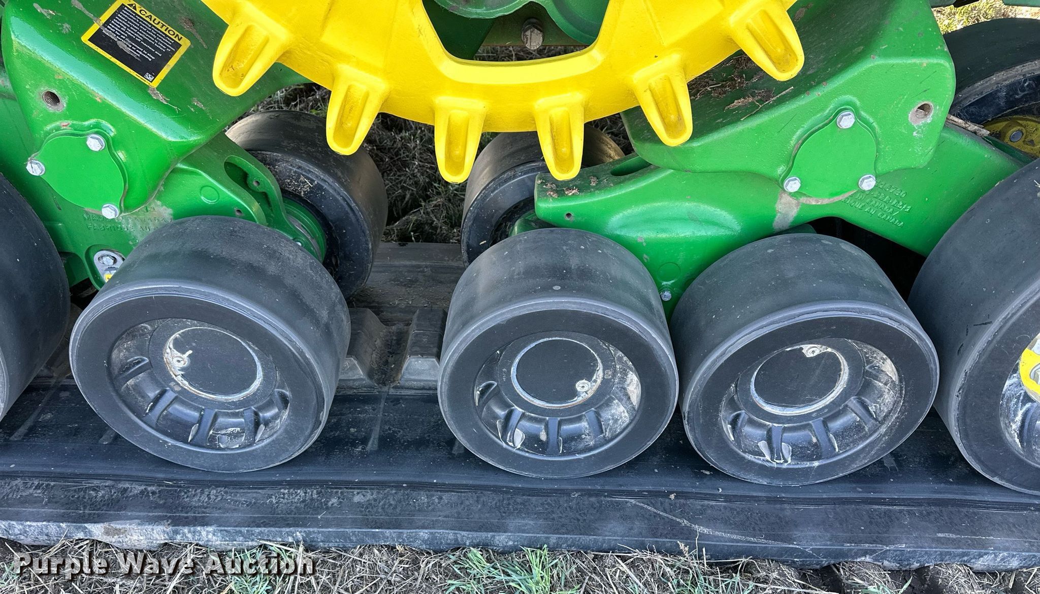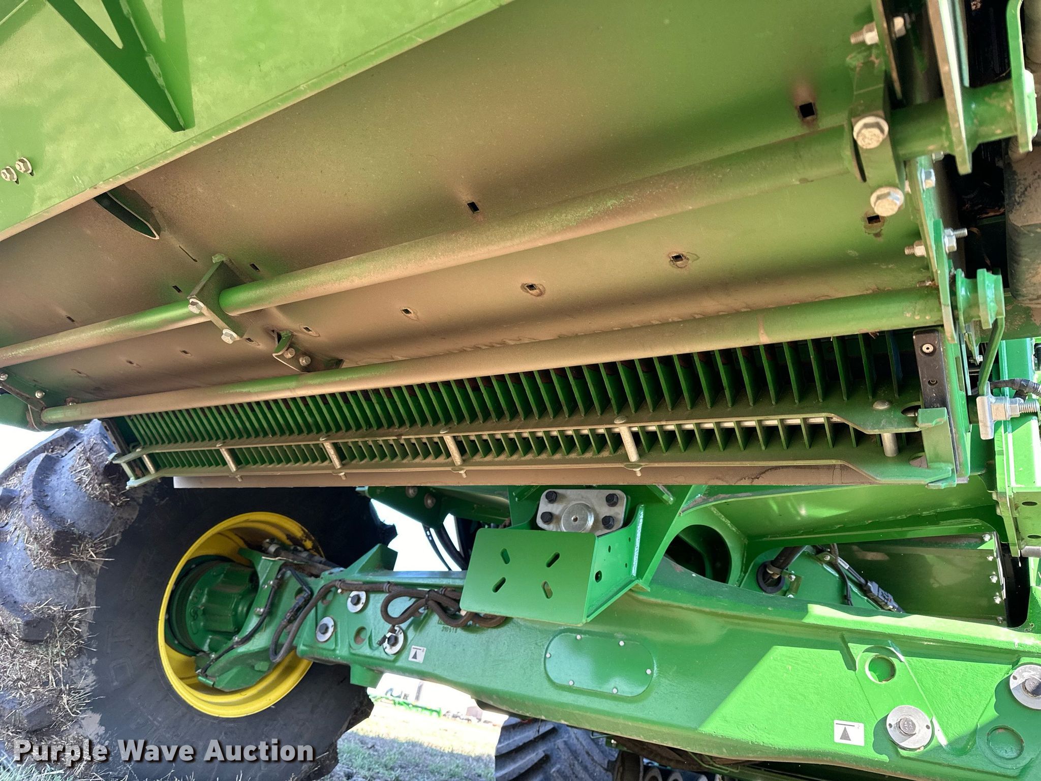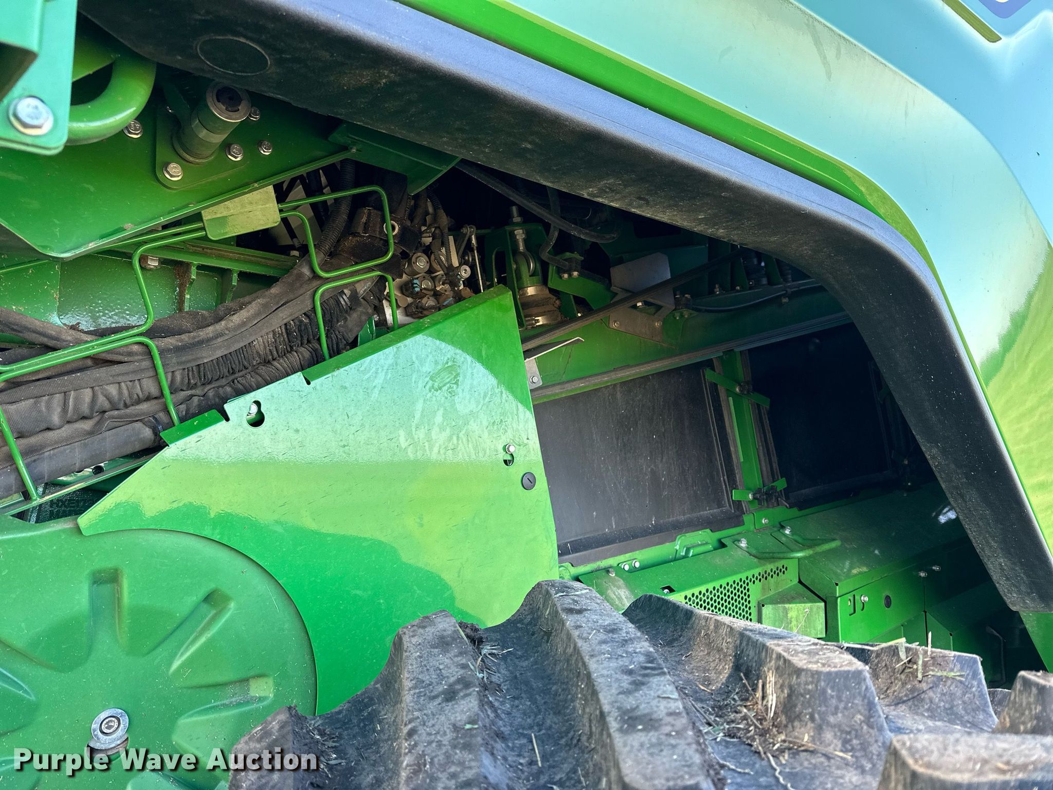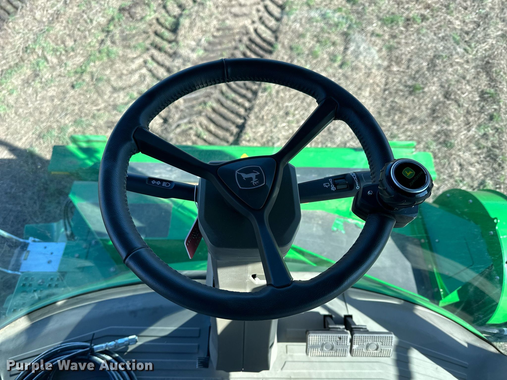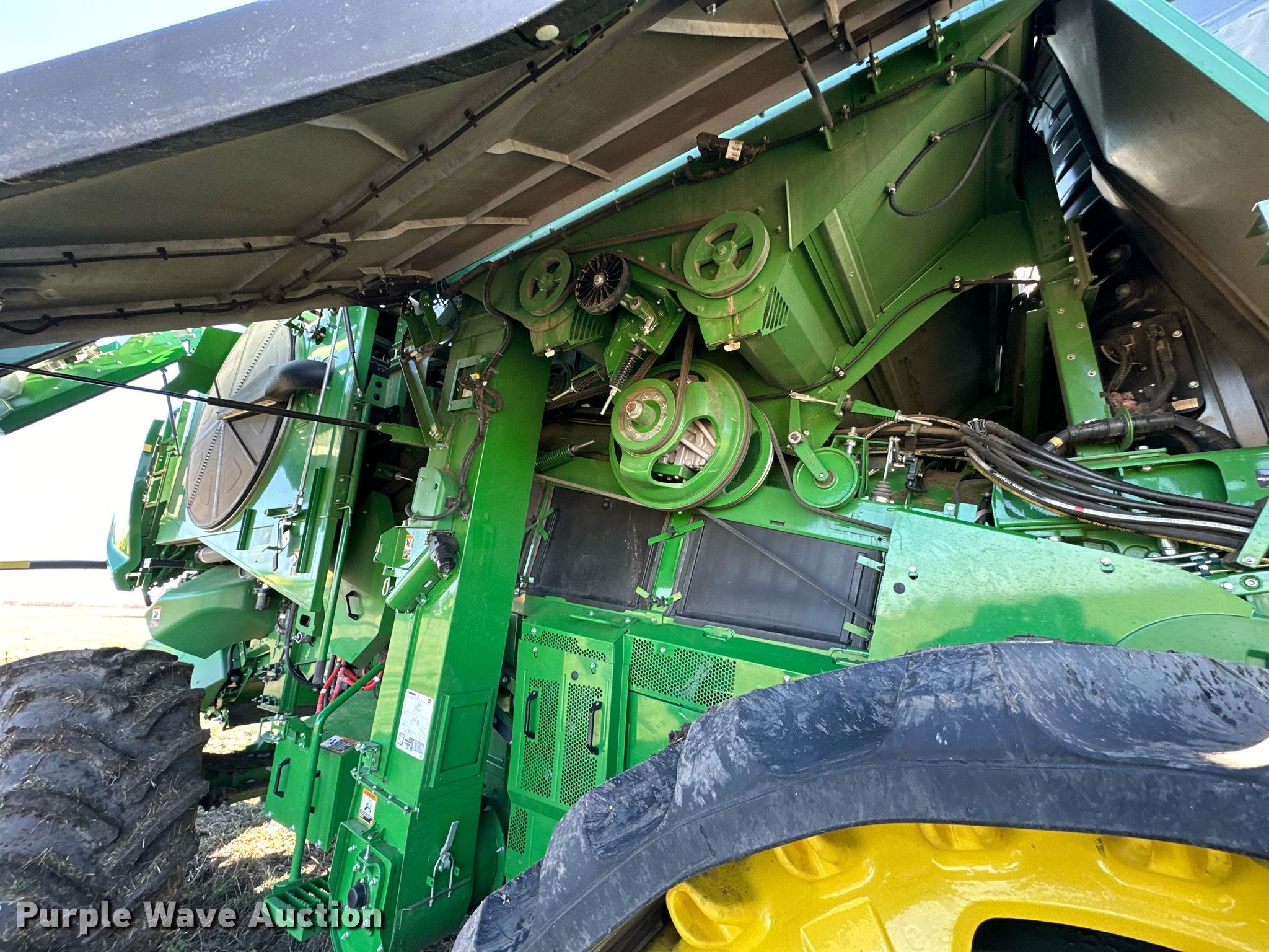 2022 John Deere X9 1100 Signature Edition RWA combine. Engine hours: 202 on meter, Separator hours: 107 on meter, Serial: 1H0X911XPNB820060. Engine John Deere PowerTech, Displacement: 13.6L, Cylinders: 6, Fuel type: Diesel. Transmission ProDrive XL, Hydrostatic. Chassis RWA, Differential lock. Interior AC, Heat, Seat: Heated, Cooled, Massage, GPS receiver John Deere Starfire 6000. Features Combine advisor ActiveVision, Auto maintain, Machine sync, Operator manual, Single point header coupler, Feederhouse: Lateral tilt, Variable speed, Reverser, Concaves: Extended wear round, Chaff spreader, Straw chopper, Power tailboard, Bin: Power folding bin, Extended wear grain handling system, Unloading auger length: 31'. Tires Size 750/65R26. Tracks Width: 36", Rubber. Notes CB radio not included, Engine warranty valid until September 22, 2024 or 2,000 hours, Emissions warranty valid until September 23, 2027 or 3,000 hours, Extended Powertrain warranty valid until September 20, 2028 or 2,500 hours. Pursuant to Kansas law, Purple Wave will not be collecting sales taxes on any of the purchases made in this business liquidation auction.. Ingermanson Farms - Open inspection March 15. 6529 North Solomon Road. Solomon, KS 67480
