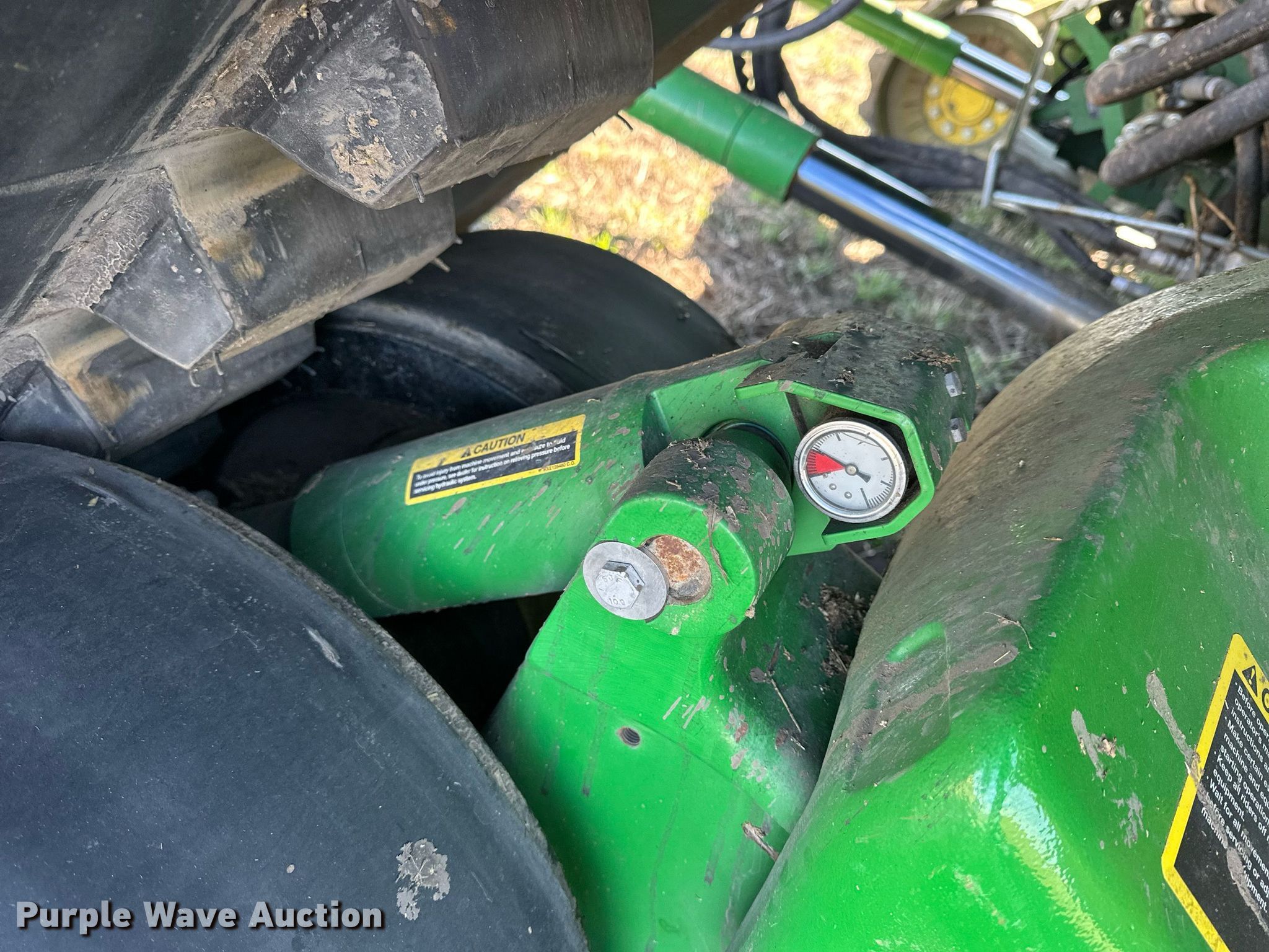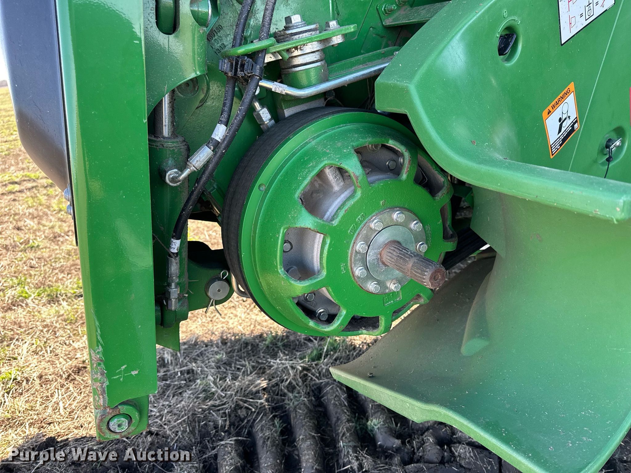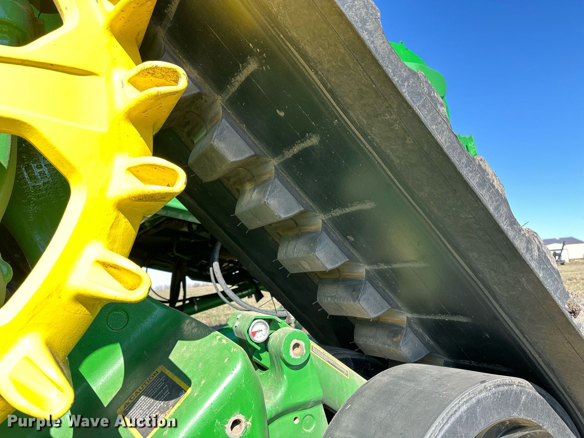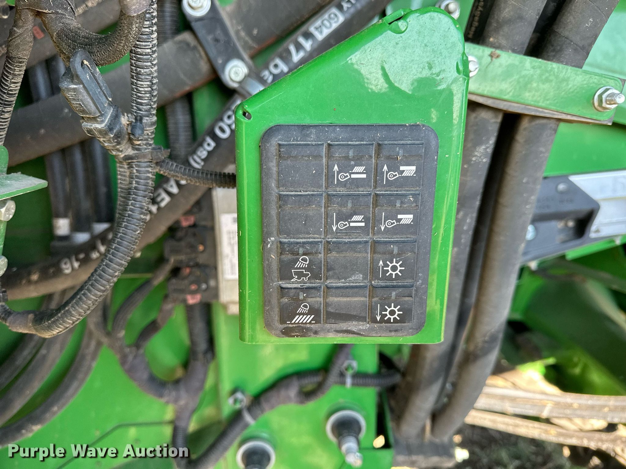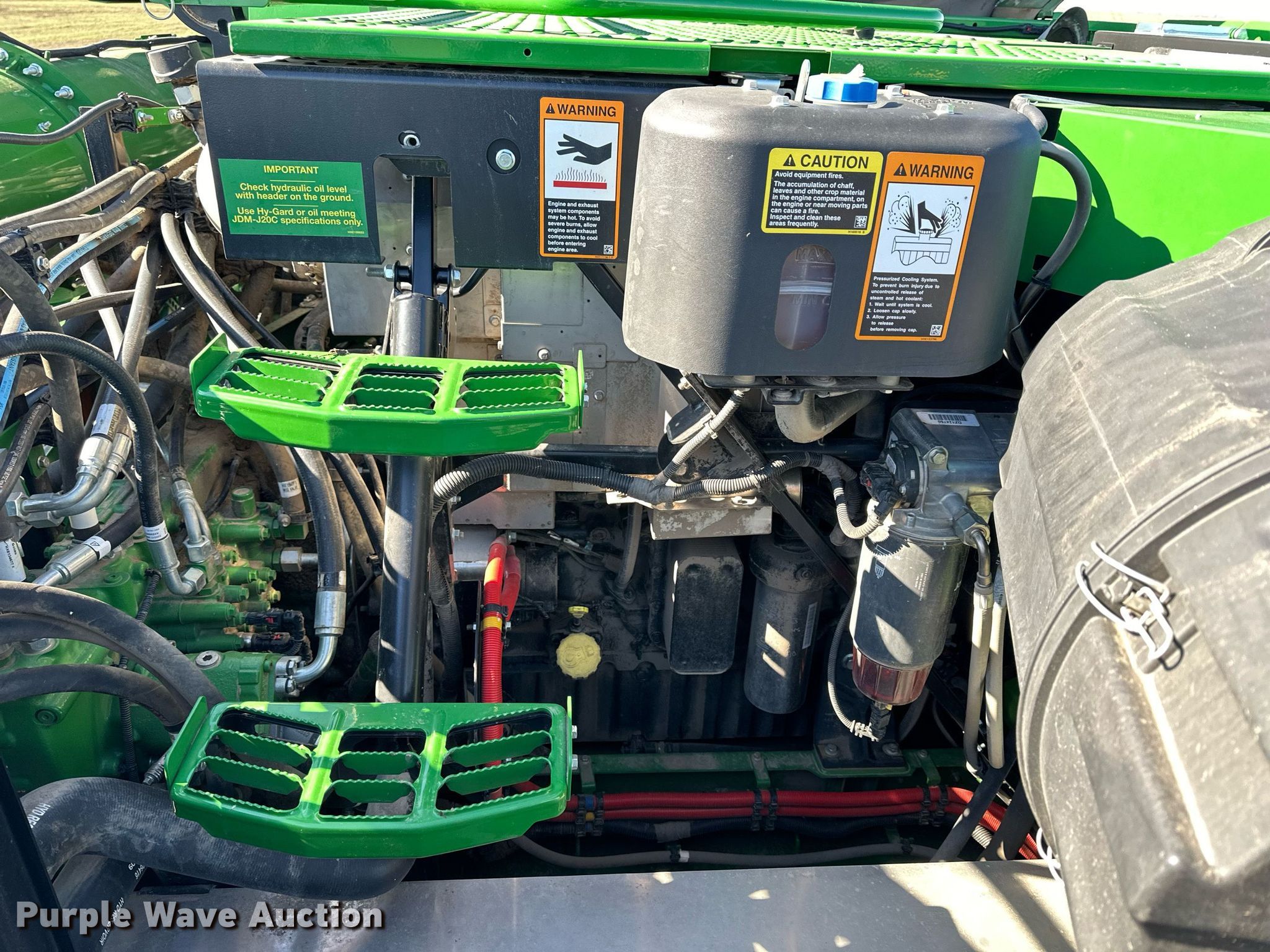 2022 John Deere X9 1100 Signature Edition RWA combine. Engine hours: 202 on meter, Separator hours: 107 on meter, Serial: 1H0X911XPNB820060. Engine John Deere PowerTech, Displacement: 13.6L, Cylinders: 6, Fuel type: Diesel. Transmission ProDrive XL, Hydrostatic. Chassis RWA, Differential lock. Interior AC, Heat, Seat: Heated, Cooled, Massage, GPS receiver John Deere Starfire 6000. Features Combine advisor ActiveVision, Auto maintain, Machine sync, Operator manual, Single point header coupler, Feederhouse: Lateral tilt, Variable speed, Reverser, Concaves: Extended wear round, Chaff spreader, Straw chopper, Power tailboard, Bin: Power folding bin, Extended wear grain handling system, Unloading auger length: 31'. Tires Size 750/65R26. Tracks Width: 36", Rubber. Notes CB radio not included, Engine warranty valid until September 22, 2024 or 2,000 hours, Emissions warranty valid until September 23, 2027 or 3,000 hours, Extended Powertrain warranty valid until September 20, 2028 or 2,500 hours. Pursuant to Kansas law, Purple Wave will not be collecting sales taxes on any of the purchases made in this business liquidation auction.. Ingermanson Farms - Open inspection March 15. 6529 North Solomon Road. Solomon, KS 67480