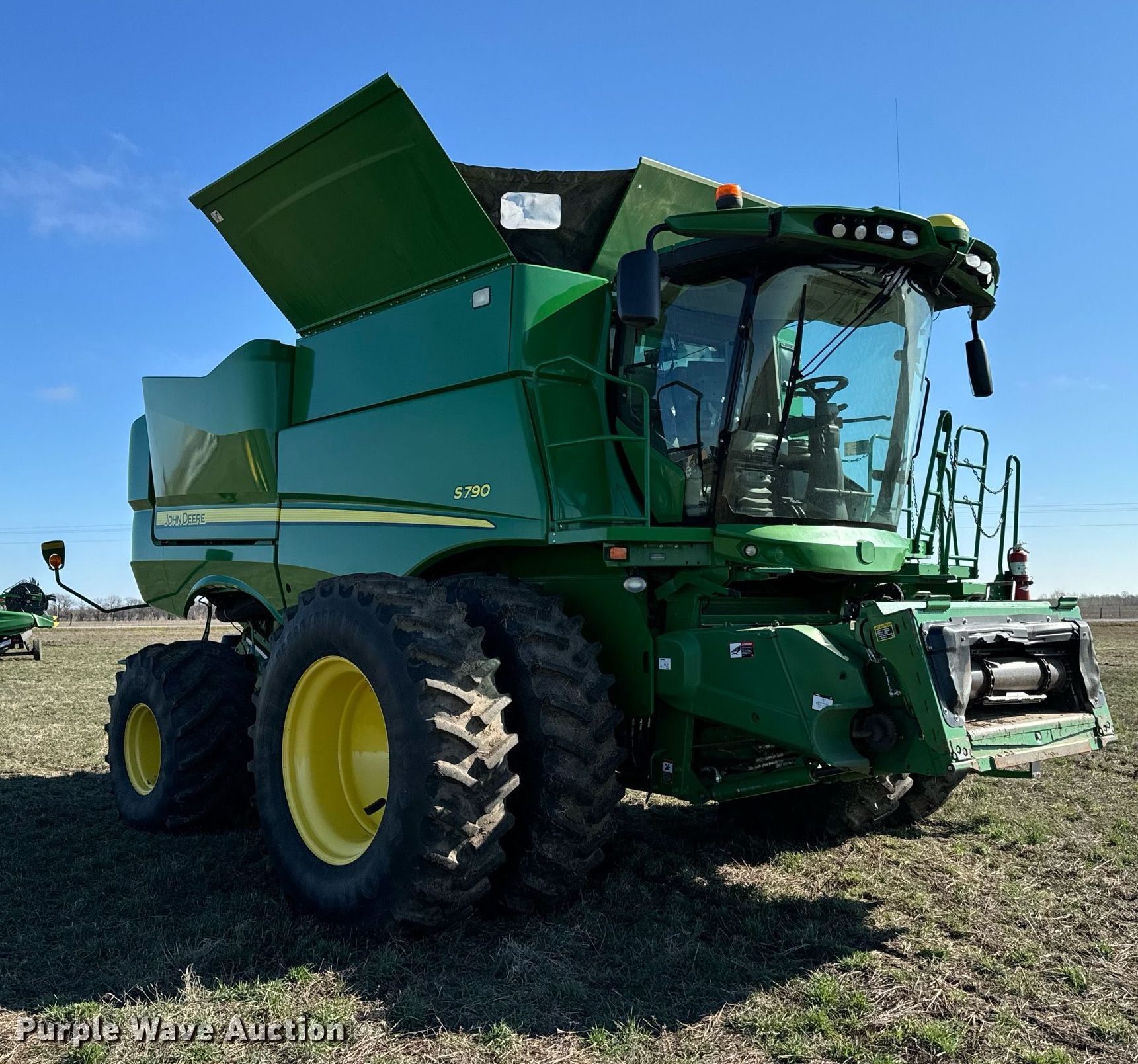 Purple Wave is selling a used Combine in Kansas. This item is a 2018 John Deere S790 combine with the following: Engine hours: 1,431 on meter, Separator hours: 810 on meter, Serial: 1H0S790SCJ0800222