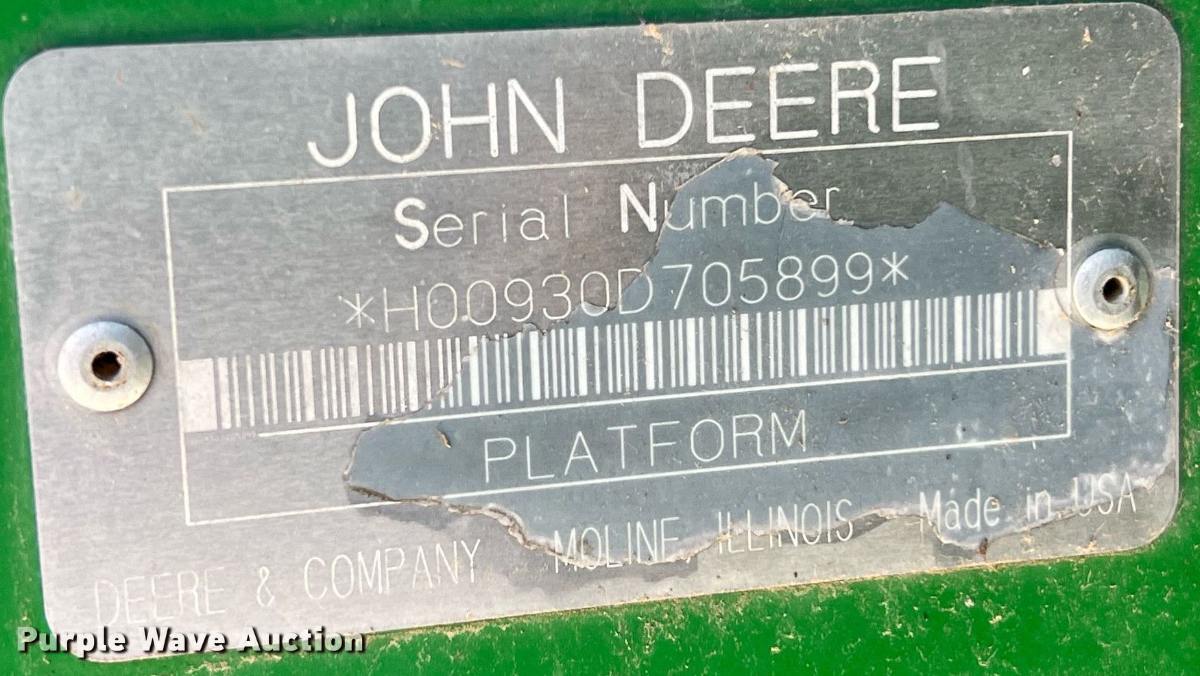 Purple Wave is selling a used Platform or Stripper Head in Texas. This item is a John Deere 930D draper head with the following: Serial: H00930D705899