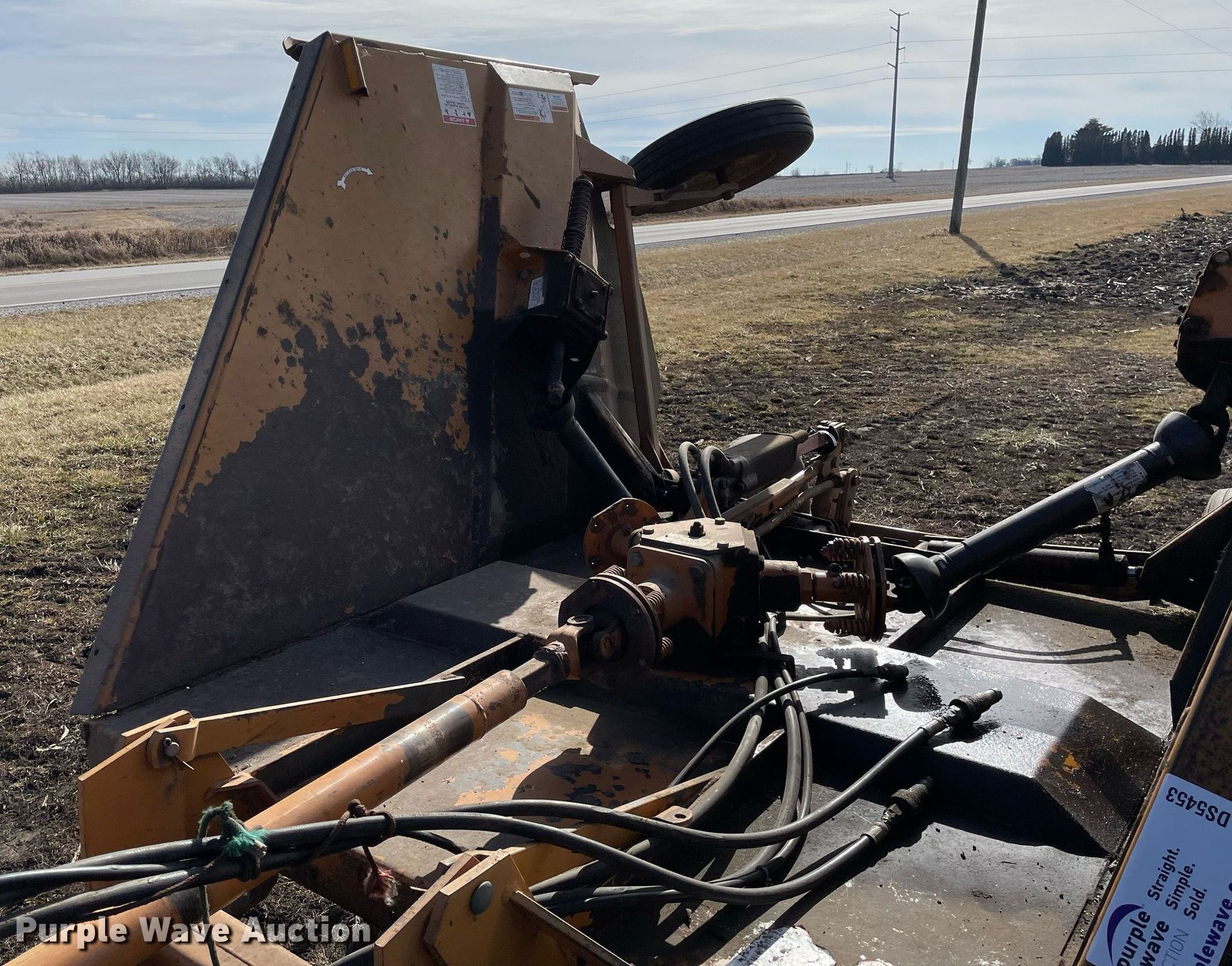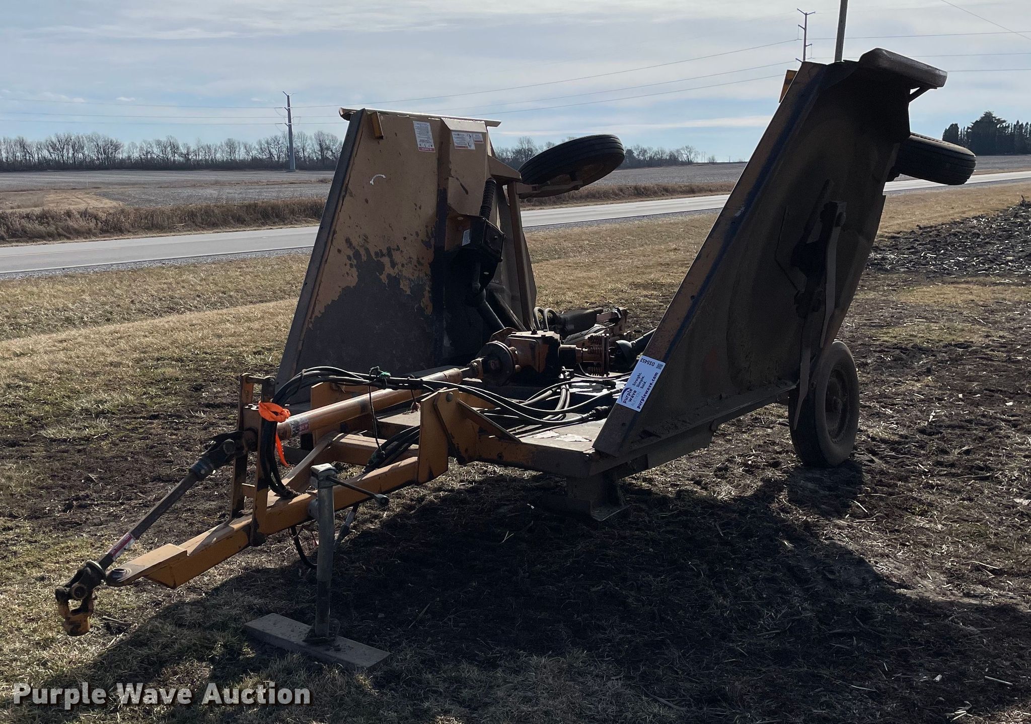 Woods batwing rotary mower. Features. Width: 15', Hydraulic lift, Hydraulic fold, PTO: 1000. Tires Size: 7.60-15. Notes Non-operational right deck, PTO shaft removed but included. Nonman Retirement Auction. Sidney, IL 61877