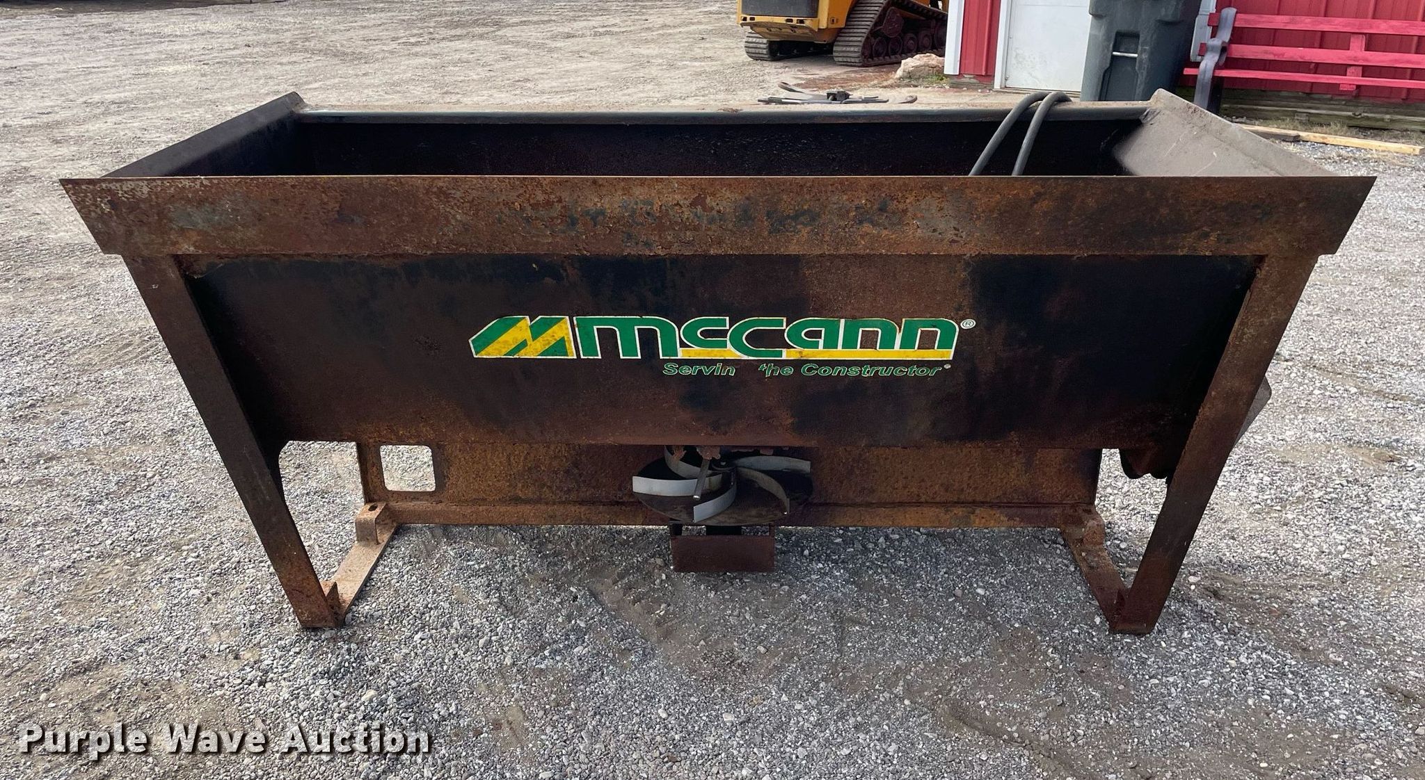 Purple Wave is selling a used Skid Steer Attach. in Illinois. This item is a McCann 74" W skid steer spreader bucket with the following: McCann 74" W skid steer spreader bucket . Nonman Retirement Auction. Sidney, IL 61877