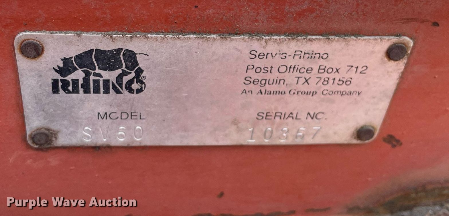 Purple Wave is selling a used Mower, Cutter, Shredder in Illinois. This item is a Rhino 2160 side boom rotary mower with the following: Width: 72", Hydraulic lift, PTO: 1000, Hitch: Three point