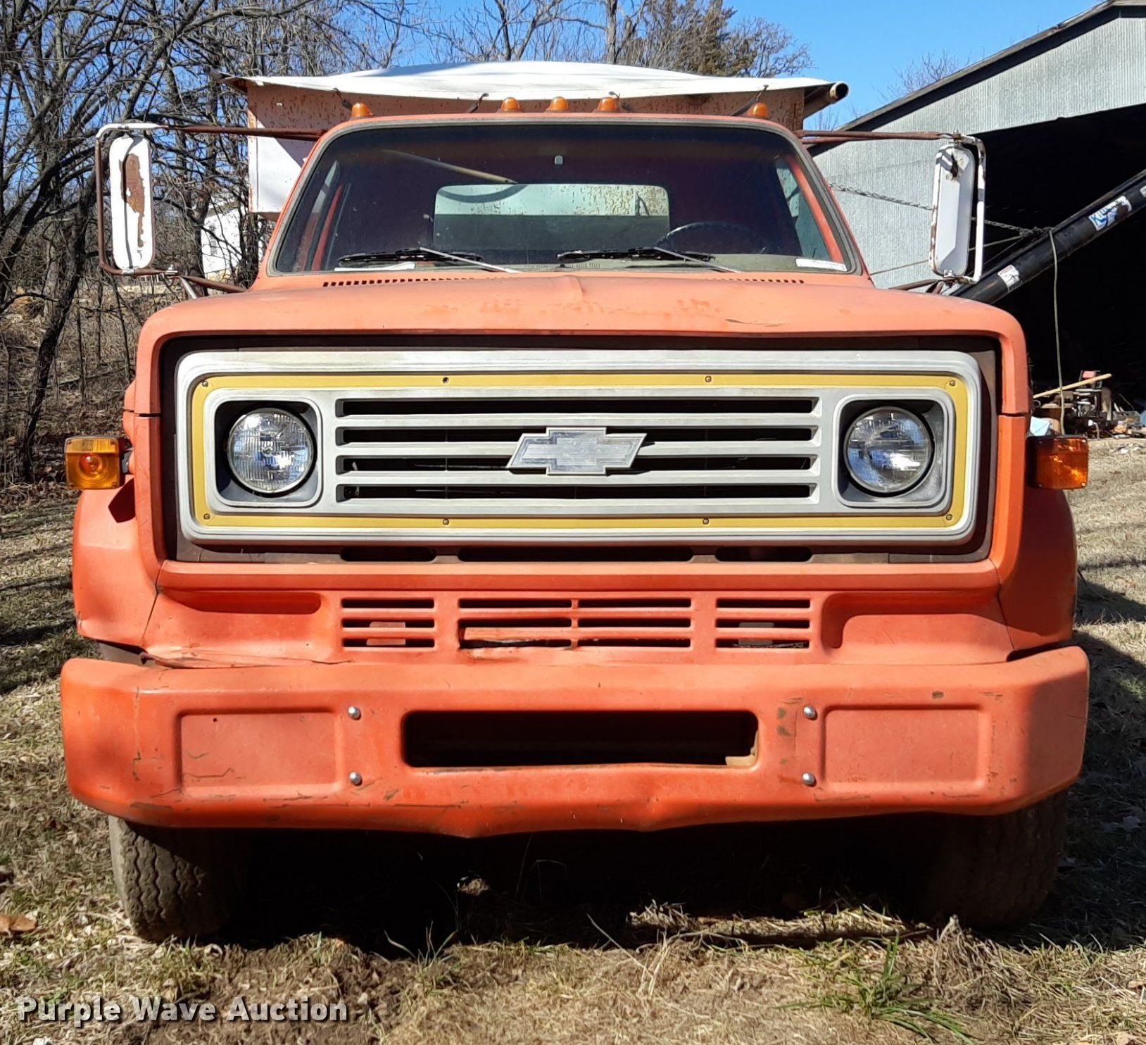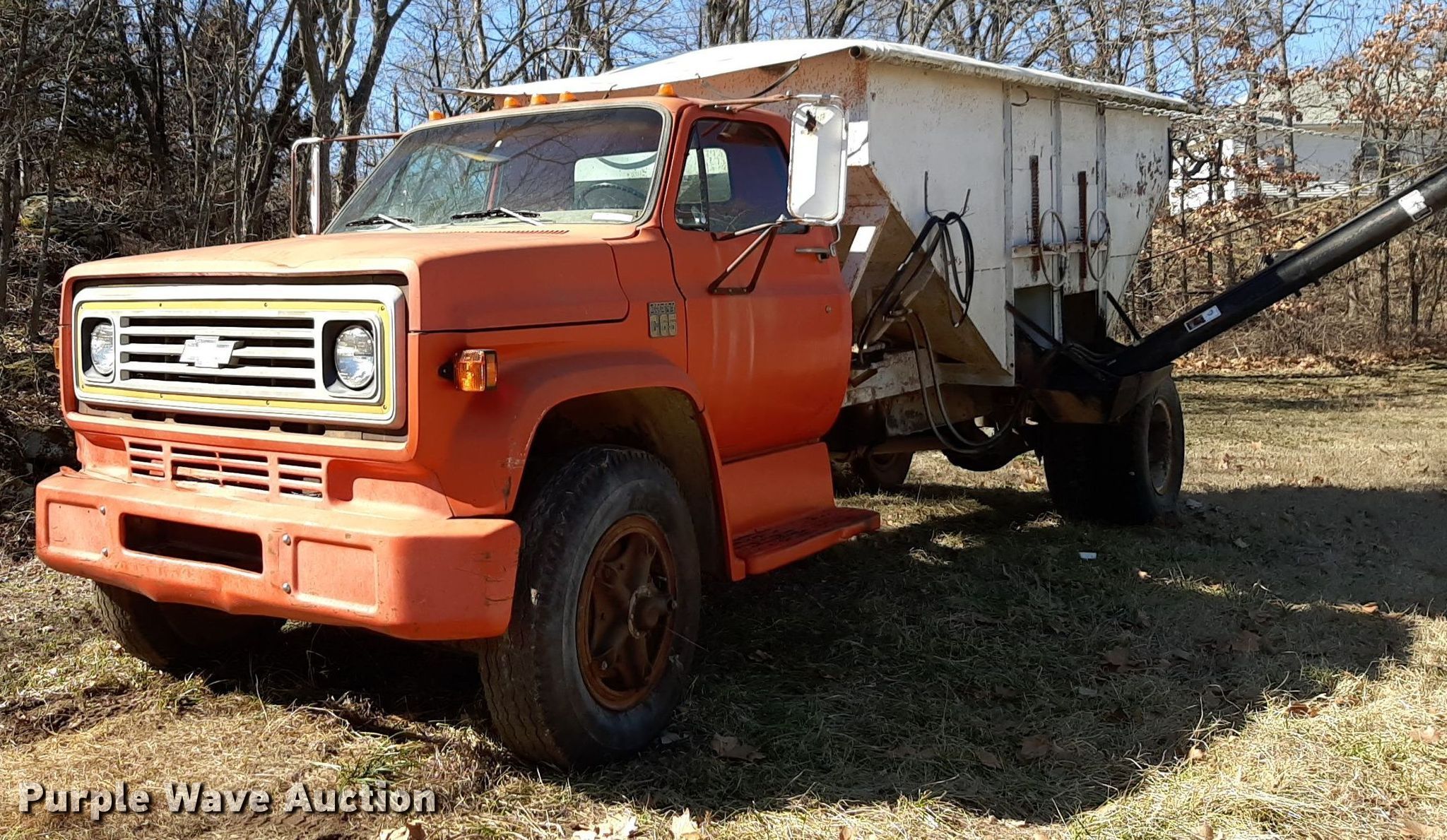 1976 Chevrolet C65 grain truck. Miles: 37,950 on odometer, VIN: CCE676V142377. Engine Cylinders: 8, Fuel type: Gas. Transmission Manual, Speed: 5, plus 2. Chassis Axles: Single, Suspension: Spring, Brakes: Hydraulic, PTO, GVWR: 26,000 lbs FAWR: 9,000 lbs, RAWR: 17,000 lbs. Interior Heat. Features Dump bed 14' L x 72" W, Side height: 60", Bed type: Steel, Gravity box Bushel capacity: 250, (2) bins, Auger: 4", Length:12'. Tires Size: 9.00-20. Kansas title. Title distribution may be delayed up to 14 days from verification of funds. Ecton Farms. Fall River, KS 67047