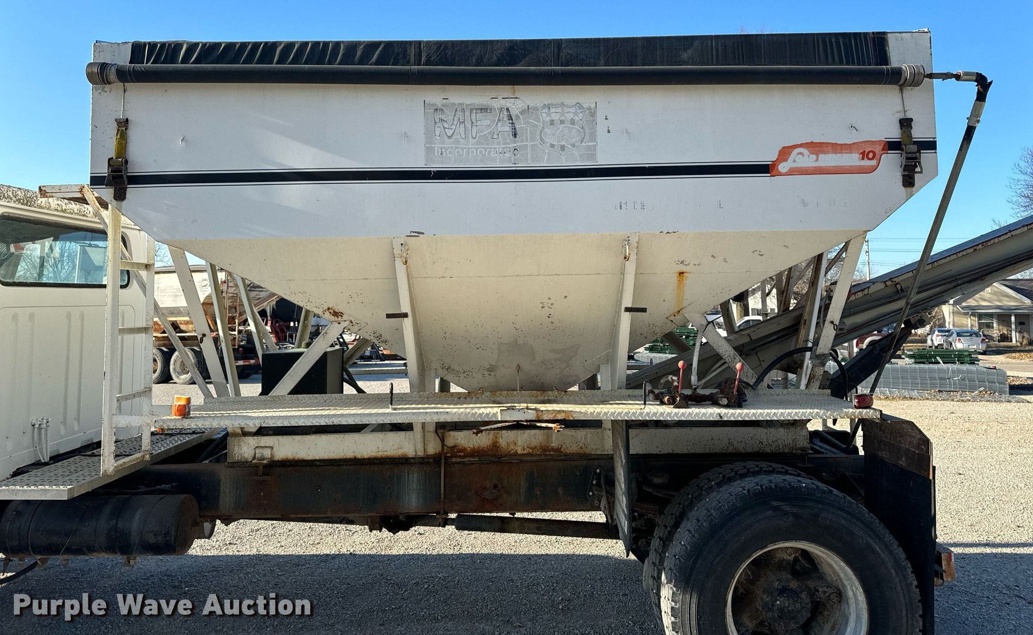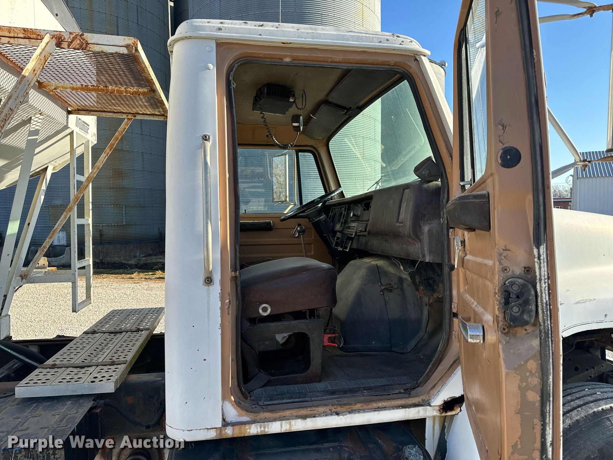 1986 International 1954 feed delivery truck. Miles: 301,817 on odometer, VIN: 1HTLDUXN3GHA33599. Engine Cylinders: 6, Fuel type: Diesel. Transmission Manual, Speed: 7. Chassis Axles: Single, Suspension: Spring, Brakes: Air, PTO, Wet kit. Interior Heat. Features Delivery bed Willmar Load Runner 10, Length:12', Compartments: 2, Discharge auger Diameter: 8", Length: 18', Rear, Tarp, Ground controls. Tires Size: 11R22.5. Notes Discharge belt needs replaced. Missouri title. Title distribution may be delayed up to 30 days from verification of funds. MFA Ag Inc. 226 North Walker Street. Montgomery City, MO 63361