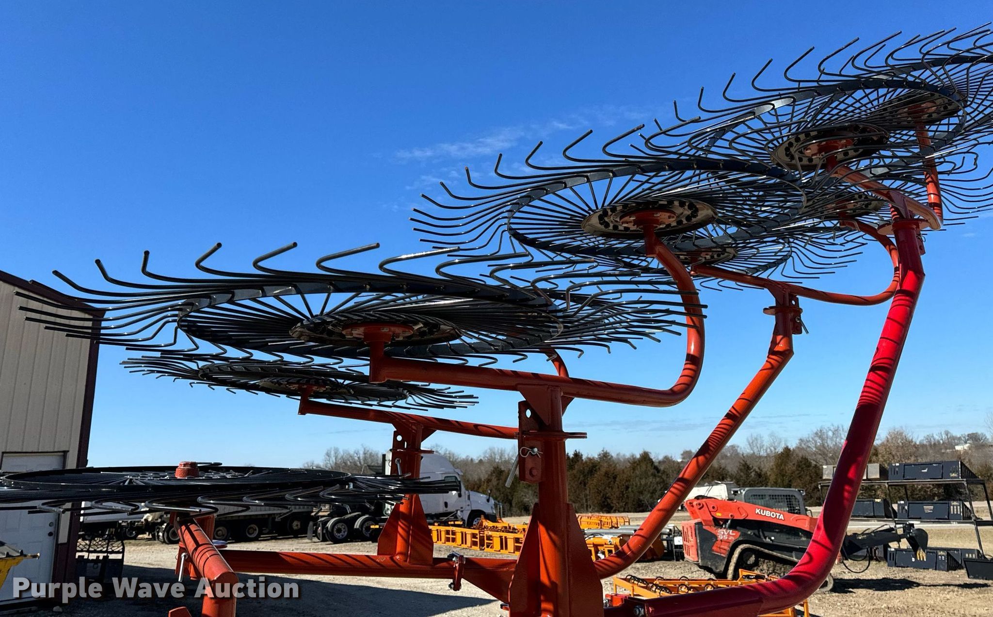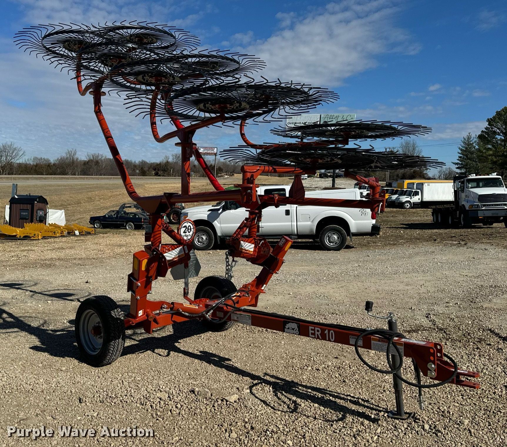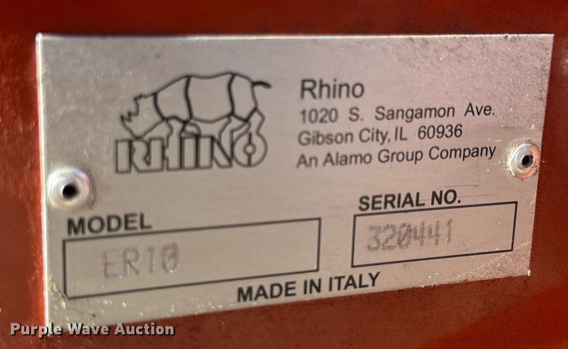 Purple Wave is selling a used Hay Rake in Missouri. This item is a Rhino ER10 hay rake with the following: Serial: 320441
