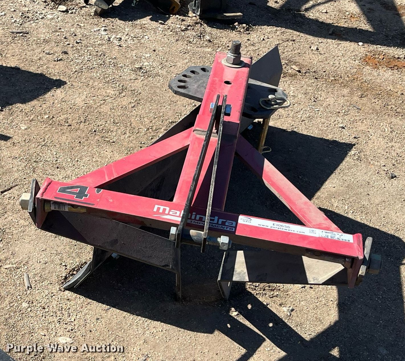 Purple Wave is selling a used Ag Equip. Other in Texas. This item is a Mahindra 4' W blade with the following: Hitch: Three point