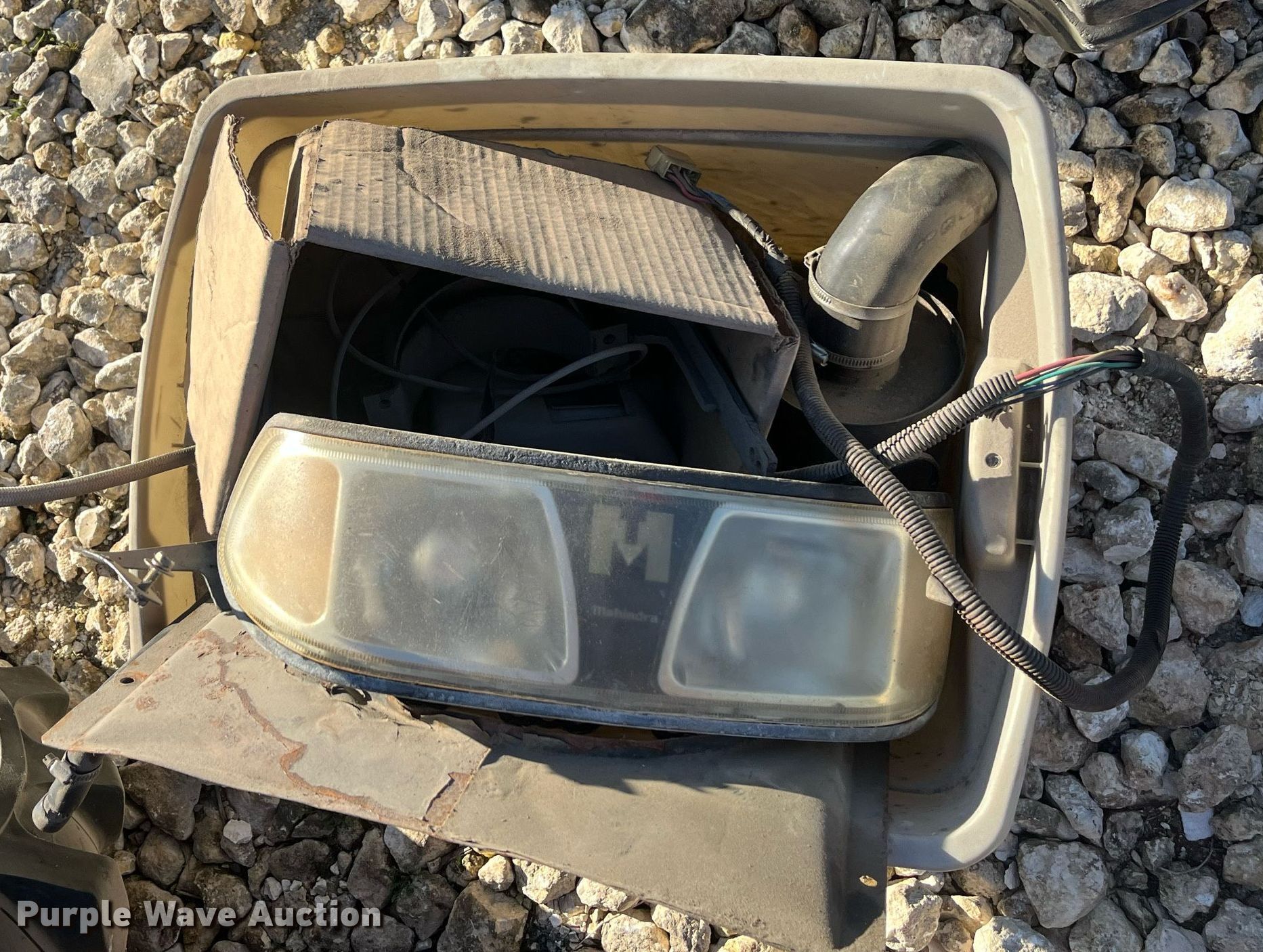 Mahindra FS2542AUSIT MFWD tractor. Hours: Unknown, Serial: MH2132. Engine Cylinders: 3, Fuel type: Diesel. Transmission Manual, 8F - 2R, Differential lock. Features PTO: 540, Three point, Hydraulic remote sets, Loader Ml25, Controls: Joystick, Bucket Width: 61".. Tires Front: 27x8.5-15, Rear: 12.5/80-18. Notes Engine disassembled , Headlights removed but included, Parts may be missing, Non-operational unit. North Texas Equipment. 800 Burlington Road. Saginaw, TX 76179