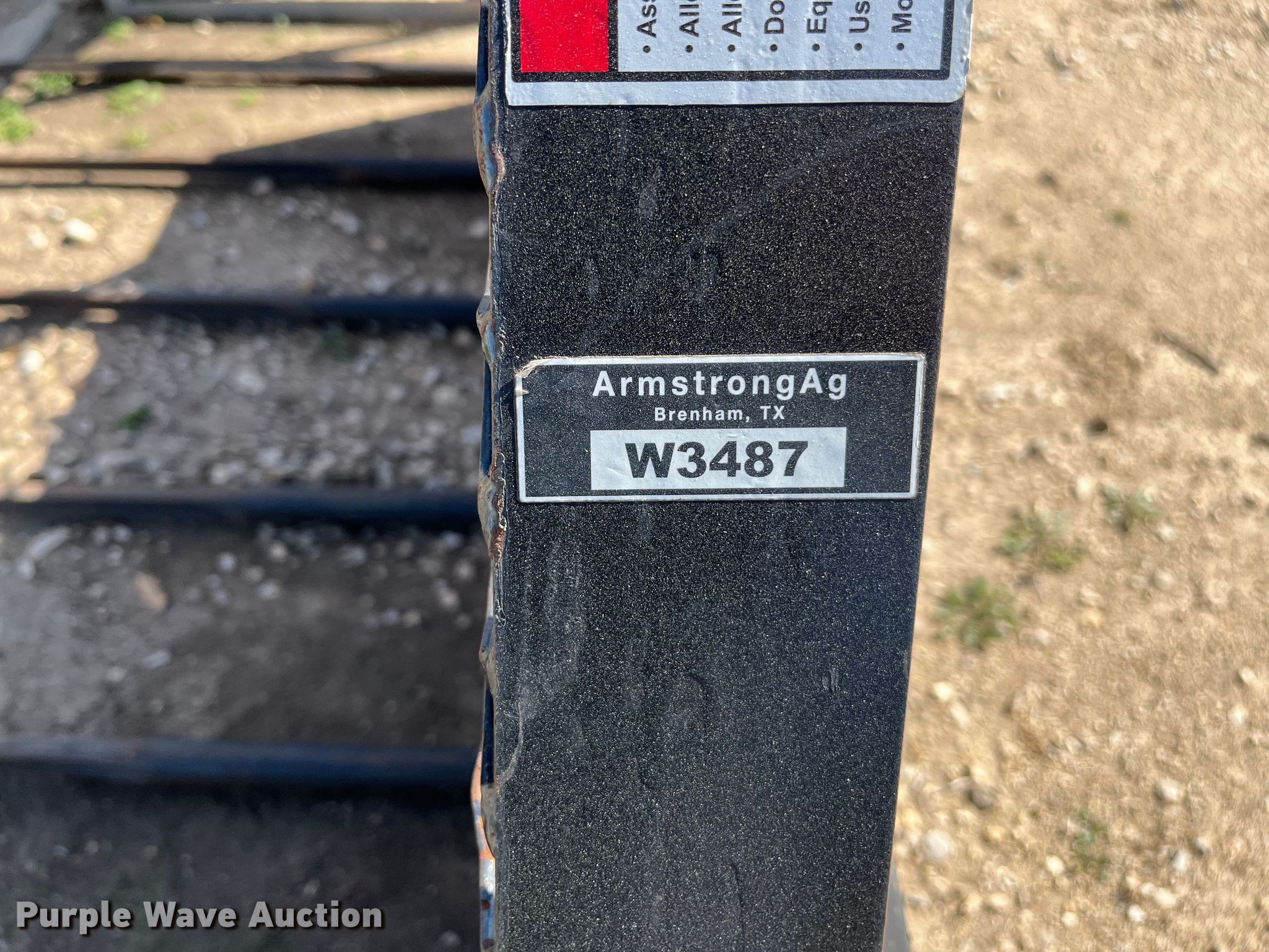 Purple Wave is selling a used Skid Steer Attach. in Texas. This item is a Armstrong Ag skid steer bale spear with the following: Serial: W3487, Width: 72"