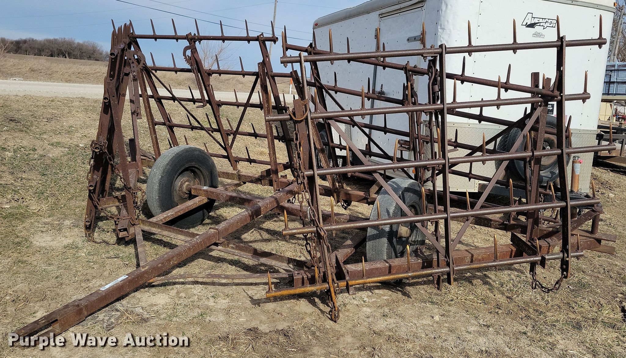 Purple Wave is selling a used Tillage Other in Iowa. This item is a Spike tooth drag harrow with the following: Overall width: 25', Leveler: Manual