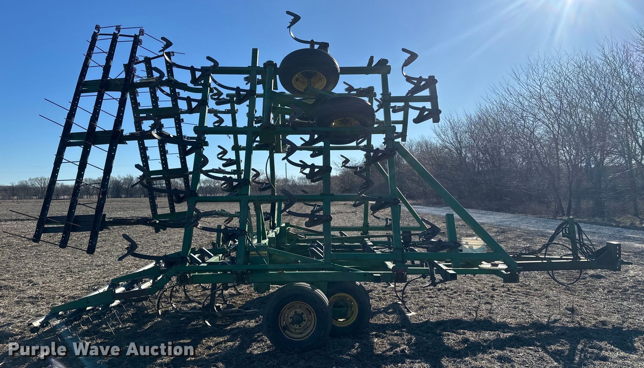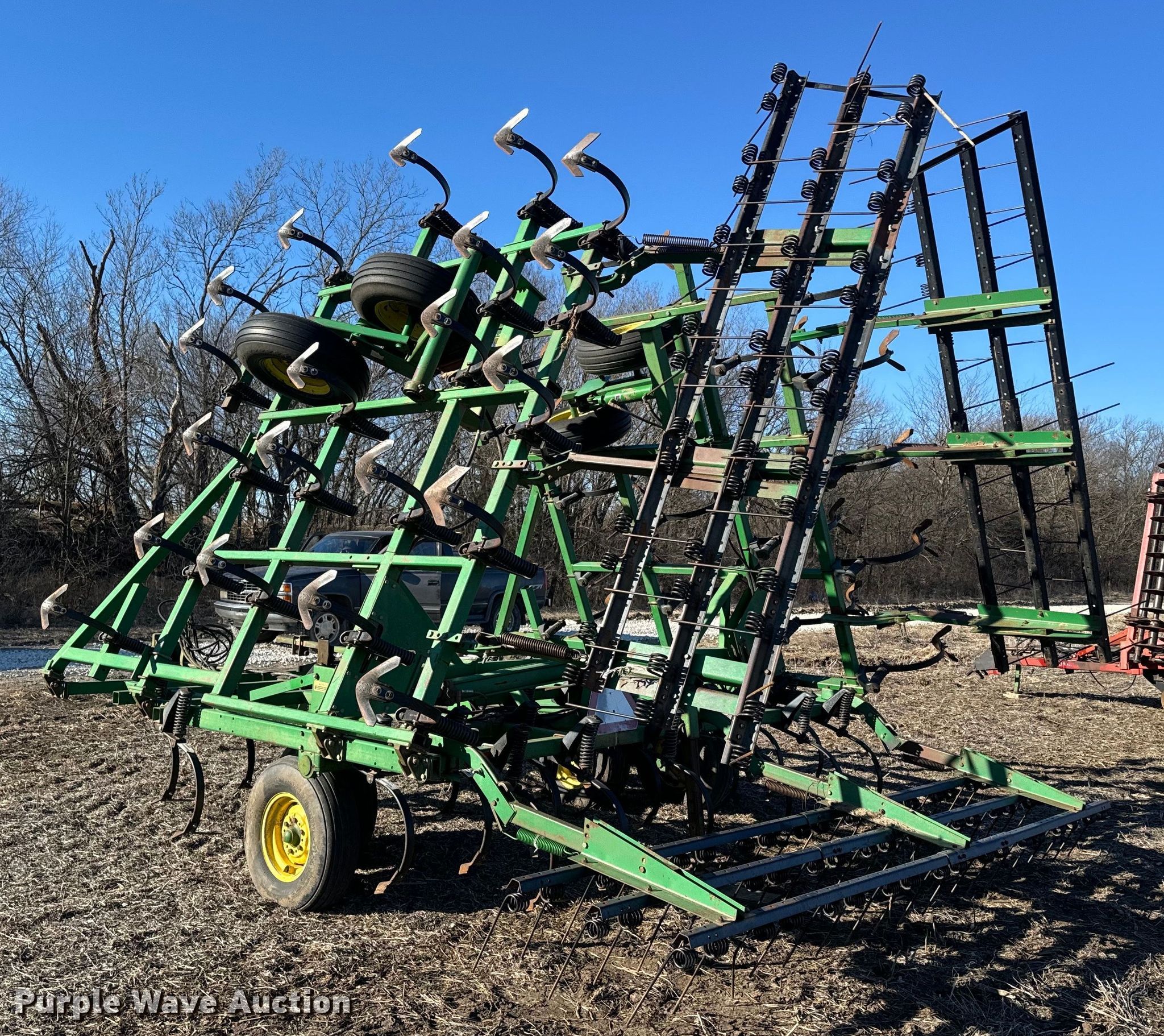 Purple Wave is selling a used Field Cultivator or Sweep Plow in Kansas. This item is a John Deere field cultivator with the following: Overall width: 32'