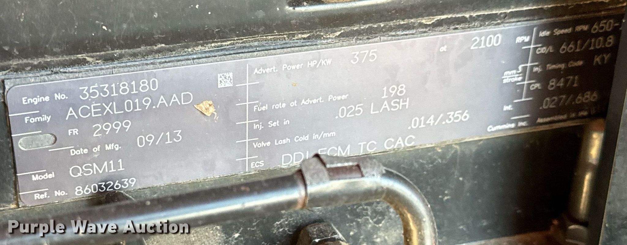 2014 Versatile 2375 tractor. Hours: 4,114 on meter, Serial: 335436. Engine Cummins QSM11, Serial: 35318180, Displacement: 10.8L, Cylinders: 6, Fuel type: Diesel, HP: 375. Transmission Powershift, 12F - 4R. Operators station AC, Heat. Features Seven pin outlet, Hydraulic remote sets Rear: 4, Suitcase weights: 102. Tires Size: 710/70R38, Duals. Rozel, KS 67574