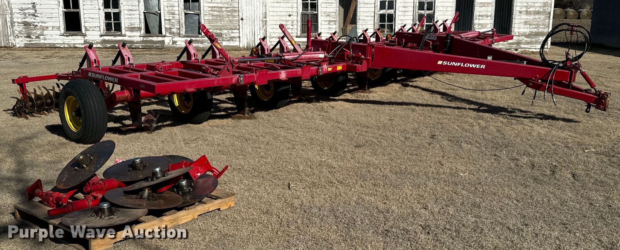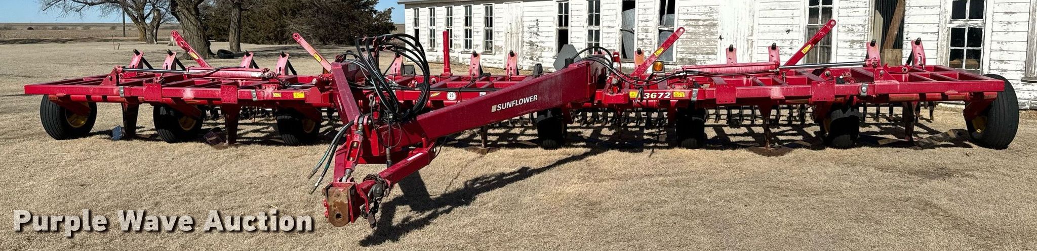 Purple Wave is selling a used Field Cultivator or Sweep Plow in Kansas. This item is a Sunflower 3672-35 sweep plow with the following: Overall width: 35', Serial: AGCS367200CZ300007