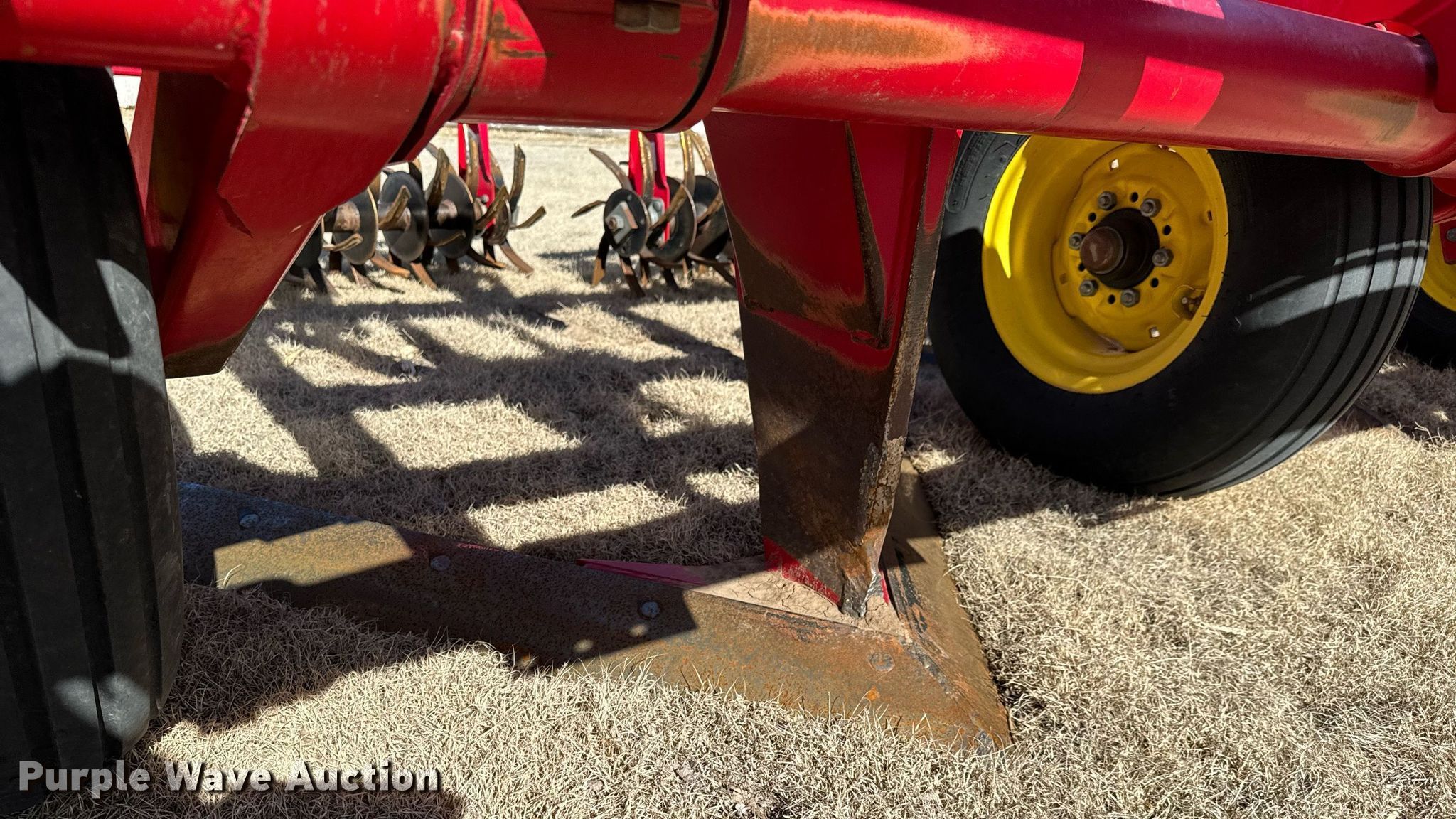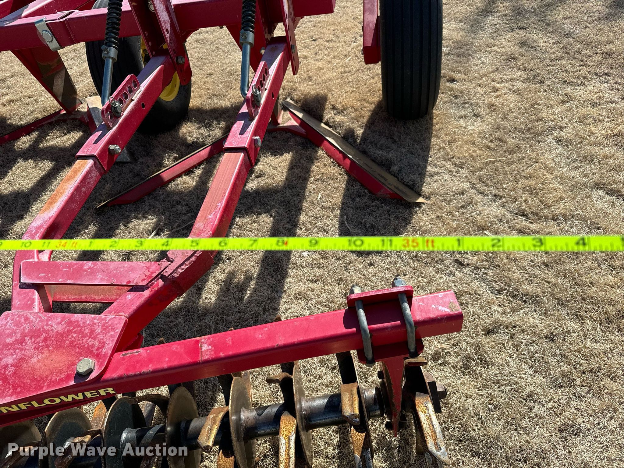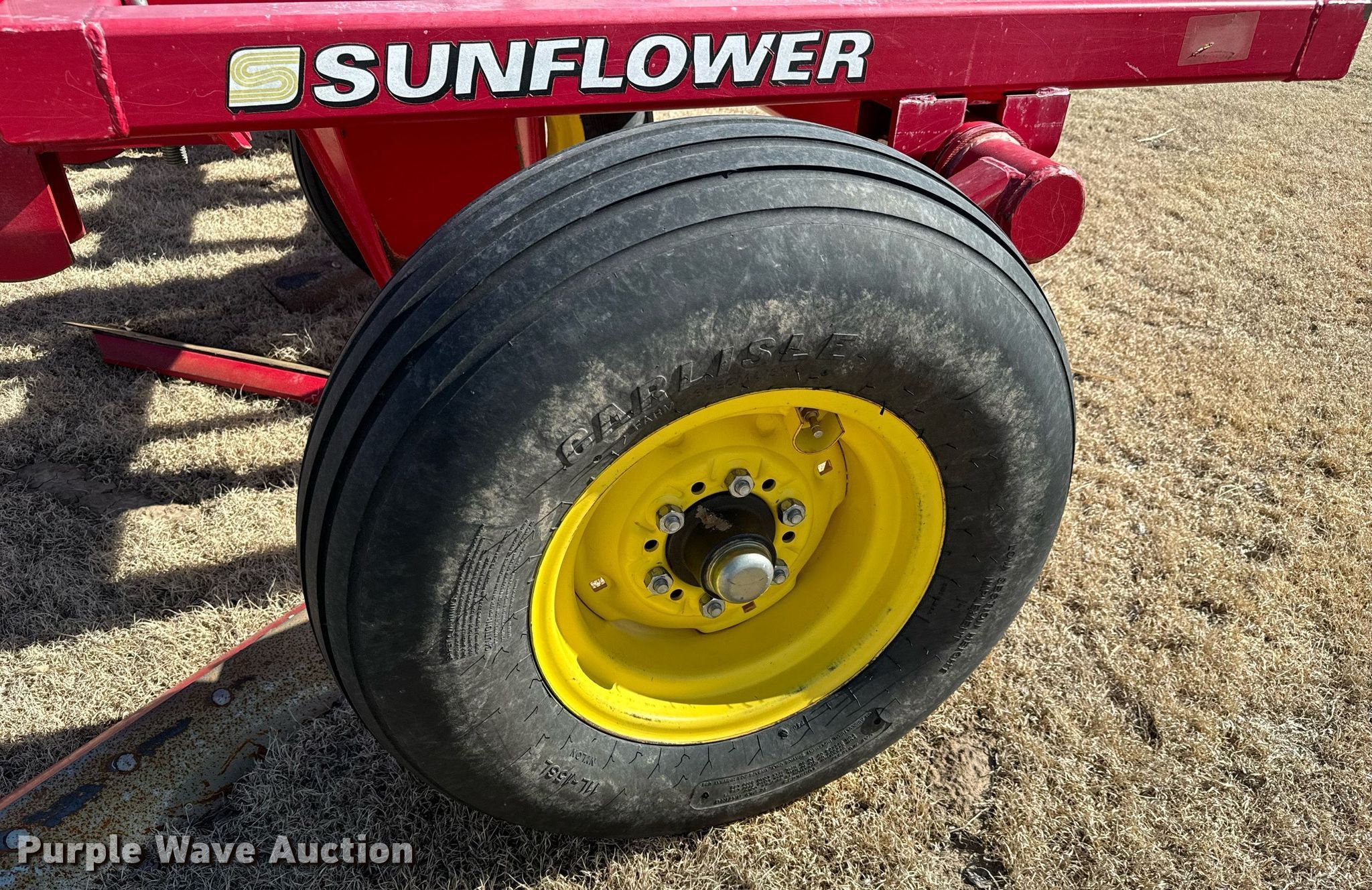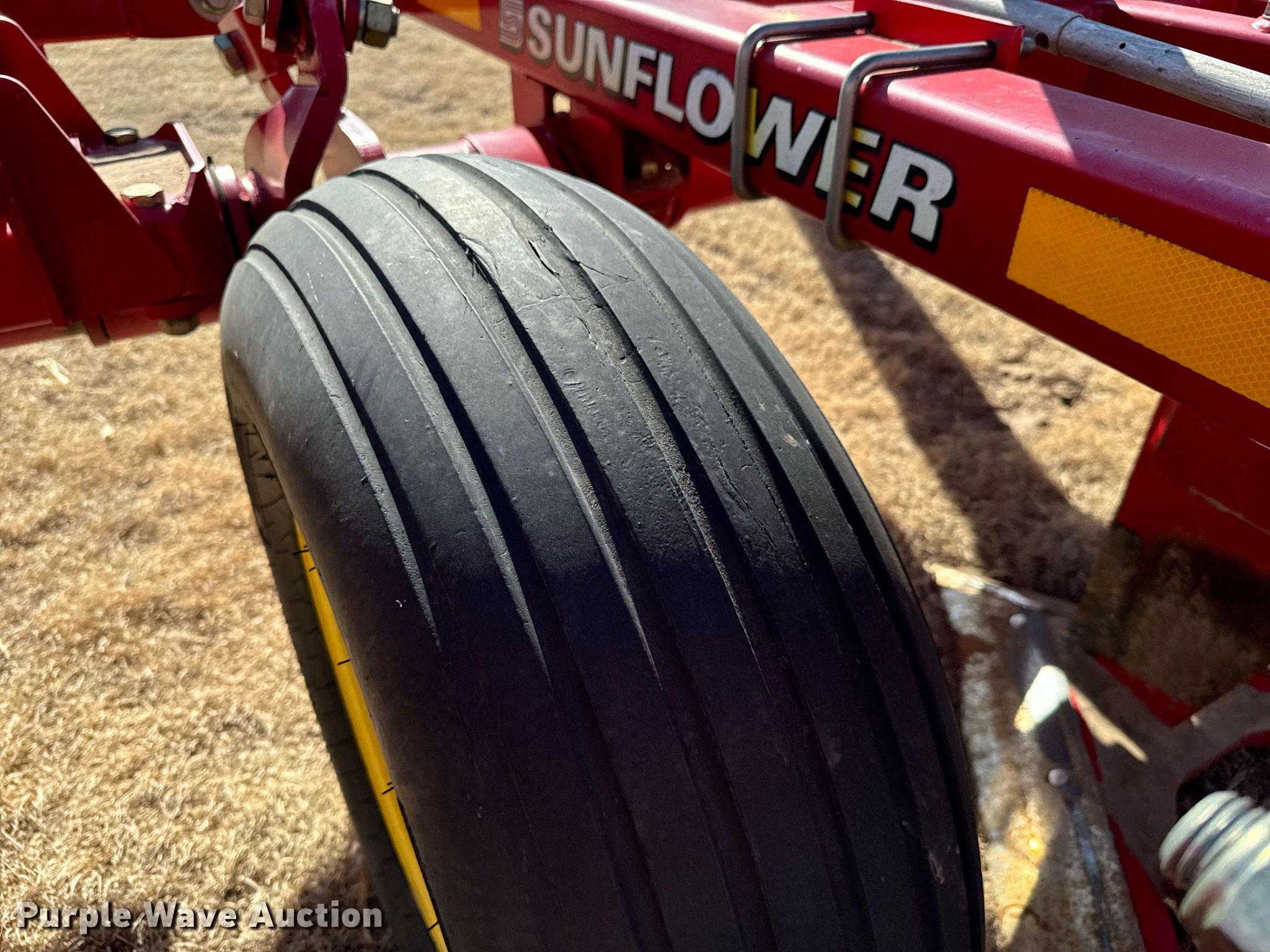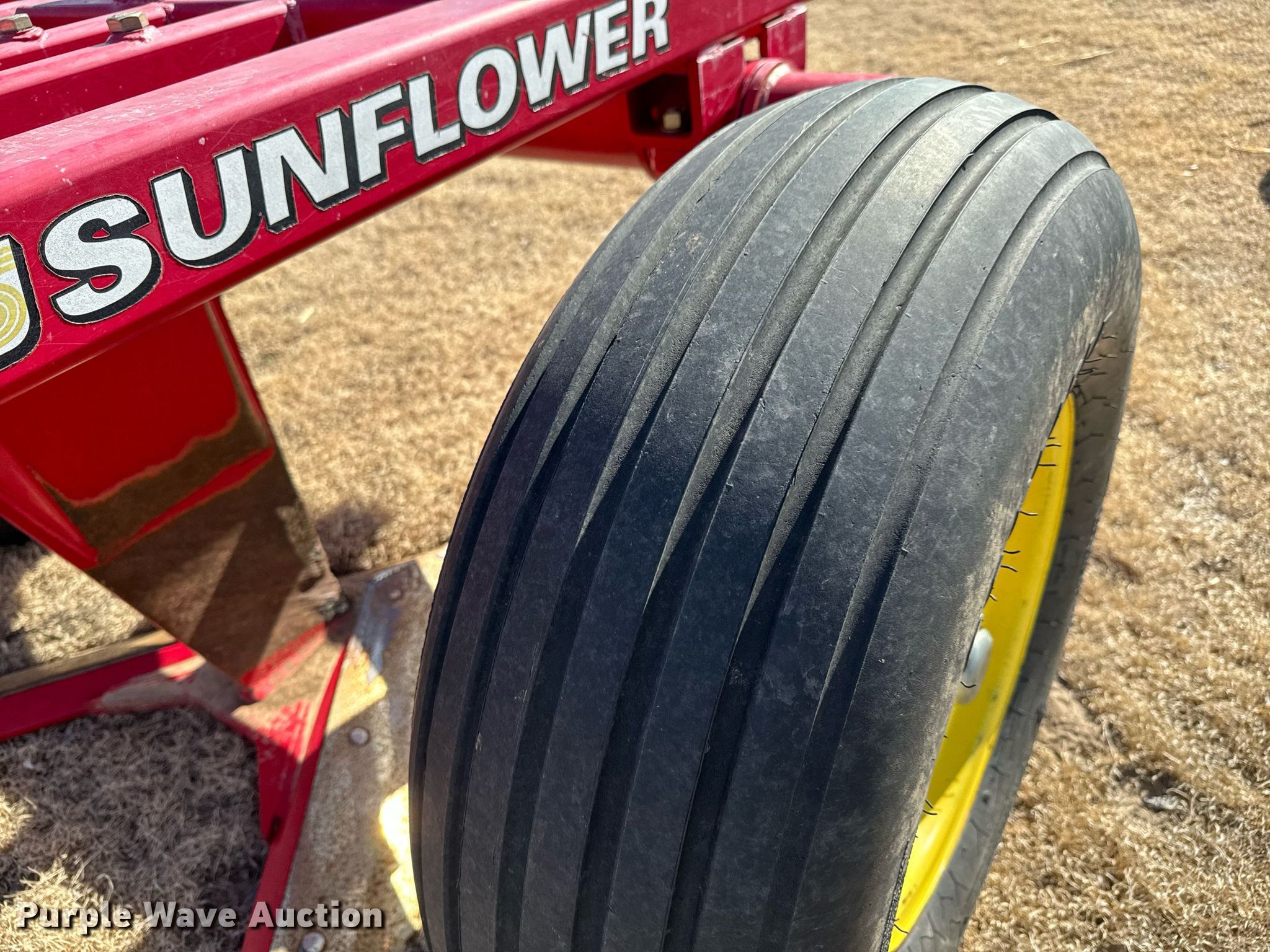 Sunflower 3672-35 sweep plow. Overall width: 35', Serial: AGCS367200CZ300007. Features Sweep width (4) 5' 6", (3) 5', Operation Hydraulic lift, Hydraulic fold, Attachments Rolling pickers/ treader, Transport lights. Tires Tire size: 11-15SL. Rozel, KS 67574