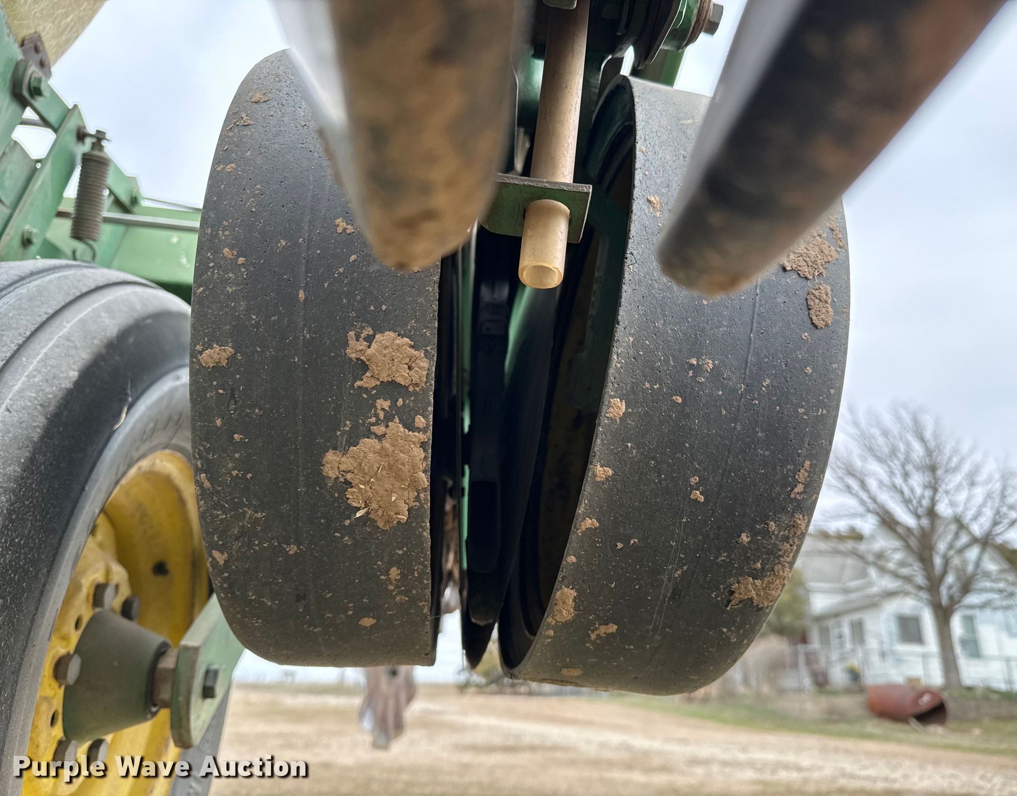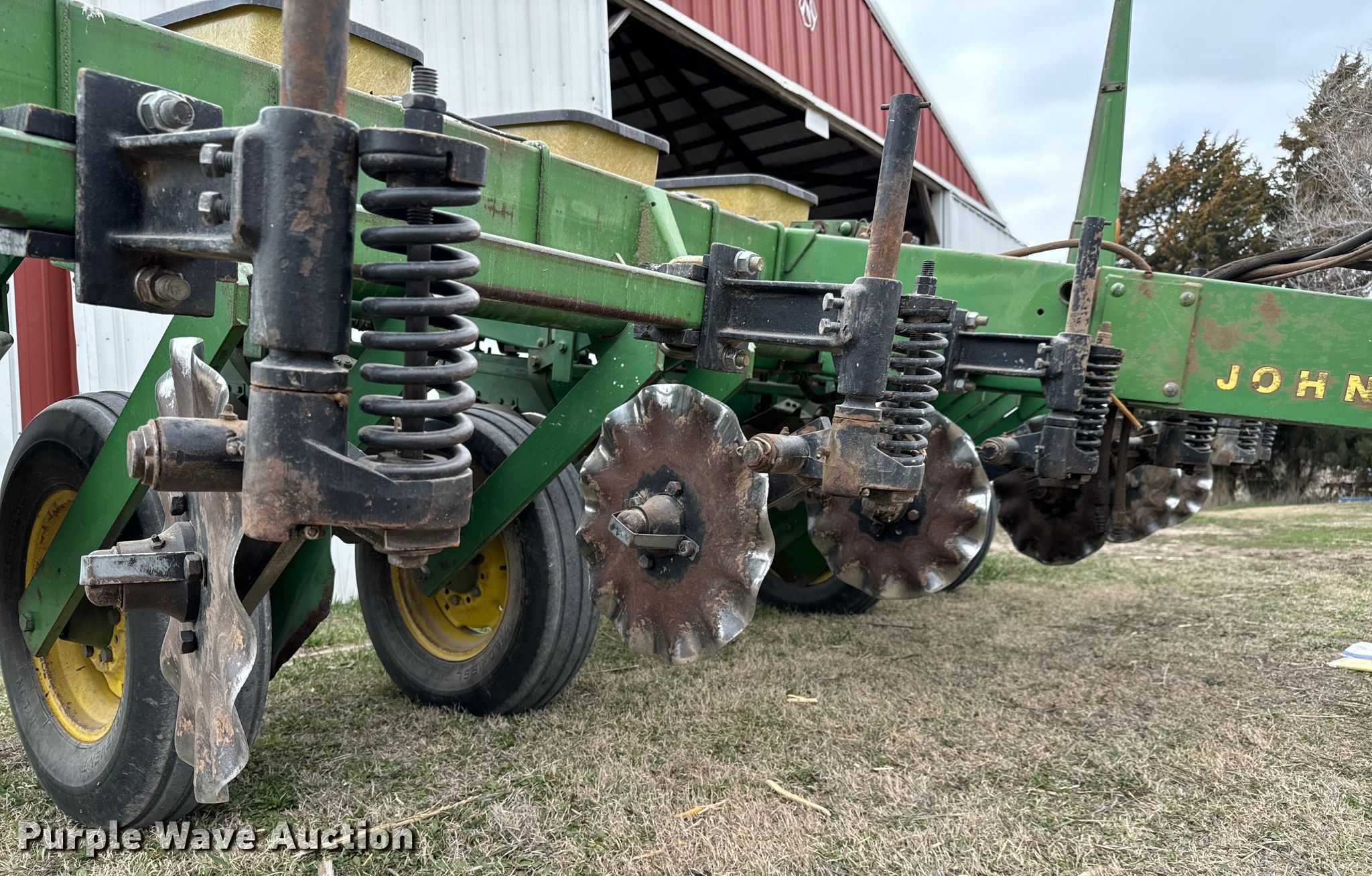 John Deere 7000 planter. Row units: 6, Row spacing: 30", Serial: A07000A013006. Features Frame Marker arm, Seed delivery Individual seed hoppers, Row units Meter drive: Ground, Down pressure: Spring, No-till coulters, Disk openers: Double, Gauge wheels: Double, Closing system: Double Type: Rubber, Fertilizer/ insecticide Fertilizer, Insecticide boxes, Electronics Monitor John Deere Computer Trak 100.. Tires Transport tire size: 7.60-15 Quantity: 4. David Mauch Farms. Lindsborg, KS 67456