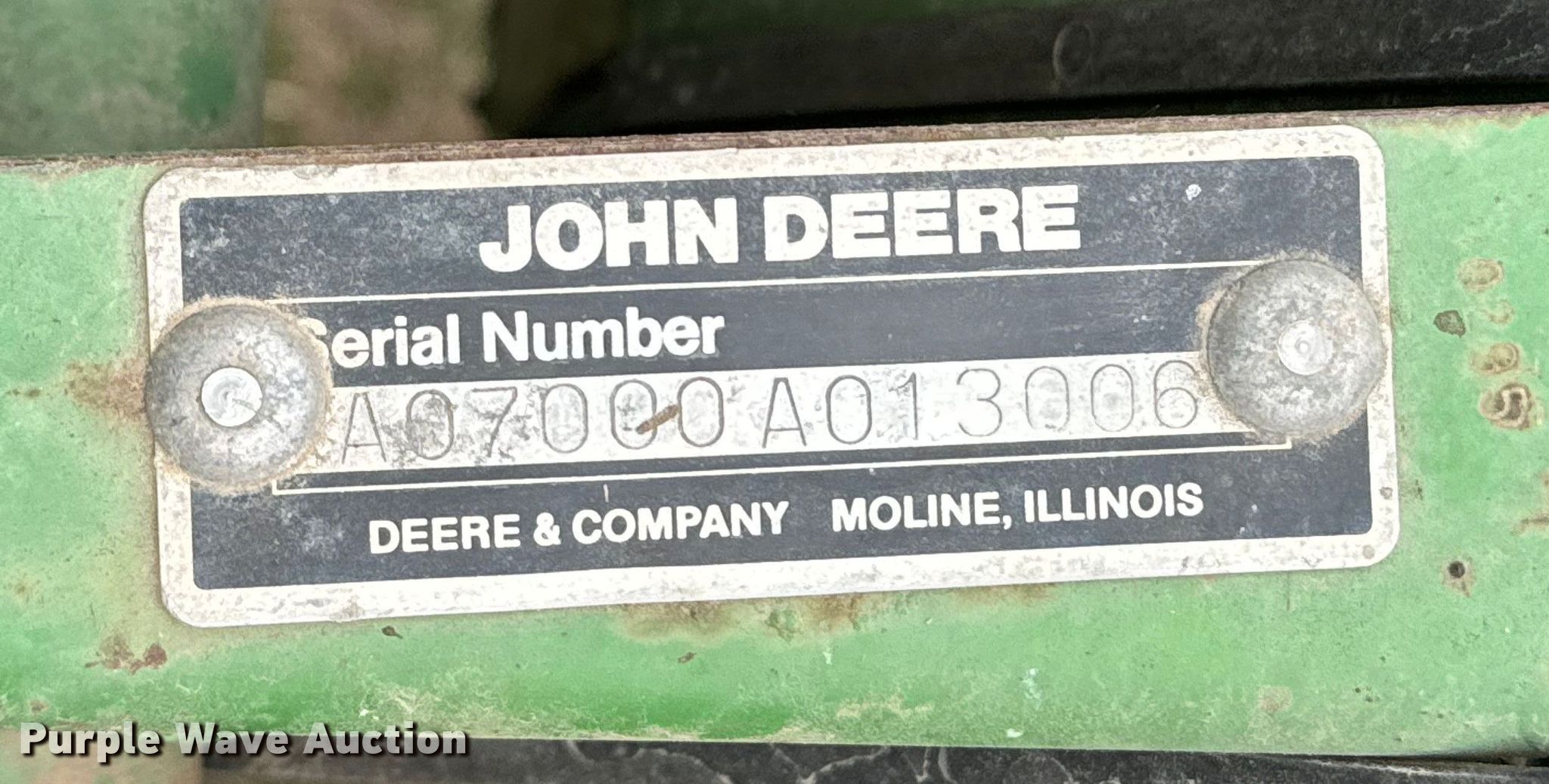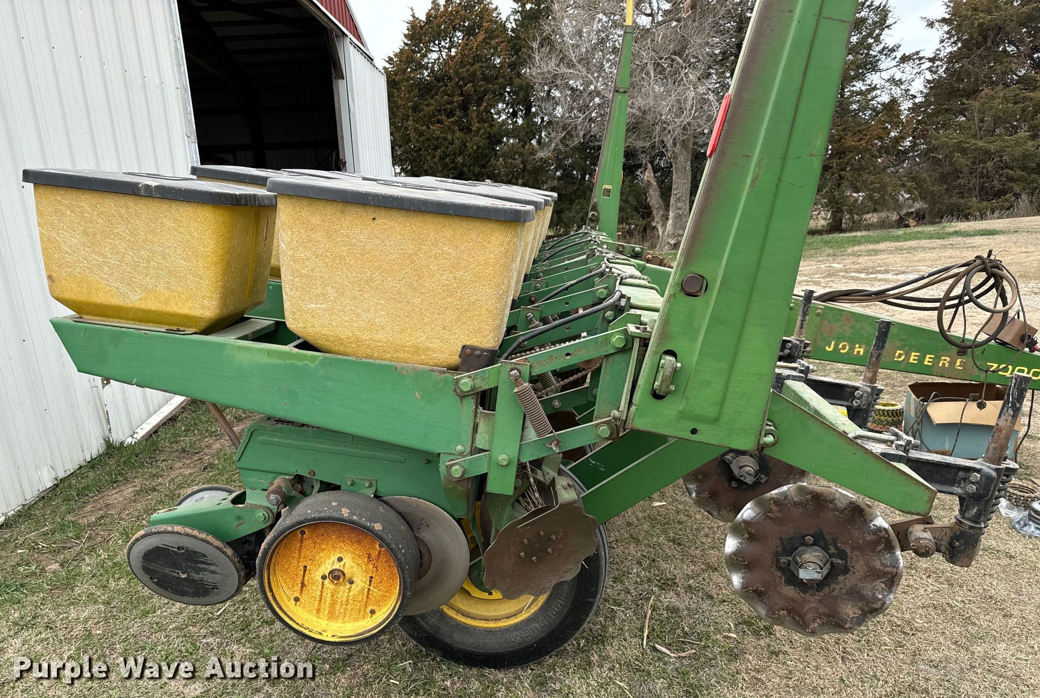 Purple Wave is selling a used Planter in Kansas. This item is a John Deere 7000 planter with the following: Row units: 6, Row spacing: 30", Serial: A07000A013006