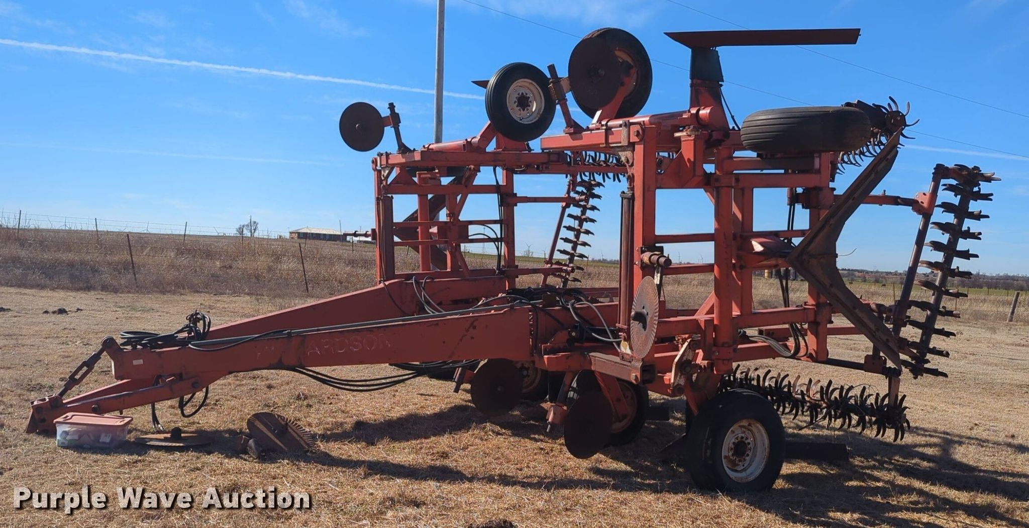 Purple Wave is selling a used Field Cultivator or Sweep Plow in Oklahoma. This item is a Richardson sweep plow with the following: Overall width: 35', Serial: 7563