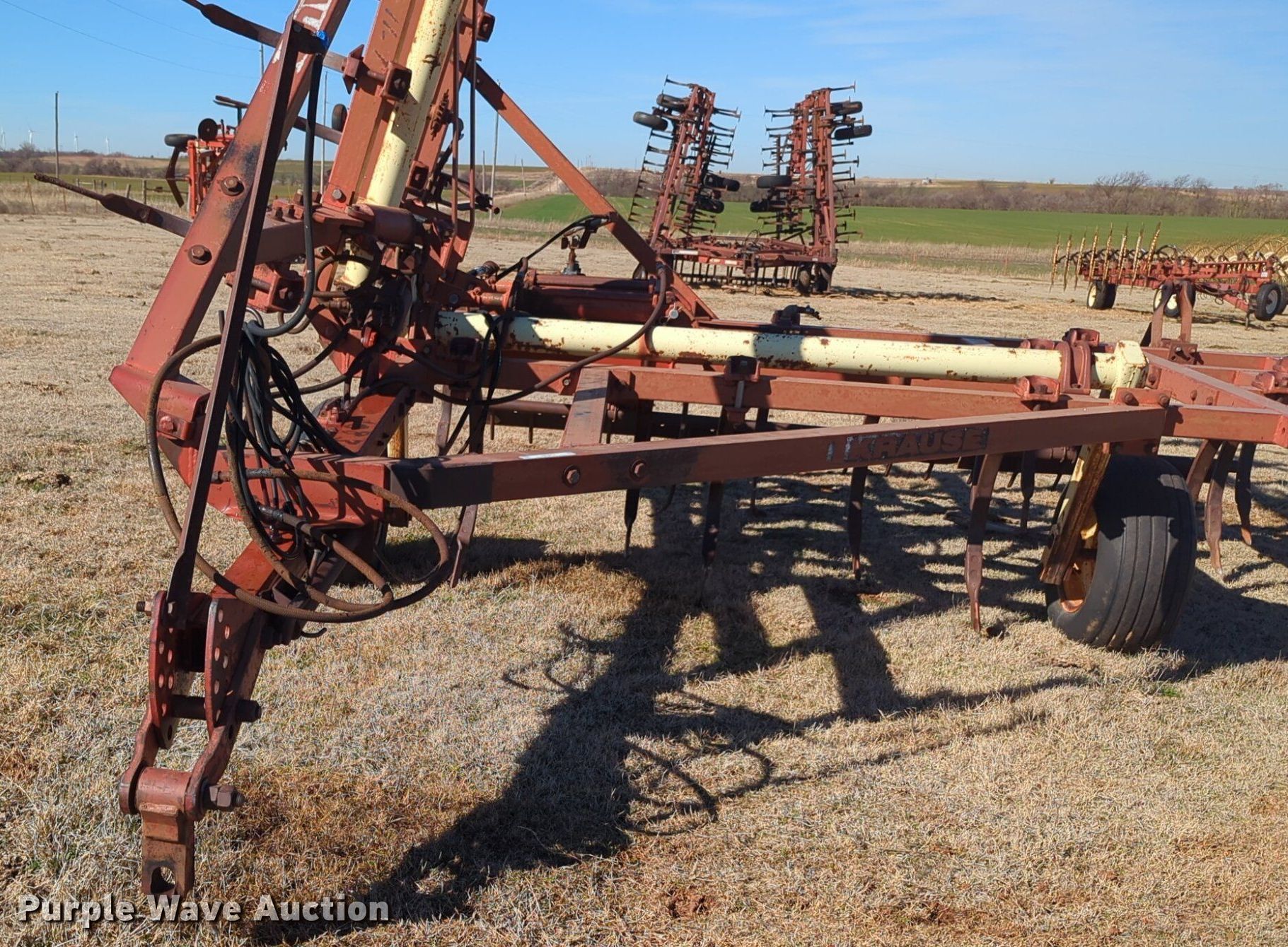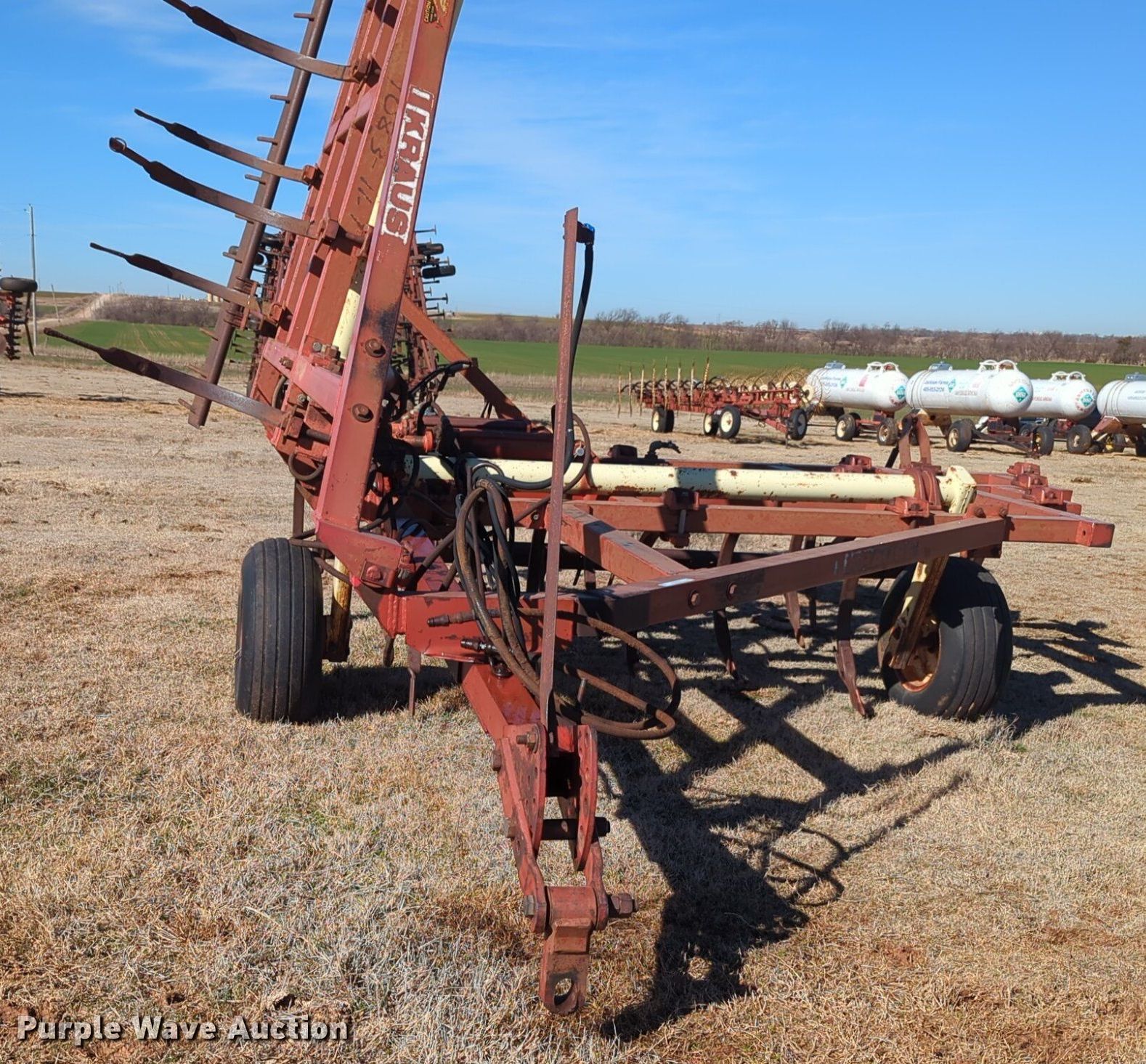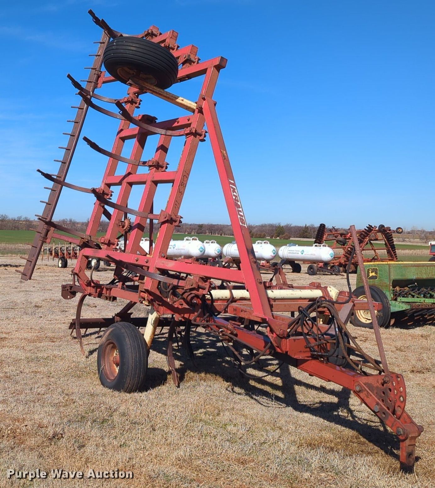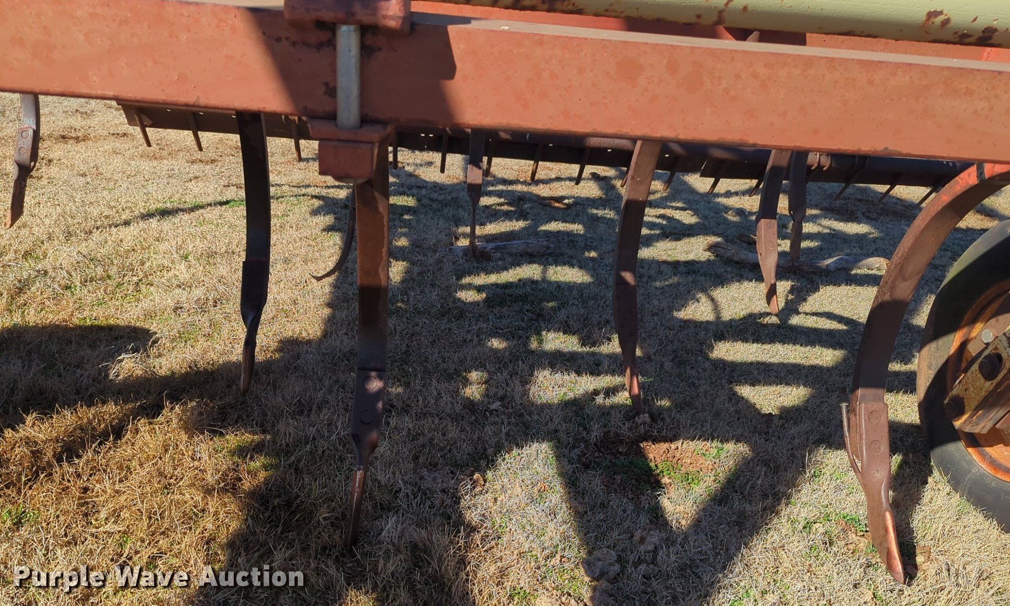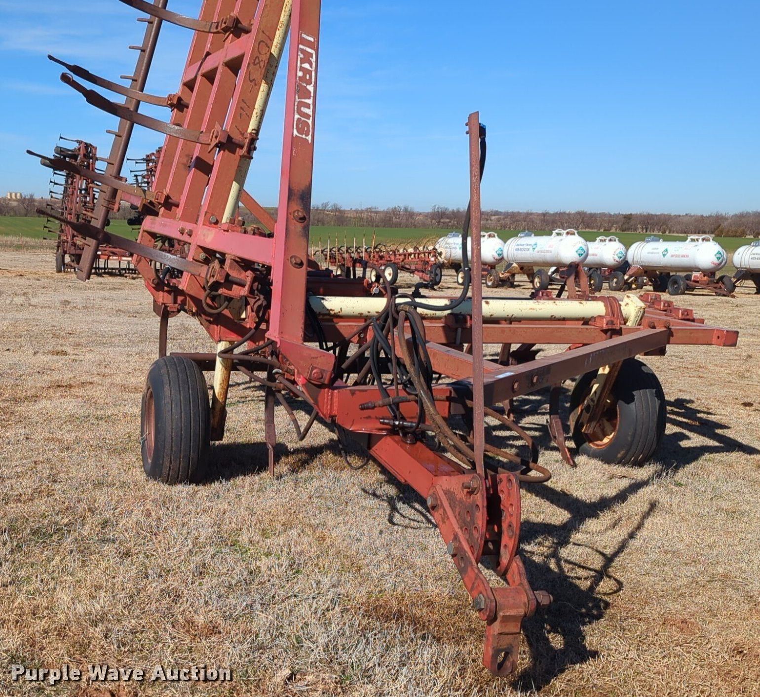 Krause chisel. Serial: 1083-1. Features Shanks: 24, Operation Hydraulic lift, Hydraulic fold, Attachments Spike tooth harrow Harrow bars: 1, NH3 hookups. Tires Tire size: 11L-15. Jackson Farms. 2791 North 2940 Road. Hennessey, OK 73742