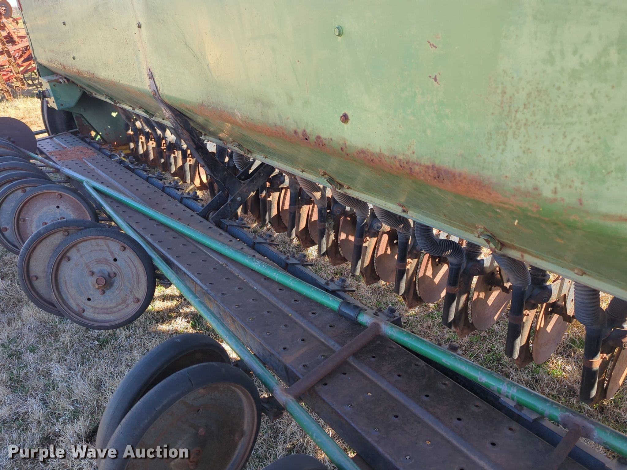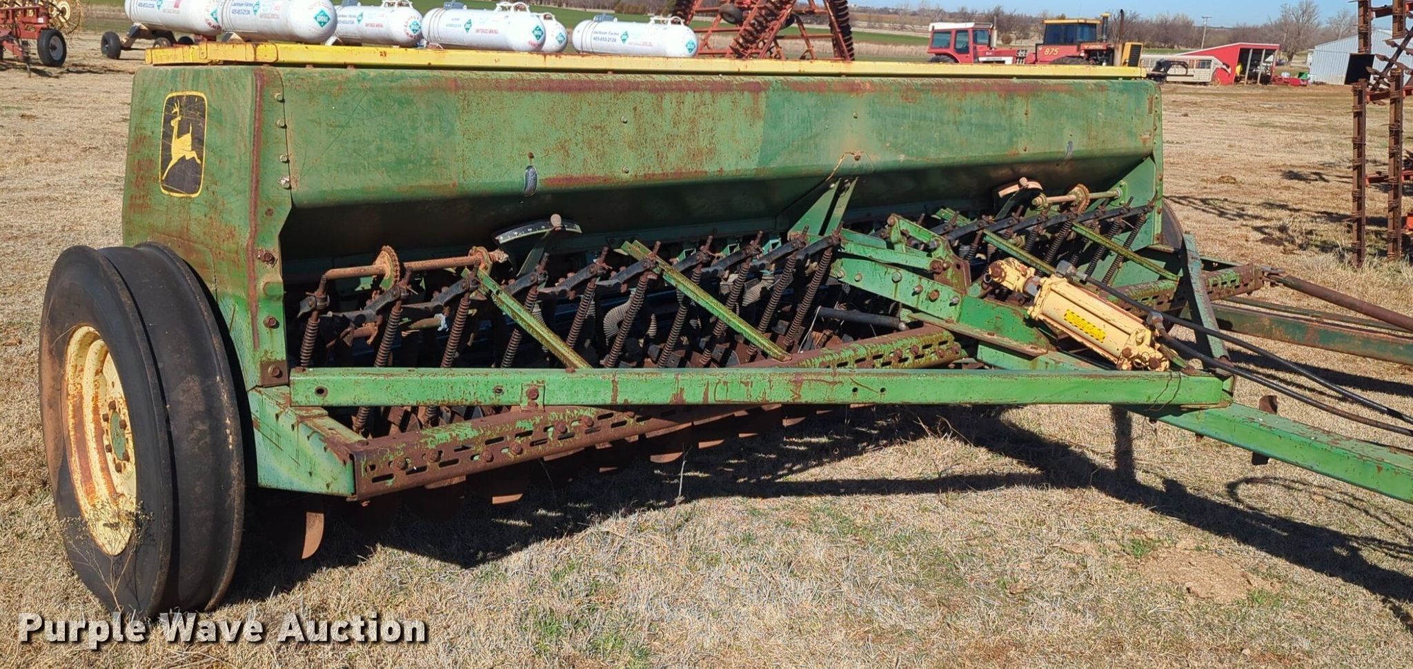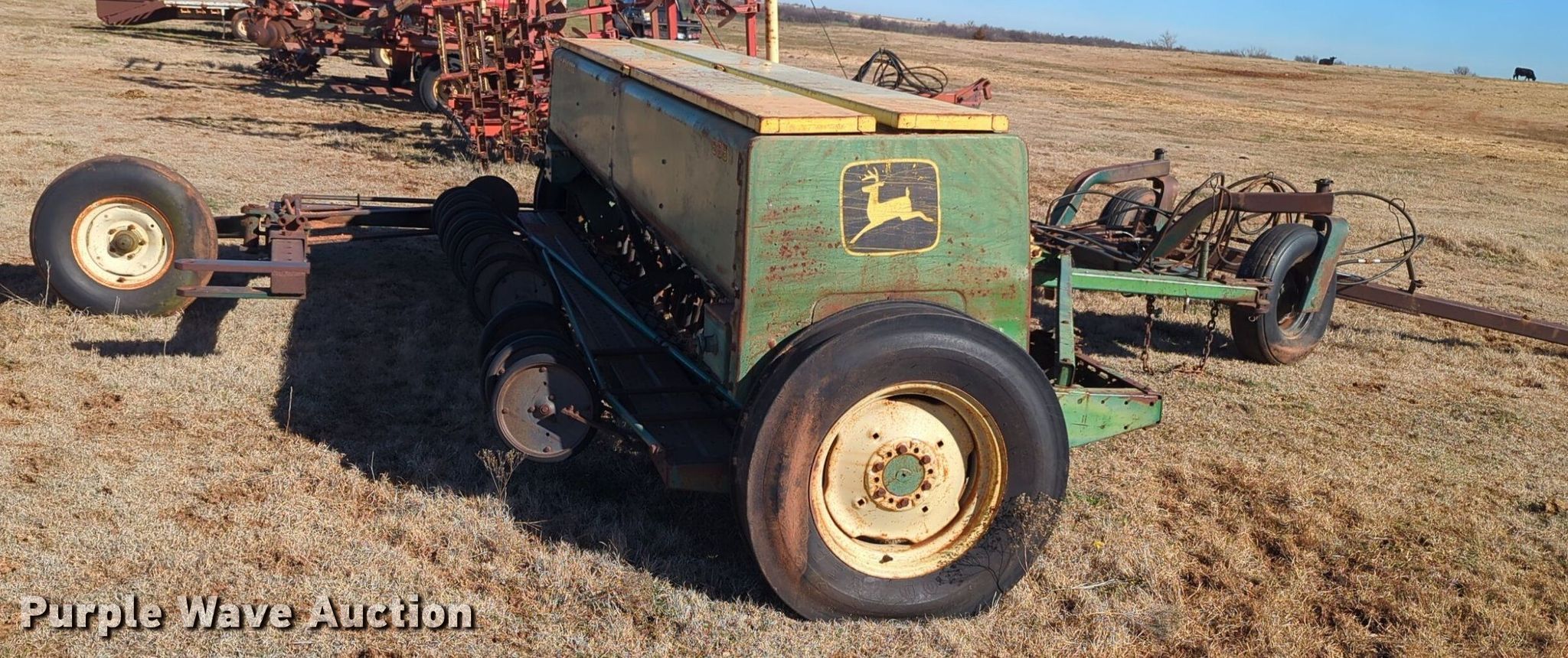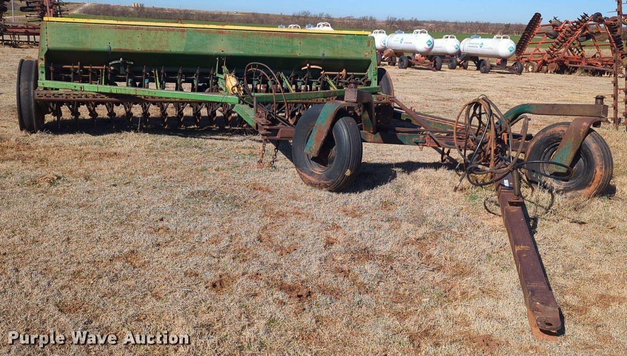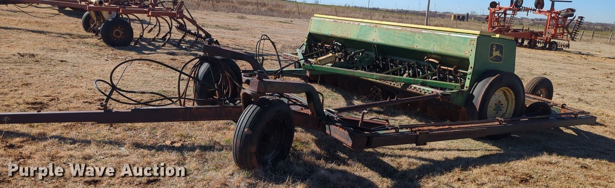Purple Wave is selling a used Grain Drill or Seeder in Oklahoma. This item is a John Deere 8350 grain drill with the following: Width: 10.5', Row units: 20, Row spacing: 8"
