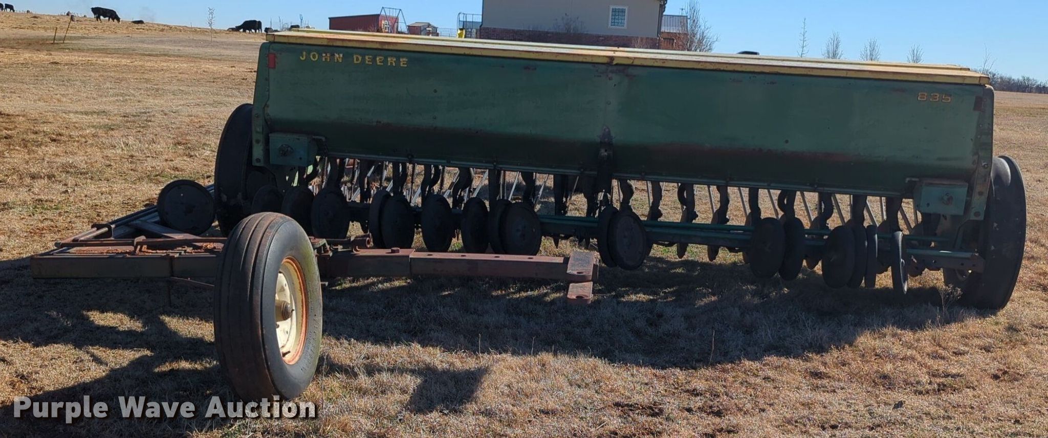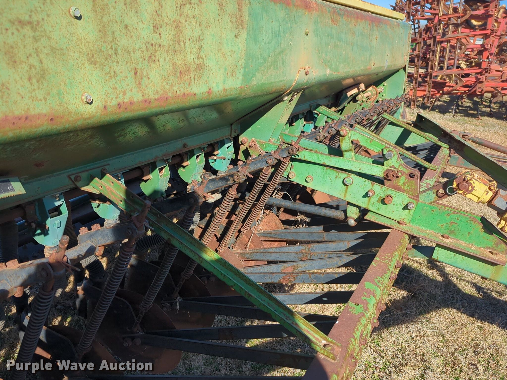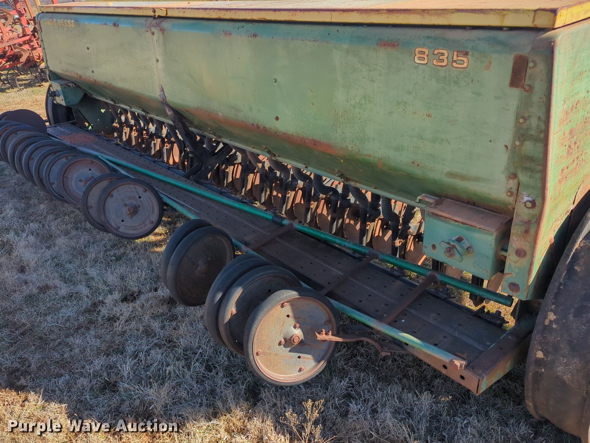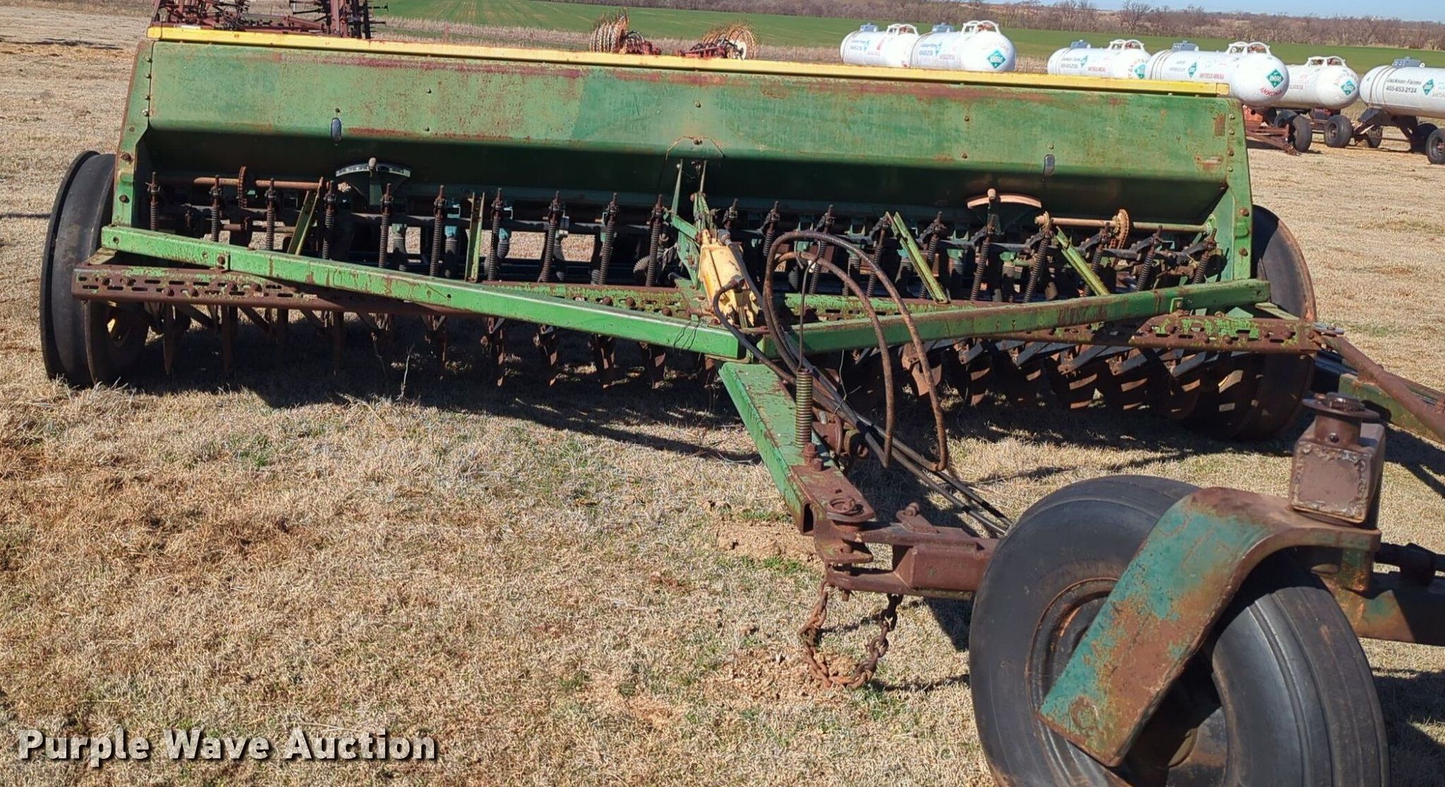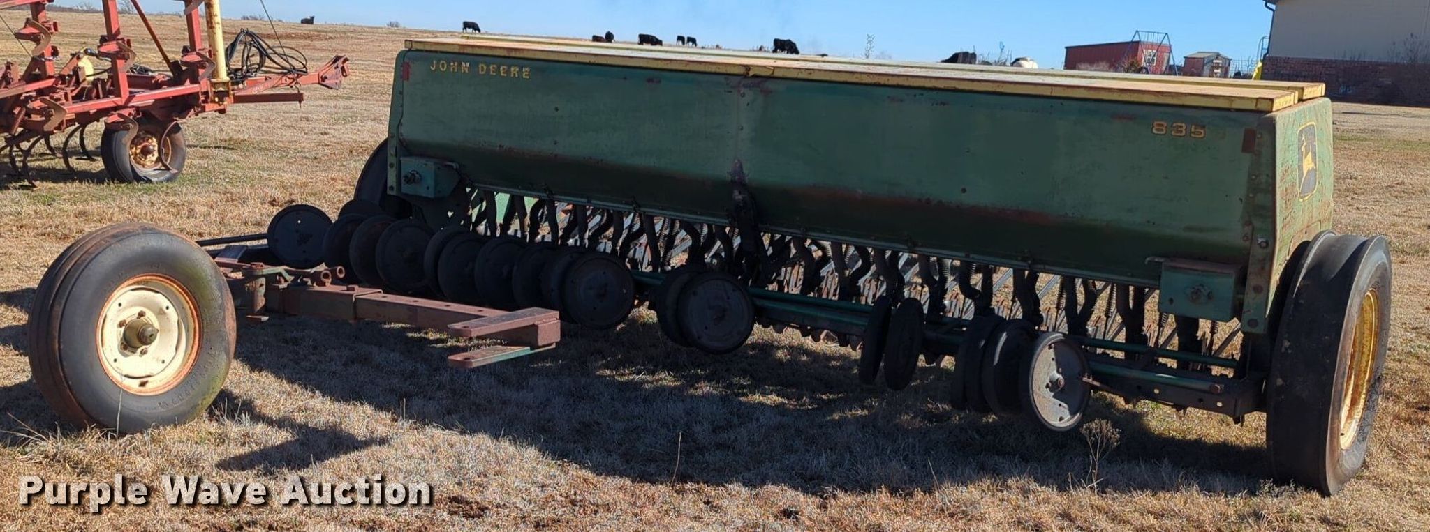 Purple Wave is selling a used Grain Drill or Seeder in Oklahoma. This item is a John Deere 8350 grain drill with the following: Width: 10.5', Row units: 20, Row spacing: 8"