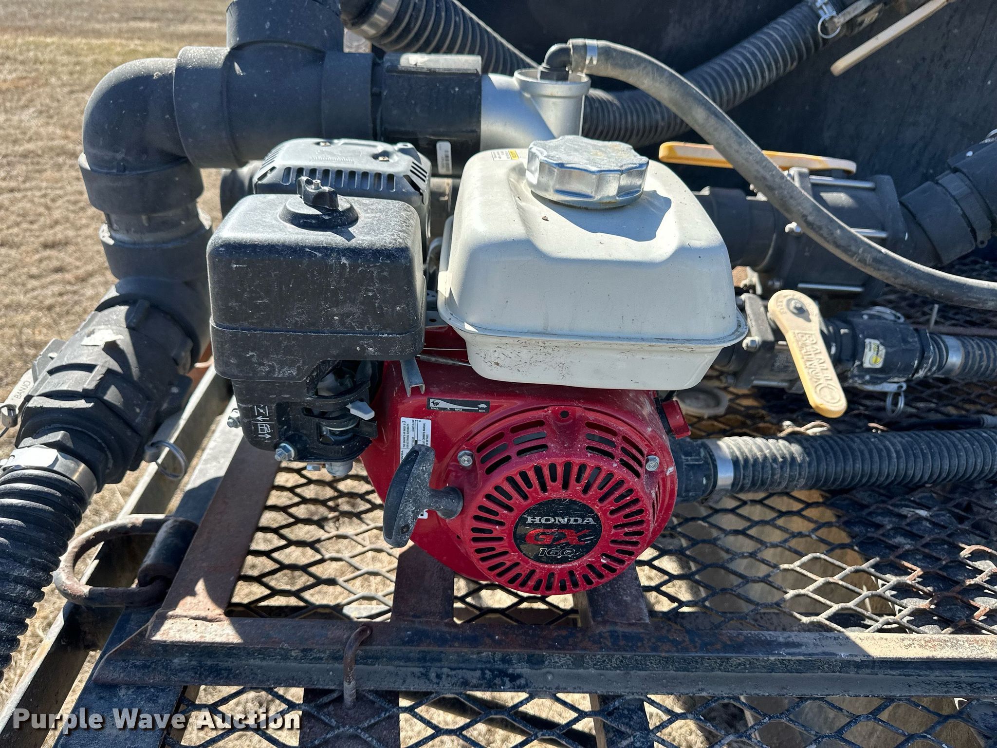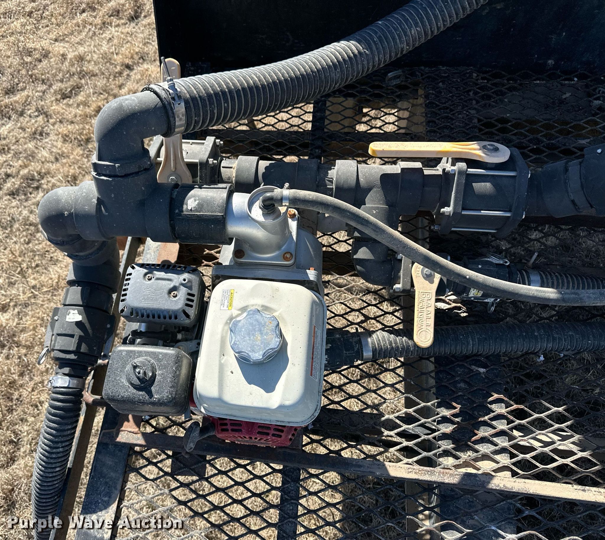 2007 Behnke sprayer trailer. VIN: 4L5AB50297F014056. Dimensions Overall: 48' L x 140" W, Deck: 28' L x 140" W, Ramps: Manual Length: 3' 6". Features Deck type: Steel, Poly tank Capacity: 3,200 gallons, Pump Honda single cylinder gas engine. Chassis Landing gear: Dual, Suspension: Spring, Brakes: Air, Axles: Spread. Tires Steel wheels, Size: 255/70R22.5. Kansas title. Riemann Farms. 135 Gage Rd. Dighton , KS 67839