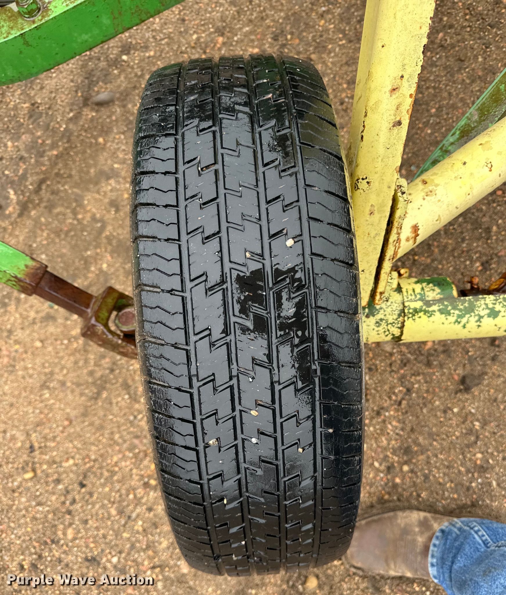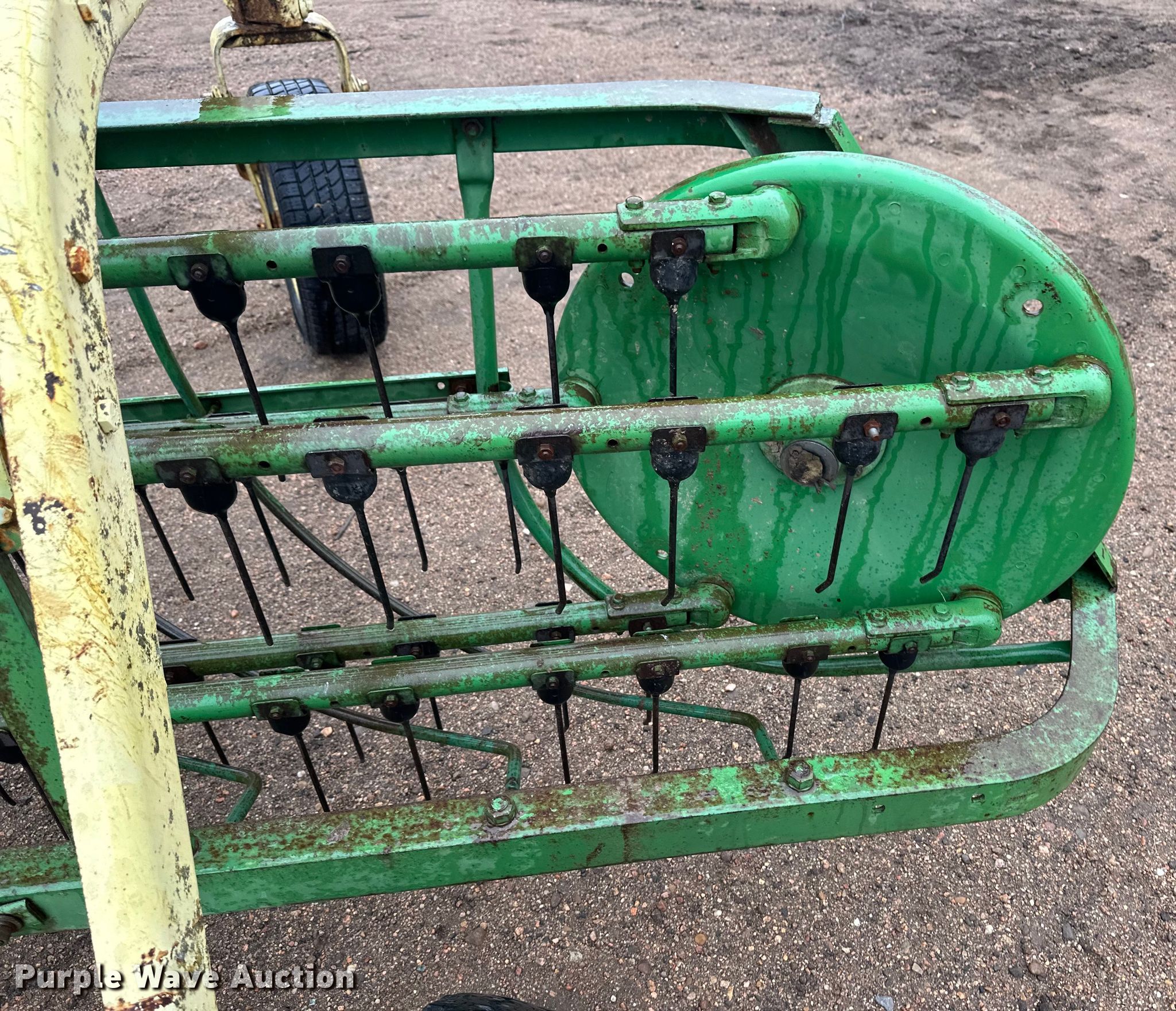 John Deere 640 hay rake. Serial: 10583. Features Width: 8', Ground driven. Tires Size: 185/70R14. 1137 90th Ave. Kinsley, KS 67547