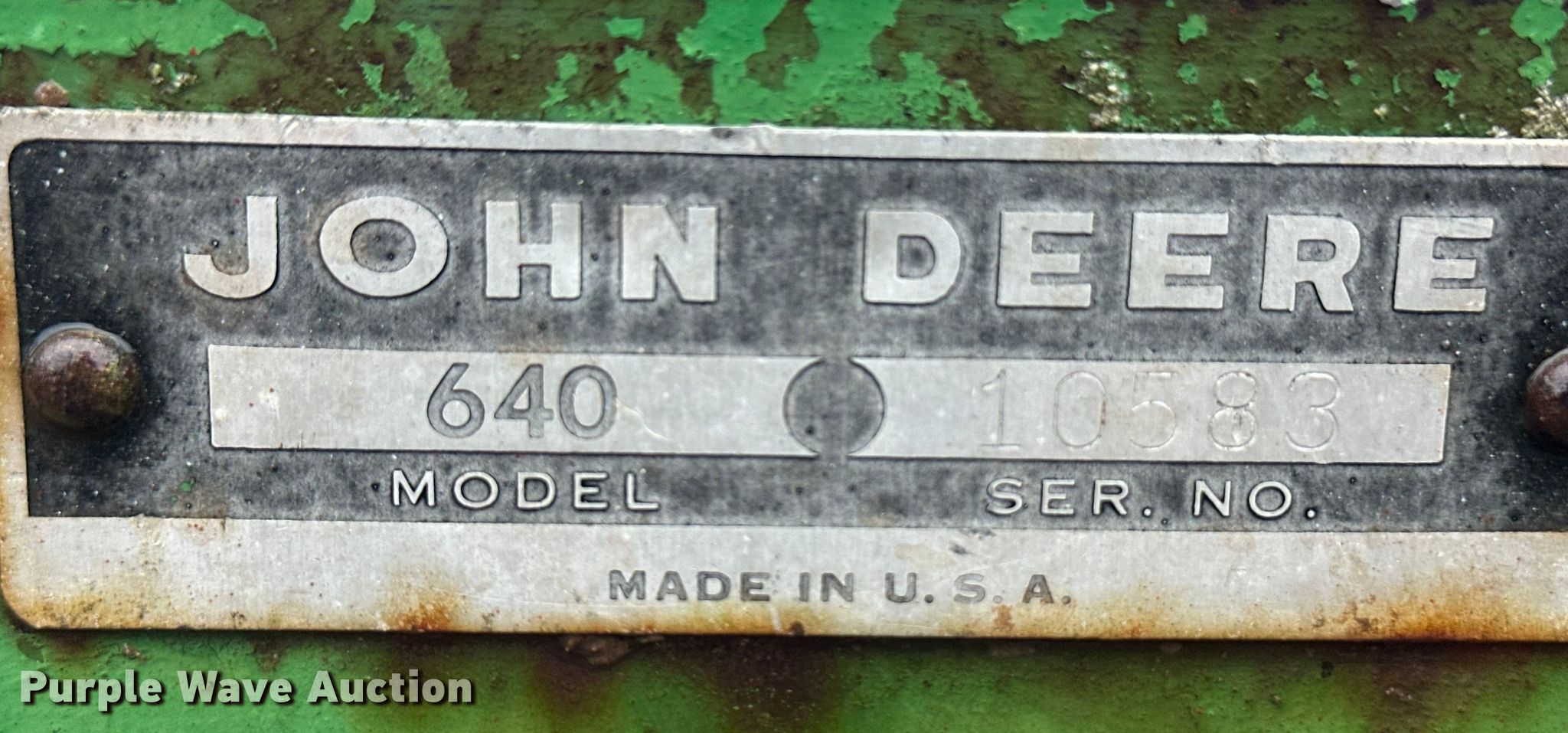 Purple Wave is selling a used Hay Rake in Kansas. This item is a John Deere 640 hay rake with the following: Serial: 10583