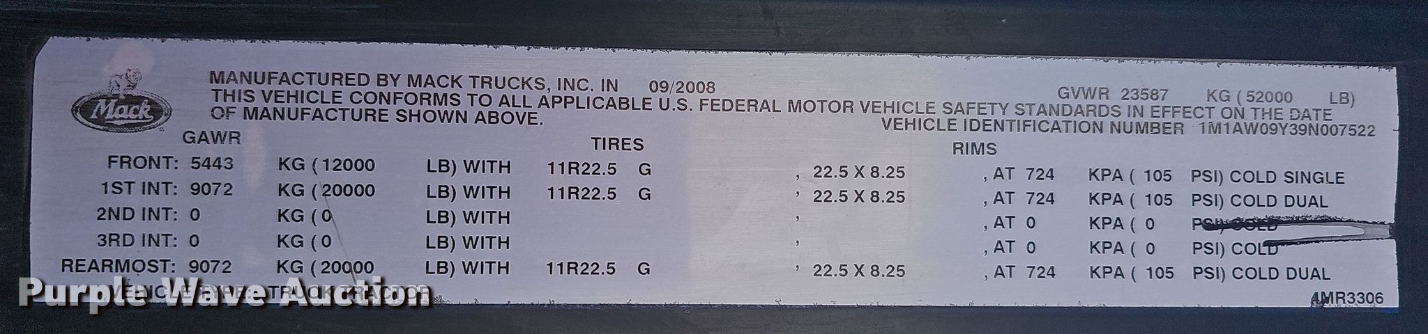 - VIN: 1M1AW09Y39N007522
