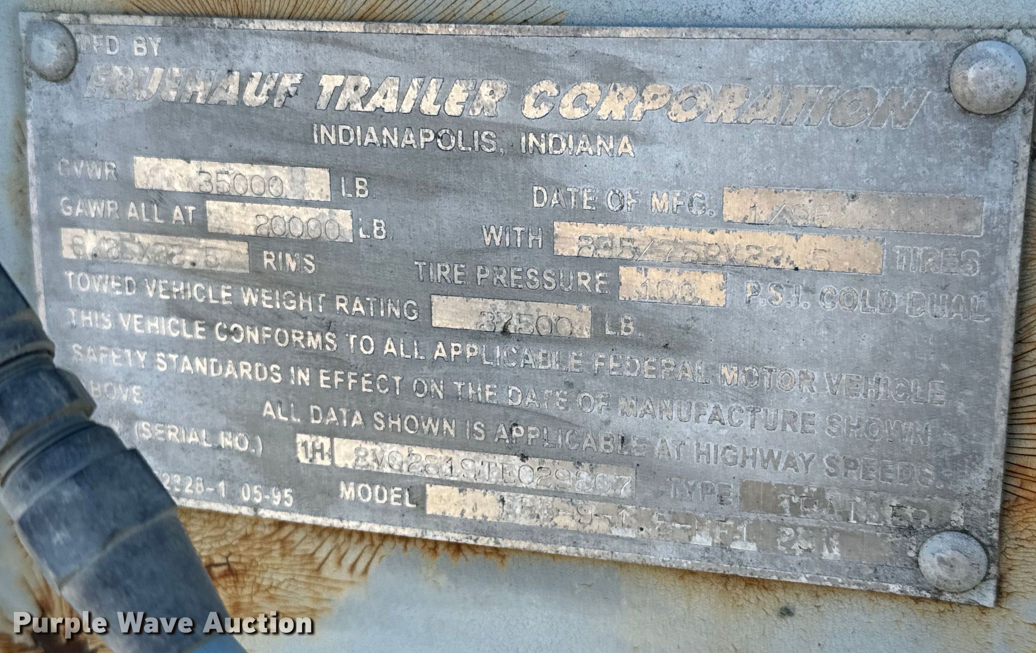 Purple Wave is selling a used Dry Van Trailer in Kansas. This item is a 1996 Fruehauf FBB-9-1.5-NF1 28W dry van trailer with the following: VIN: 1H2V02819TE029607