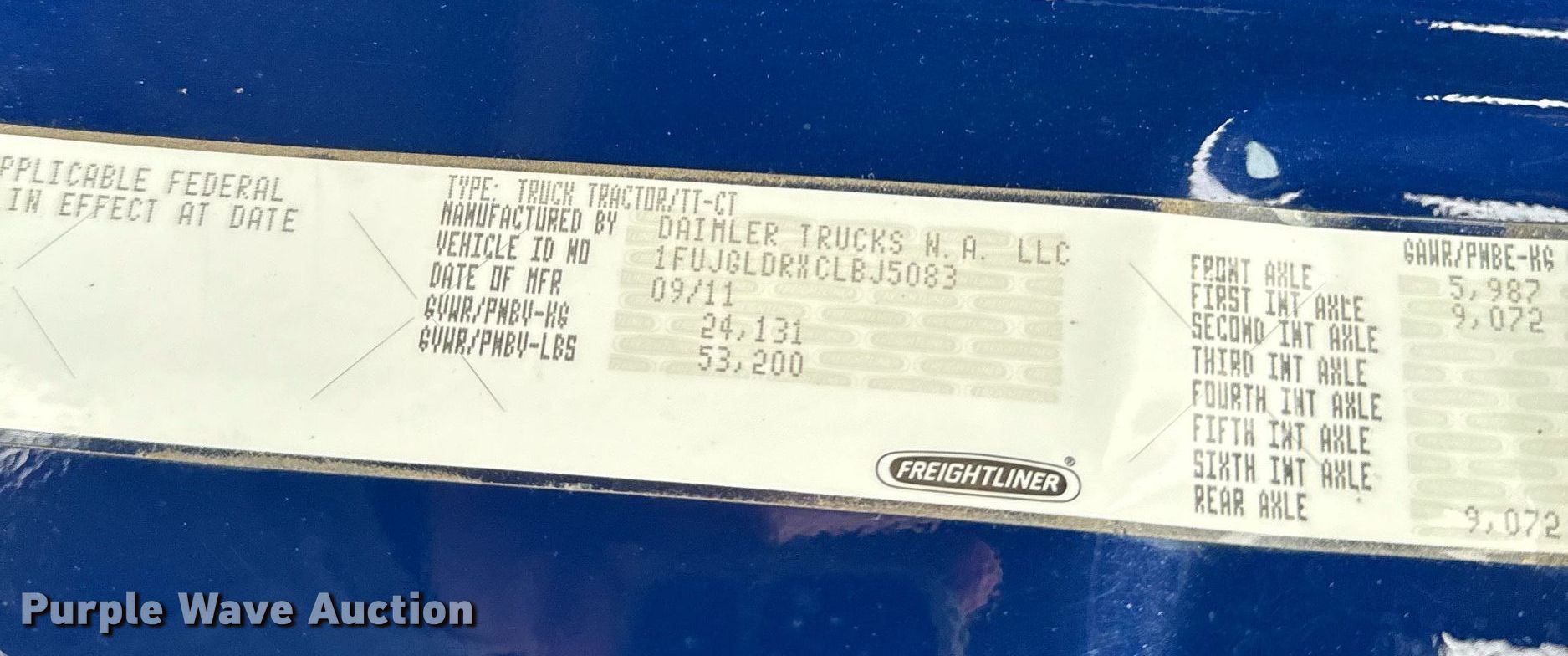 Purple Wave is selling a used Truck Tractor in Vermont. This item is a 2012 Freightliner Cascadia semi truck with the following: Miles: 863,517 on odometer, VIN: 1FUJGLDRXCLBJ5083