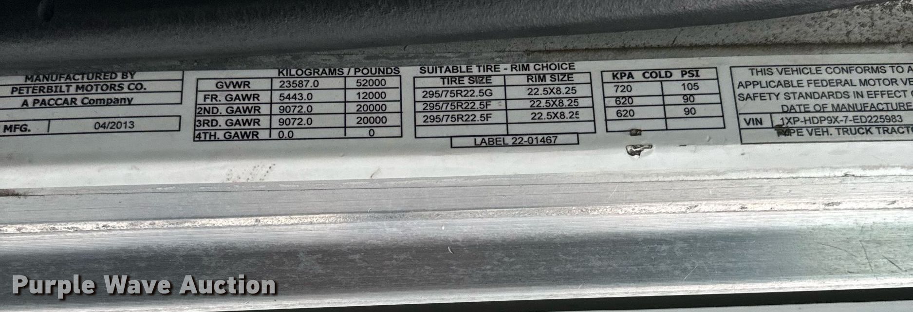 - VIN: 1XPHDP9X7ED225983