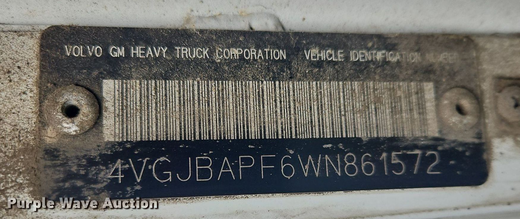 Purple Wave is selling a used Truck Tractor in Ohio. This item is a 1998 Volvo WG semi truck with the following: Miles: 104,858 on odometer, VIN: 4VGJBAPF6WN861572