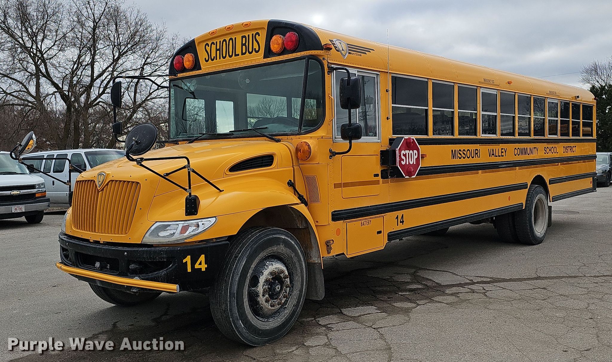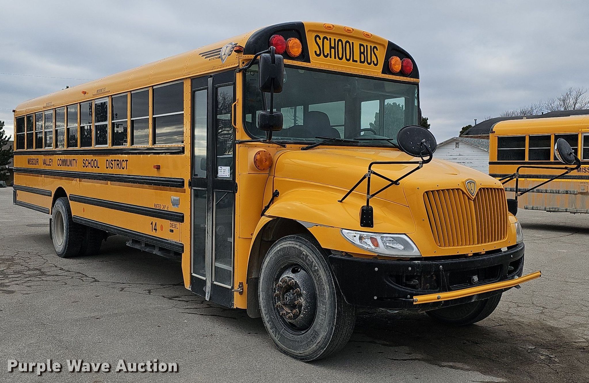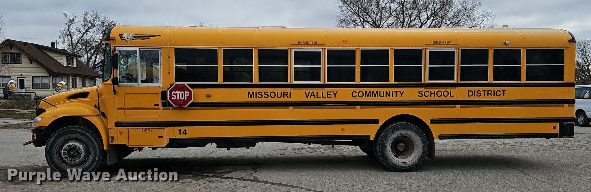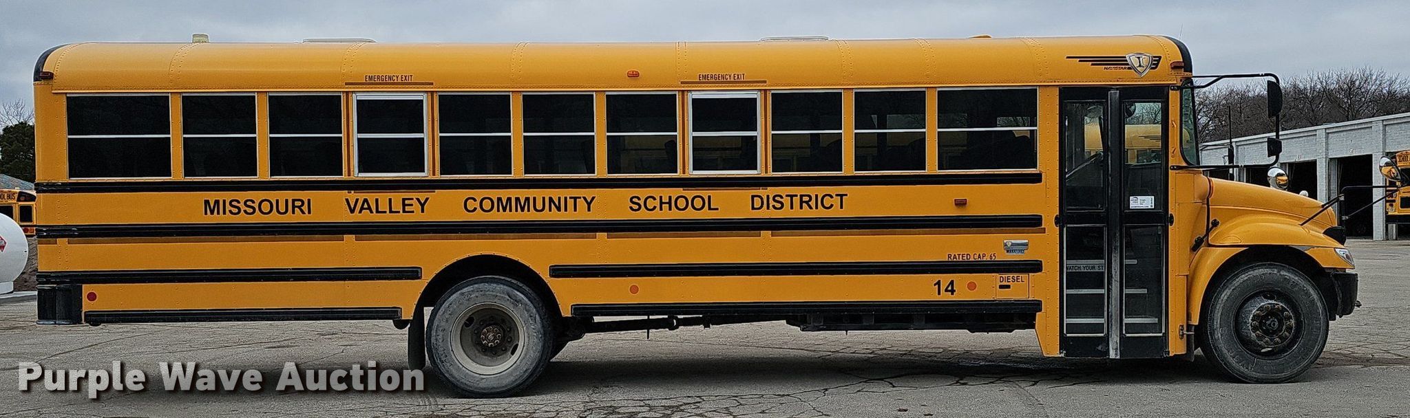 2014 IC Corporation PB10500 school bus. Miles: 96,486 on odometer, Hours: 5,391 on meter, VIN: 4DRBUSKN7EB364179, Unit #: 14. Engine International Maxxforce 7, Displacement: 6.4L, Cylinders: 8, Fuel type: Diesel. Transmission Automatic. Chassis Axles: Single, Suspension: Air, Brakes: Air, GVWR: 29,800 lbs, Wheelbase: 255". Interior Heat, Heated mirrors, Cruise control, Auxiliary controls, Passengers: 65. Tires Size: 11R22.5. Notes Safety equipment will be removed if sold to a non-government agency. Iowa title. Seller is a government entity who will be assigning and distributing the title. Please contact the seller for distribution questions. Missouri Valley CSD. 418 North 7th Street. Missouri Valley, IA 51555