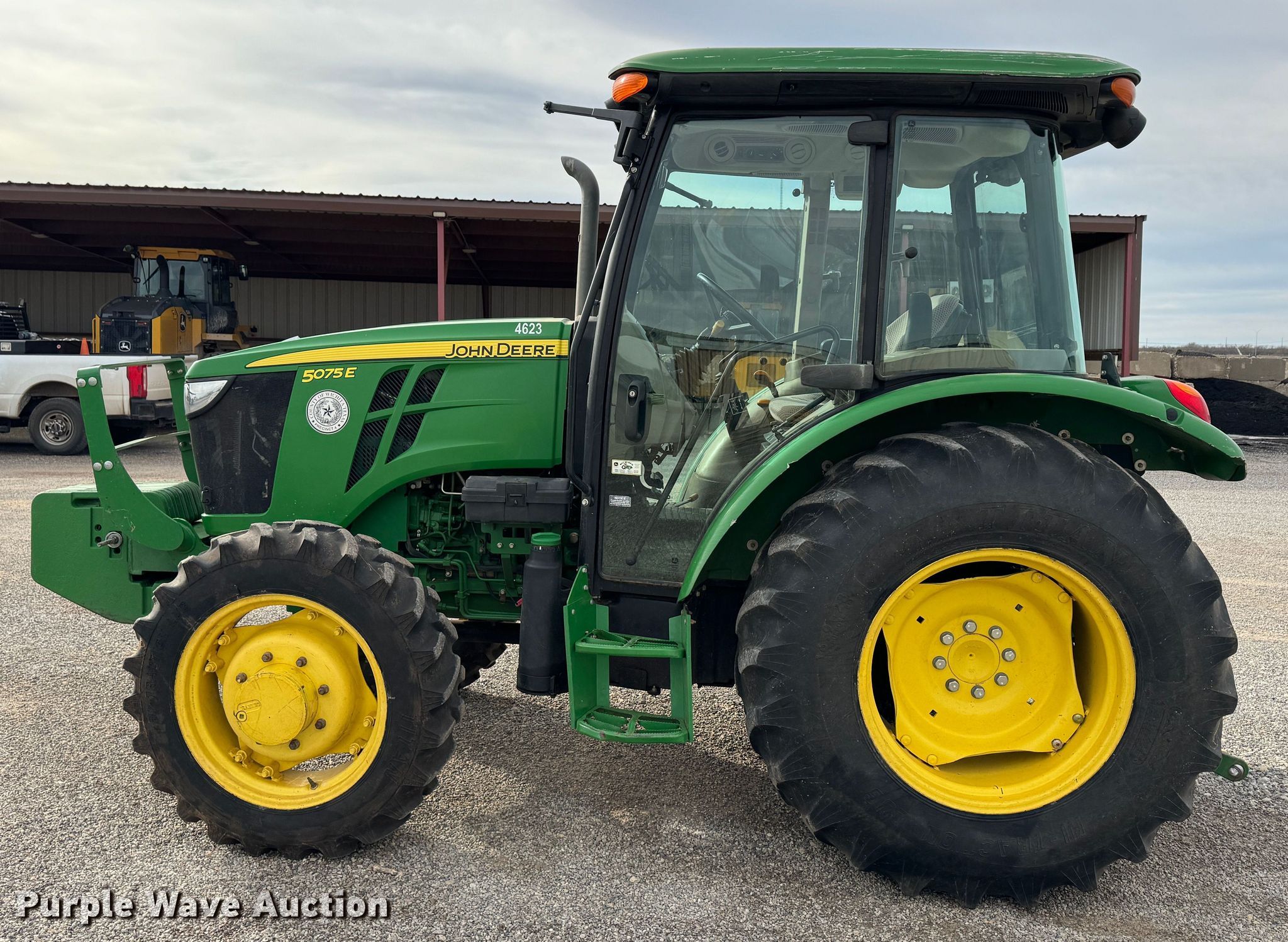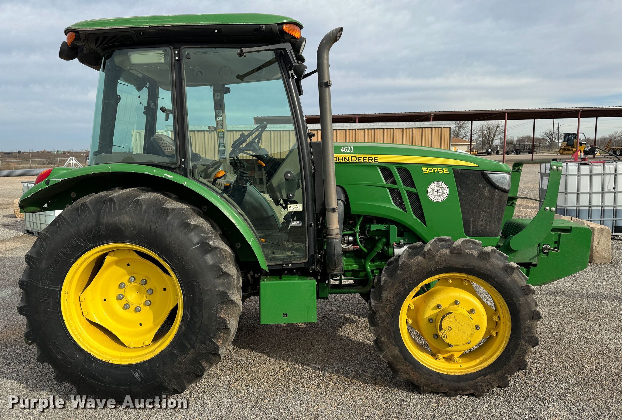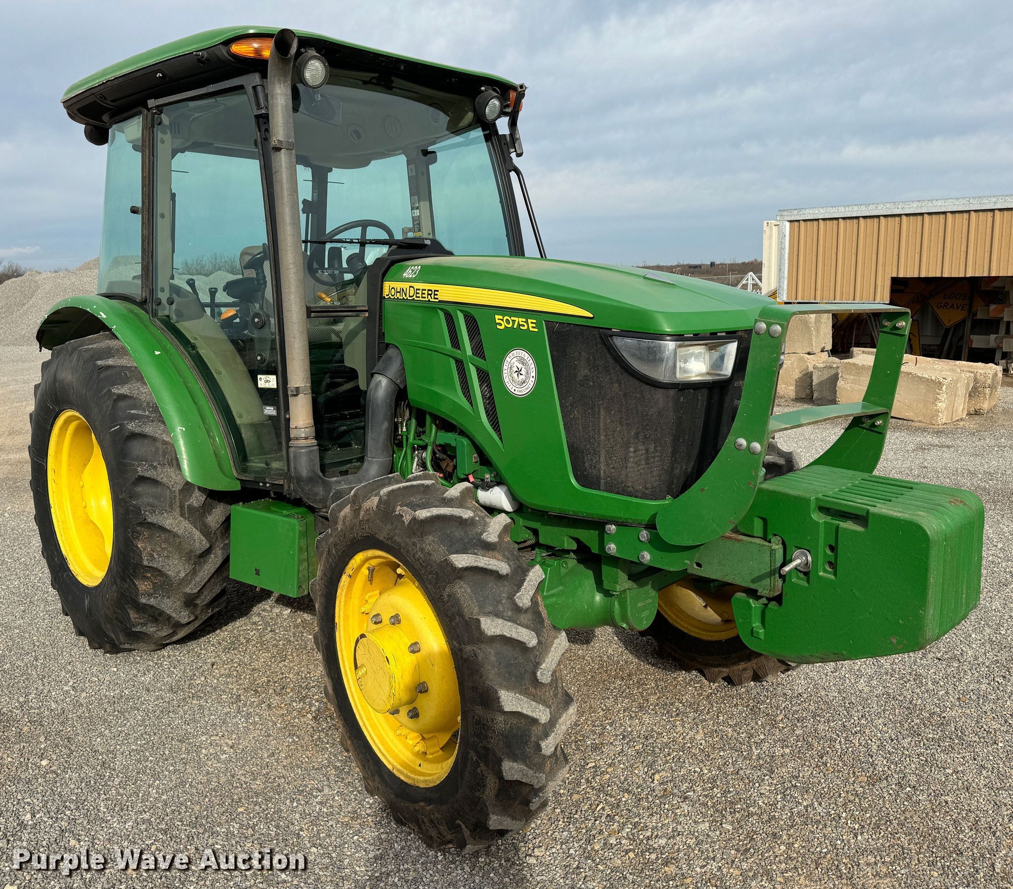 Purple Wave is selling a used Tractor in Texas. This item is a 2015 John Deere 5075E MFWD tractor with the following: Hours: 1,452 on meter, Serial: 1PY5075EVFY145564, Unit #: 4623