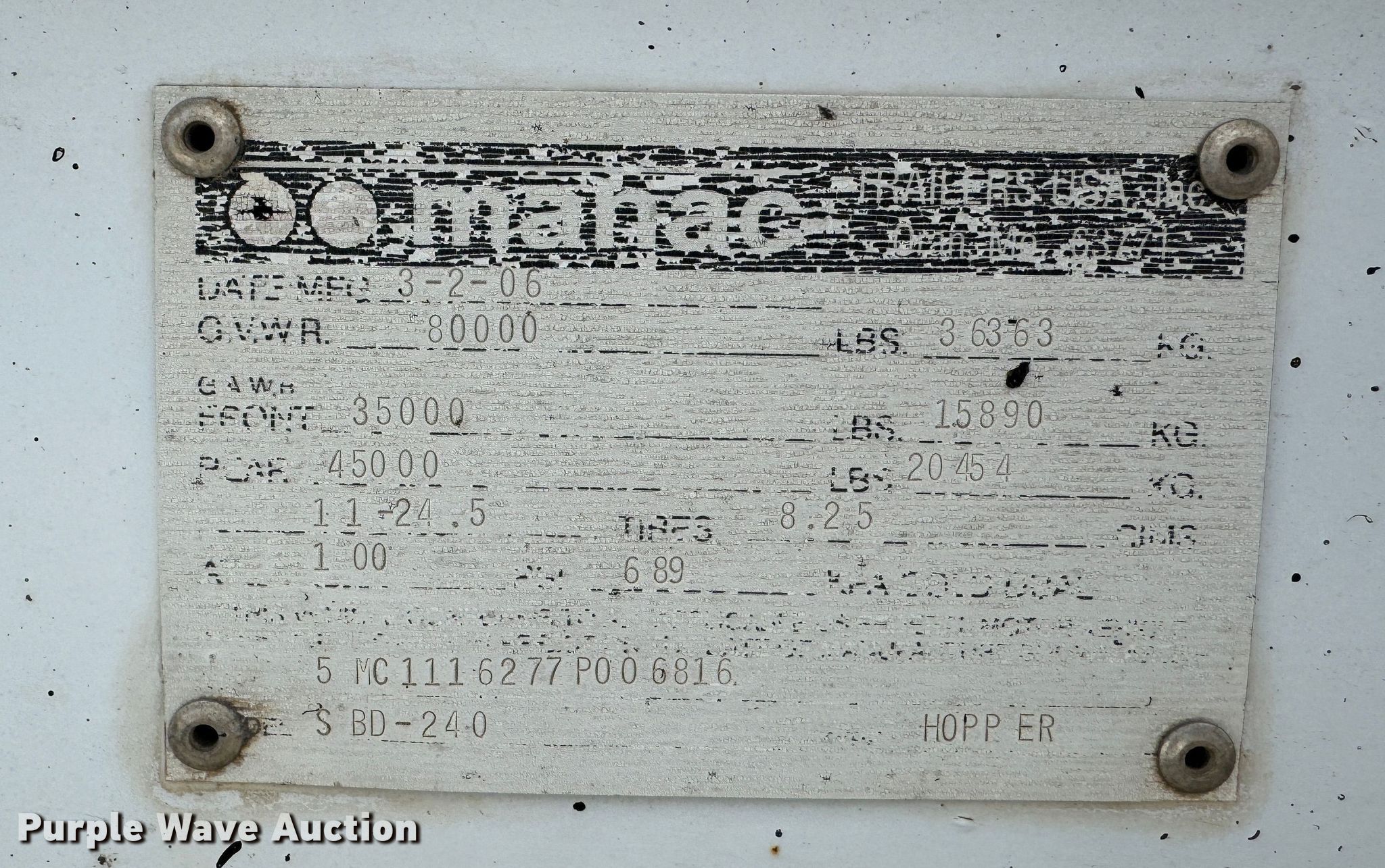 Purple Wave is selling a used Bottom Dump Trailer in Texas. This item is a 2007 Manac SBD-240 bottom dump trailer with the following: VIN: 5MC1116277P006816
